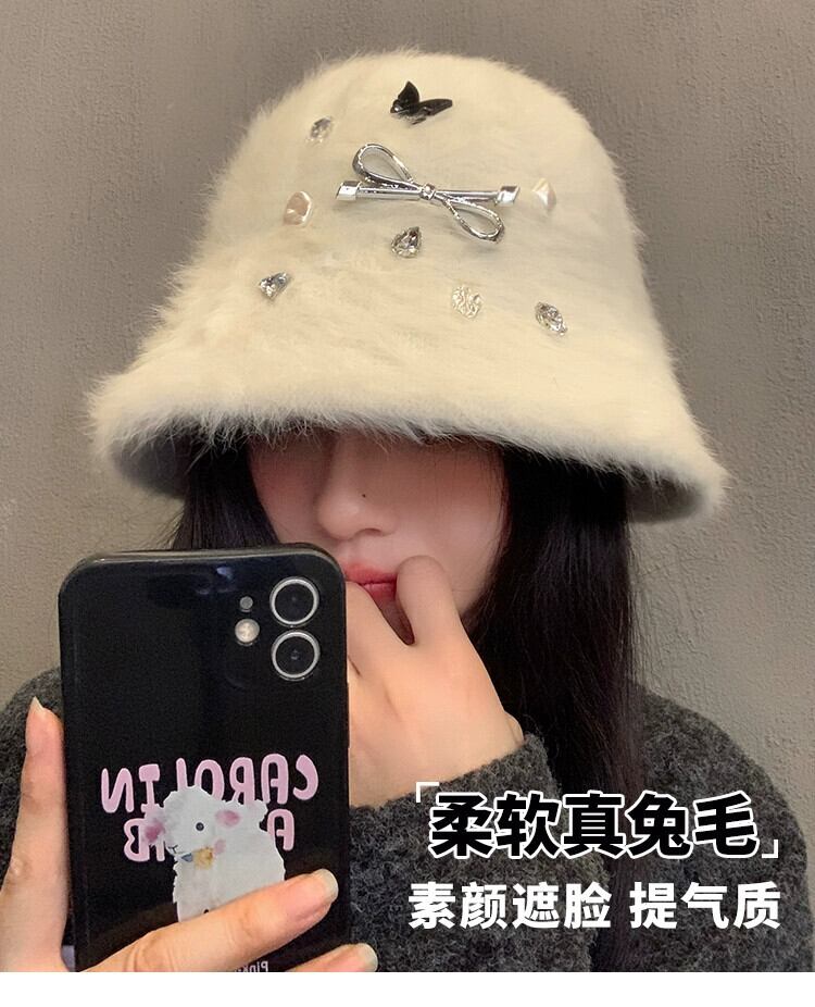スタイル多目的毛皮のようなウサギの毛皮の流域帽子女性秋冬 2023 新しい暖かく耐寒性小さな漁師帽子顔 オータム 秋物 ウィンター 冬物 15dd80945273811