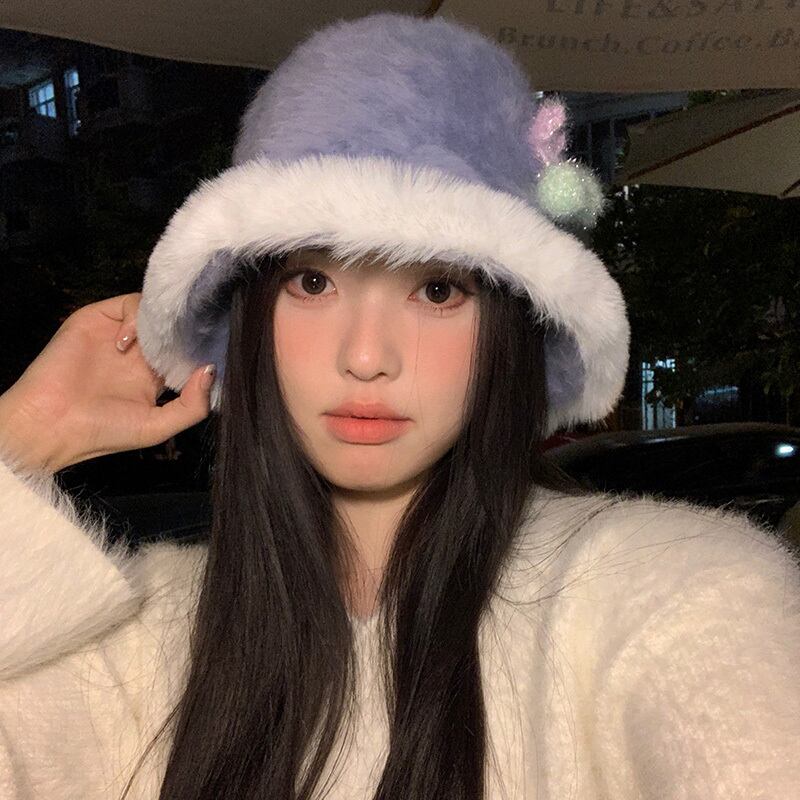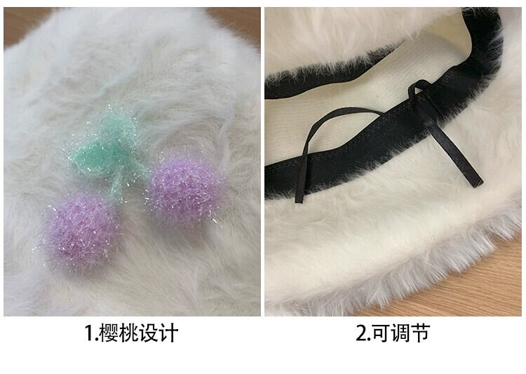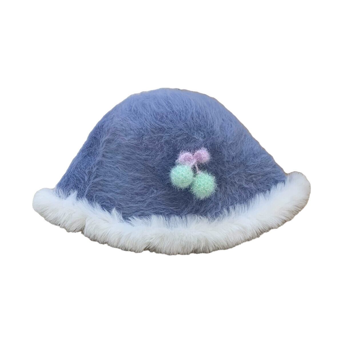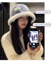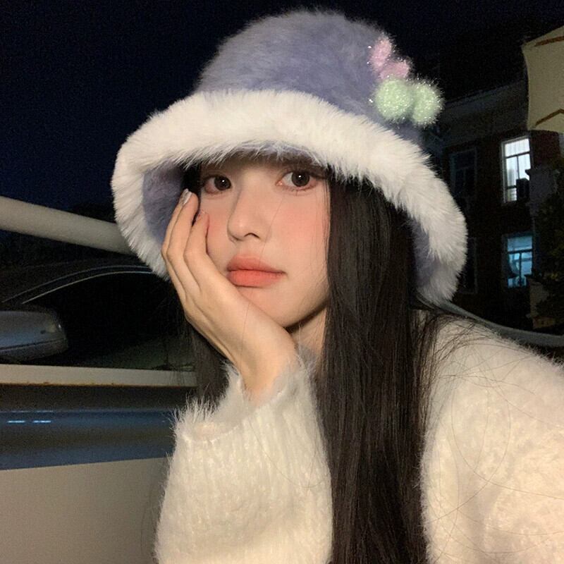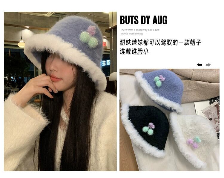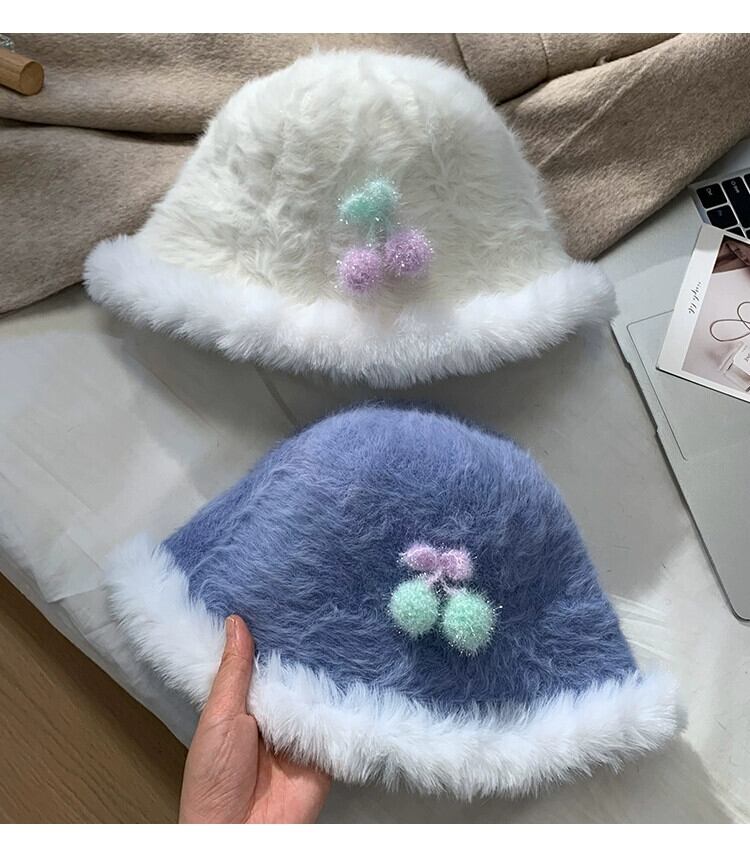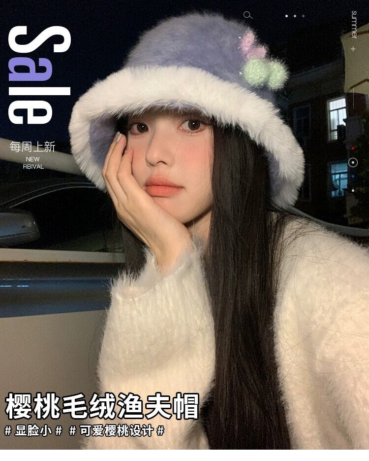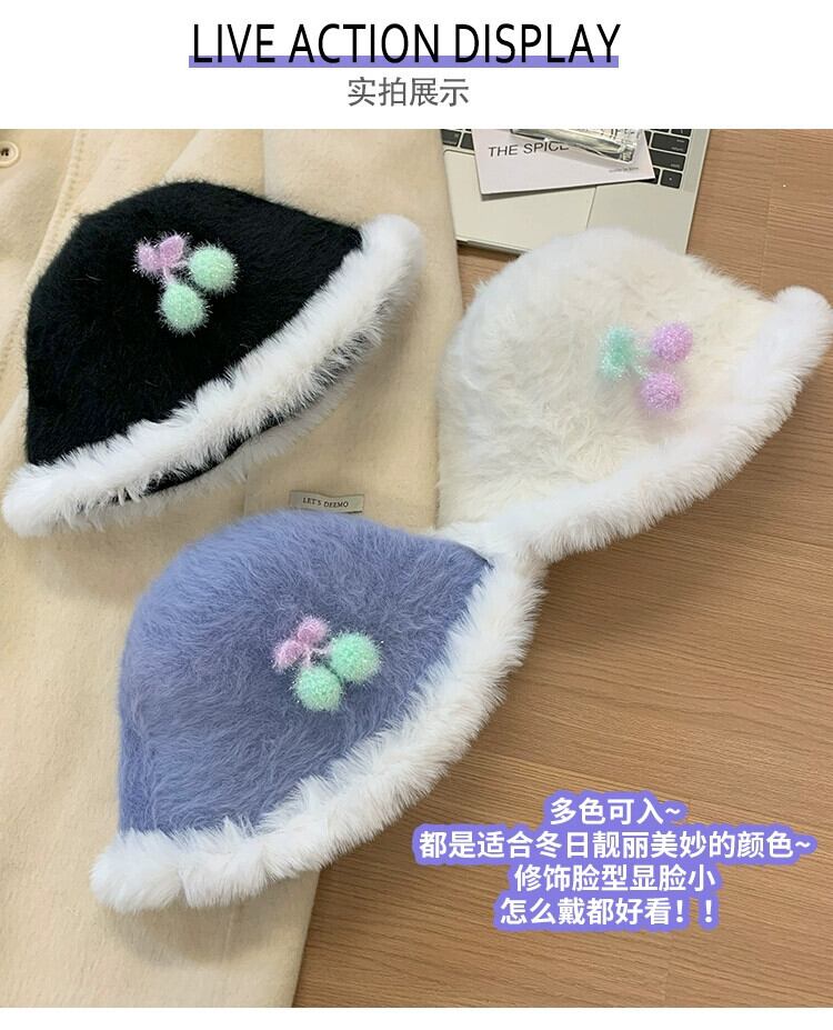 スイートチェリーファーエッジフィッシャーマンハット女性の秋と冬のスタイル暖かい豪華なバケットハット多用途の顔を示す小さな盆地帽子 大人ガーリー スウィート キュート カジュアル オータム 秋物 ウィンター 冬物 15dd53880131758