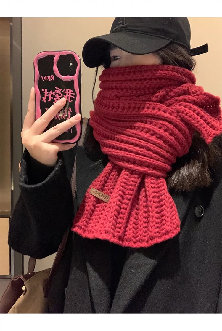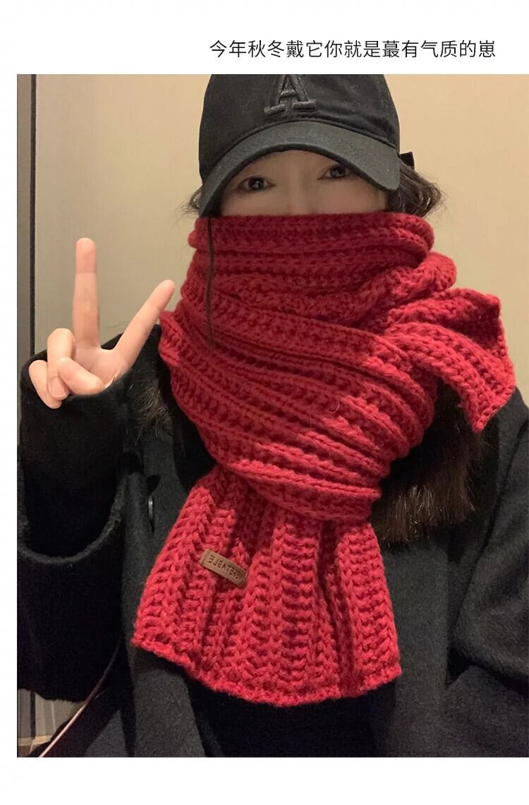 バージョン多目的赤ニットウールスカーフ女性冬の新しい暖かい肥厚ソリッドカラーのカップル学生スカーフトレンディな レッド ウィンター 冬物 15dd87052748714