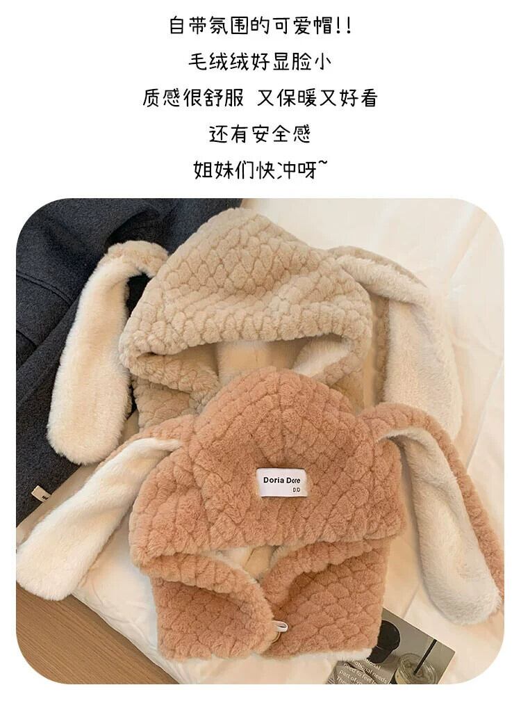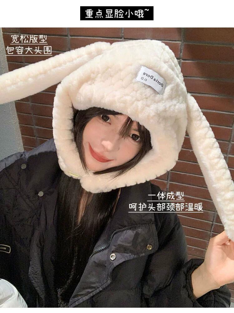 かわいいぬいぐるみ長い耳ウサギぬいぐるみ帽子女性冬肥厚暖かい耳保護漫画プルオーバー帽子雷峰帽子 ロング 大人ガーリー スウィート キュート カジュアル ウィンター 冬物 15dd30180233360