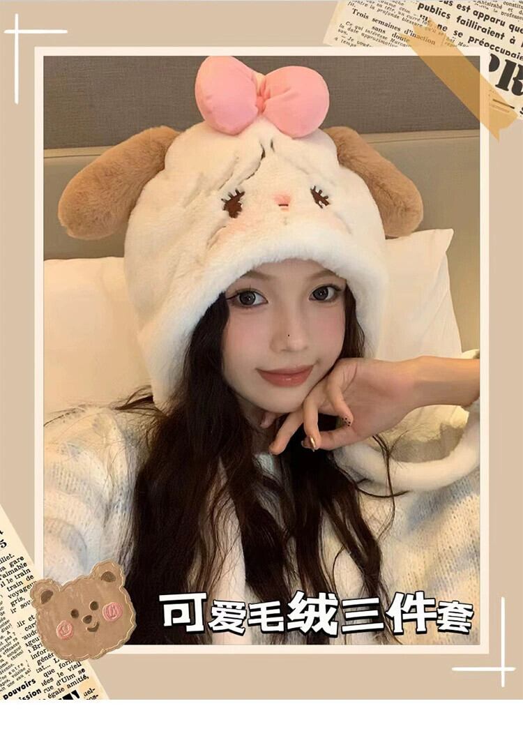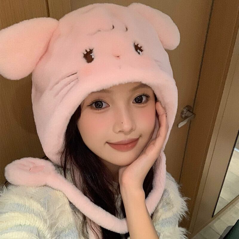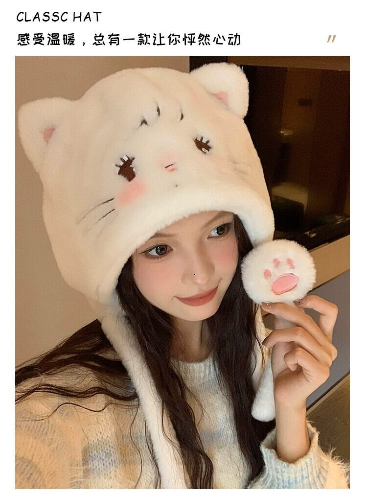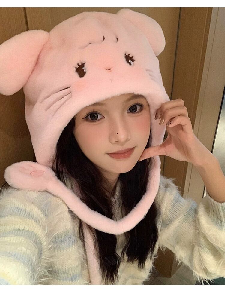 本物の mikko 柔らかくてかわいいぬいぐるみ雷峰帽子女性秋冬、暖かくてかわいいスリーピース スカーフ、ワンピース耳保護帽子 大人ガーリー スウィート キュート カジュアル オータム 秋物 ウィンター 冬物 天然 15dd71374324889