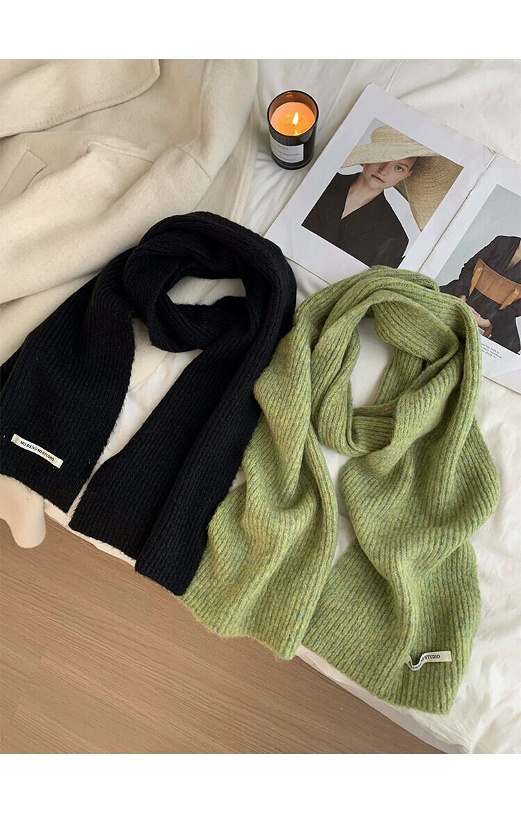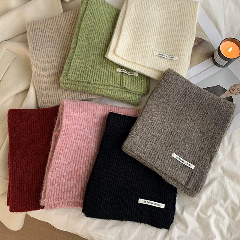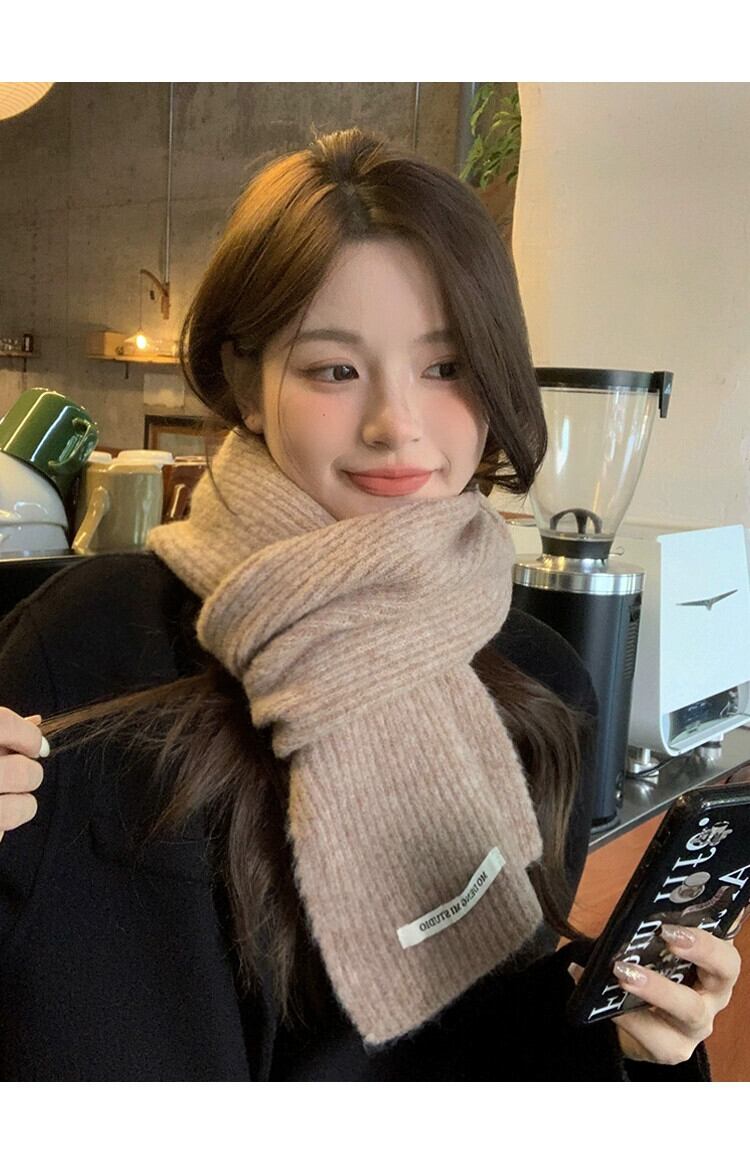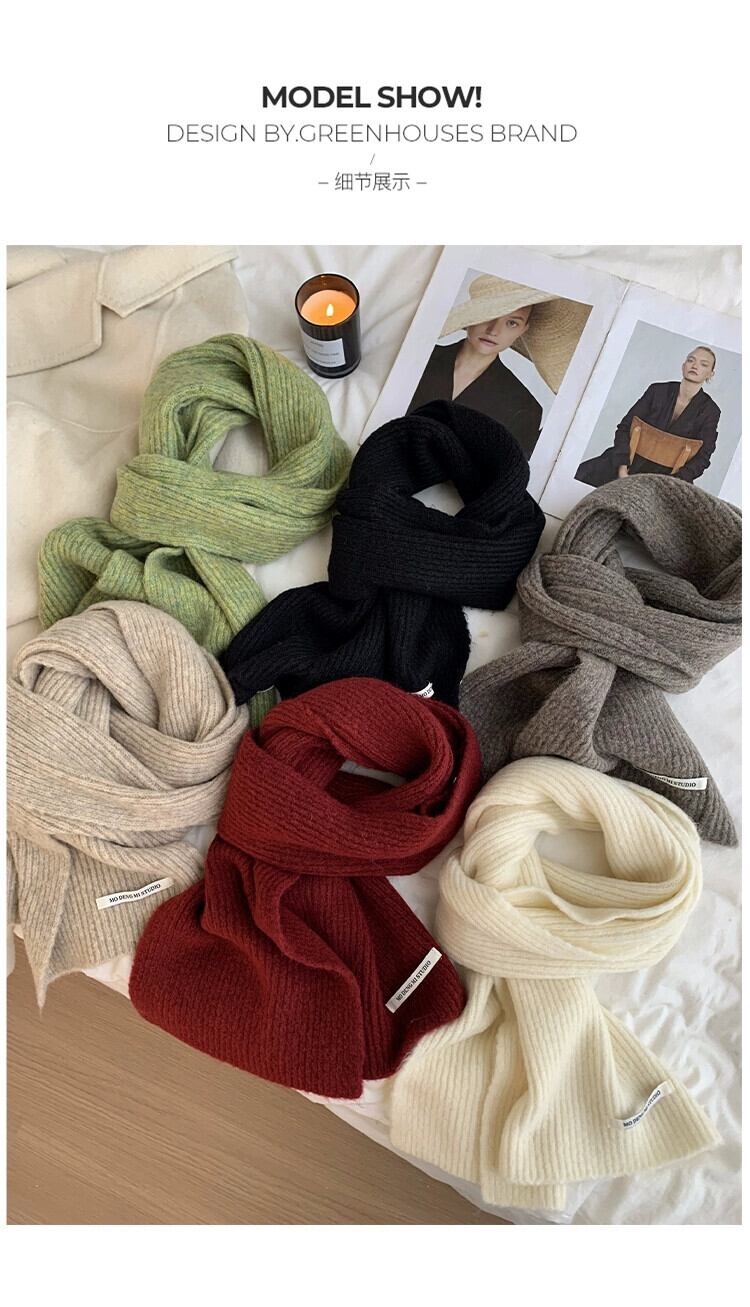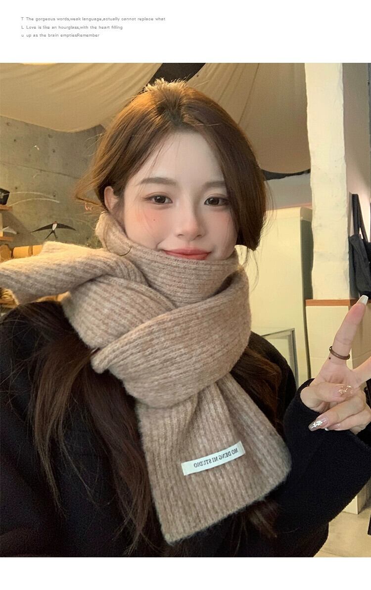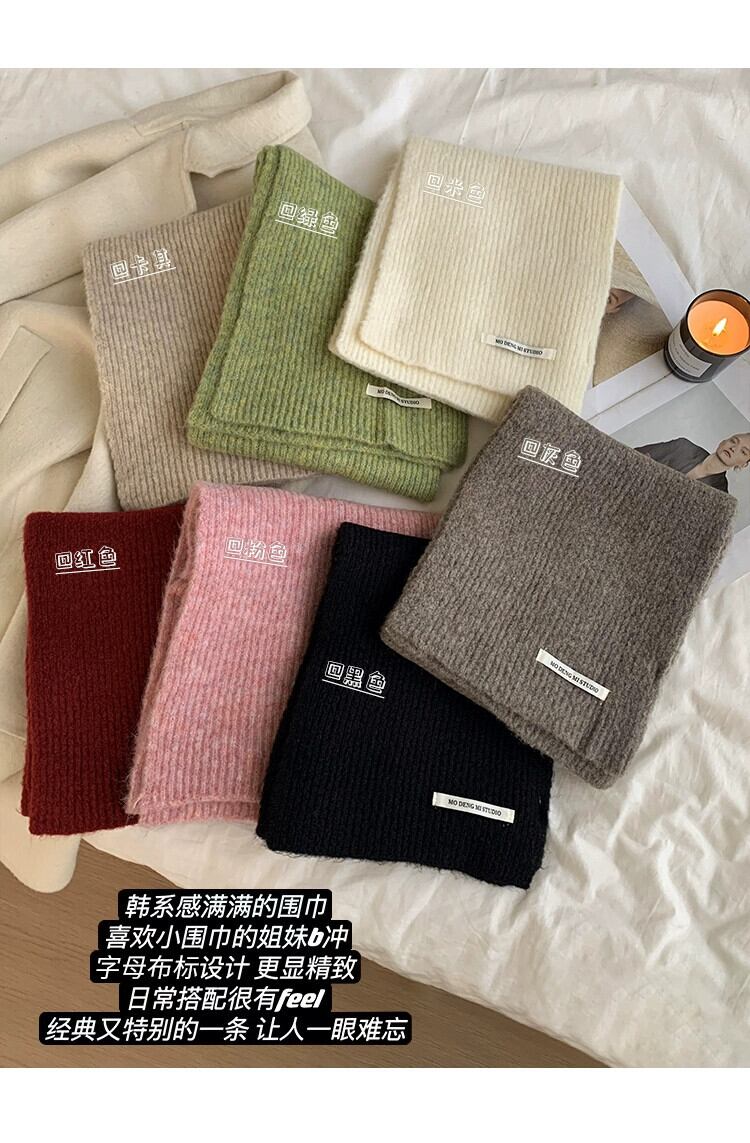 2023 新しい秋冬バージョン無地ニットスカーフ女性のハイエンド暖かいラベル多用途ウール肥厚スカーフ オータム 秋物 ウィンター 冬物 ソリッドカラー 15dd404165207
