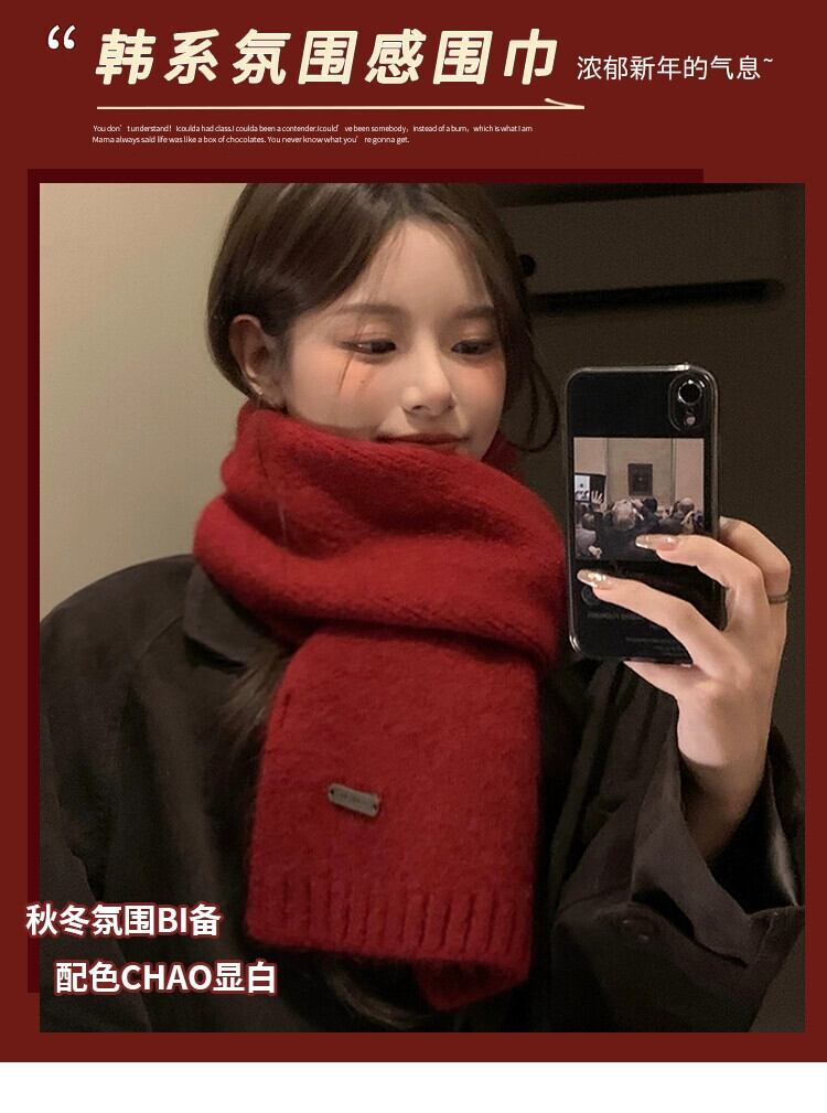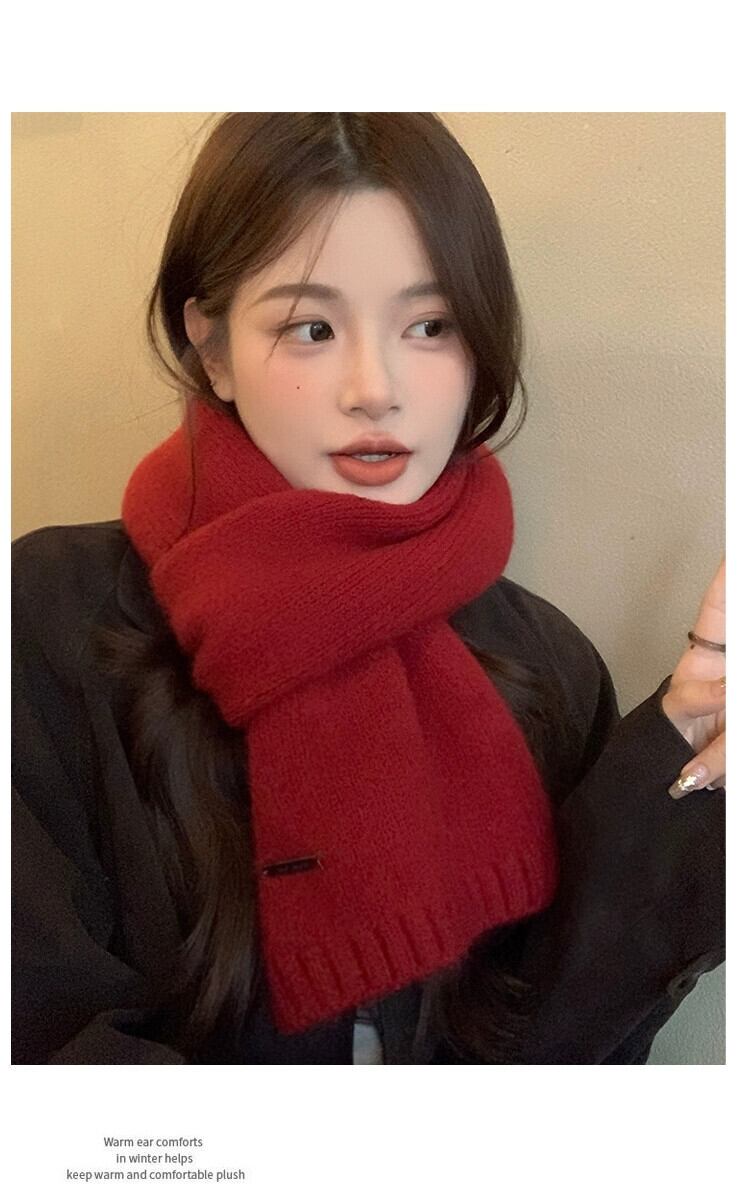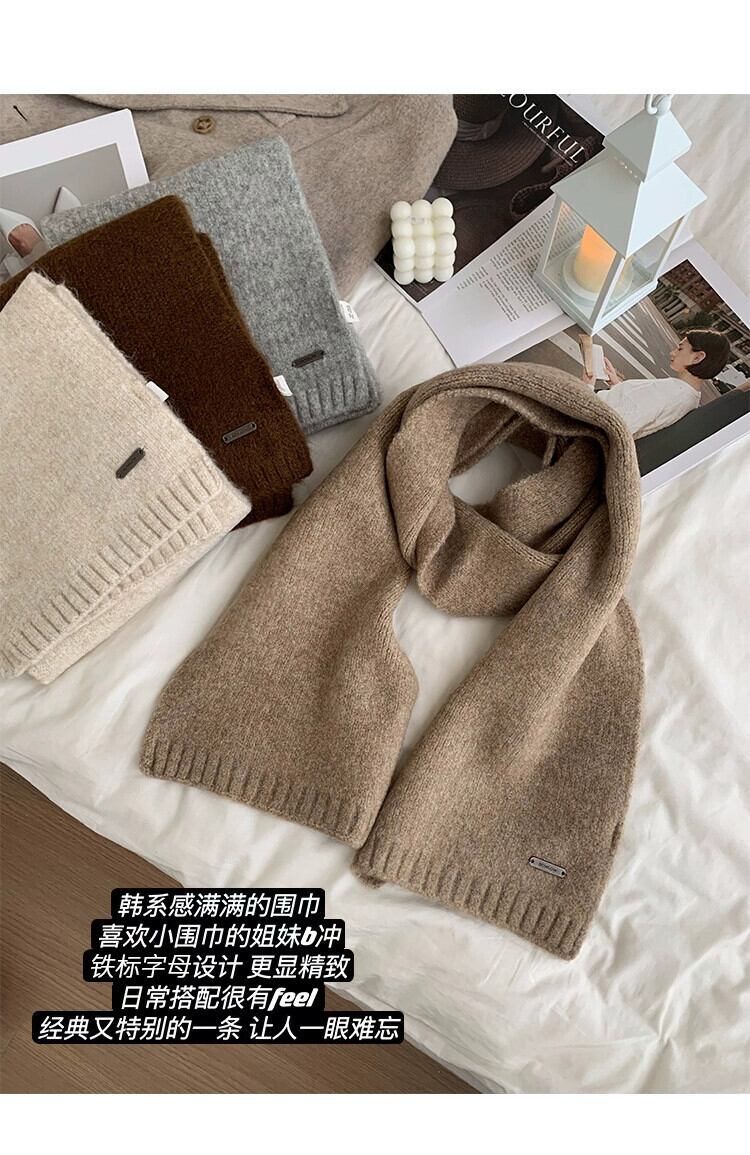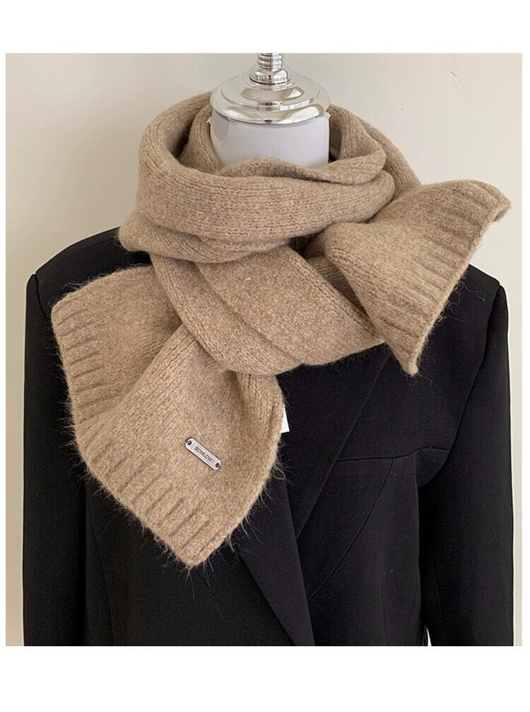 ニットウールスカーフ女性冬 2023 新しいソリッドカラーウール多用途暖かく耐寒性肥厚カップルスカーフ ウィンター 冬物 15dd55986478084