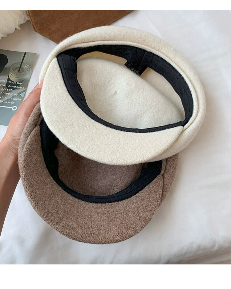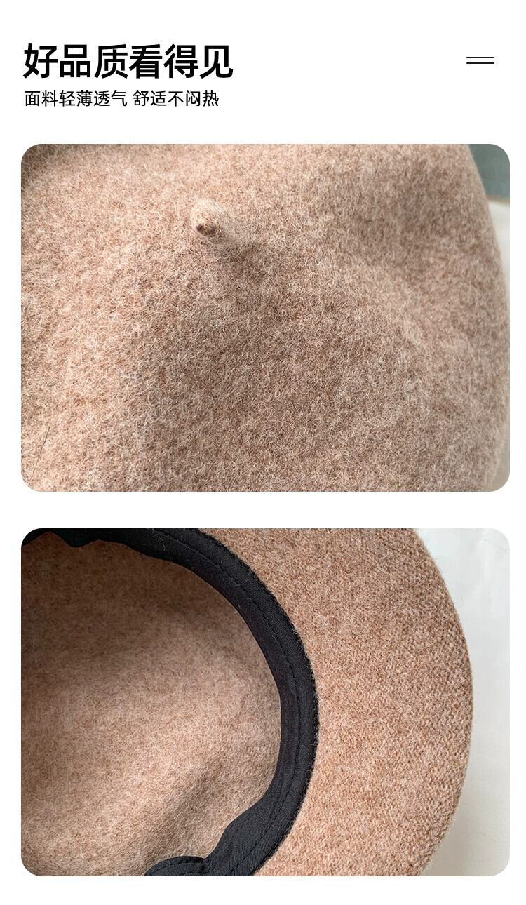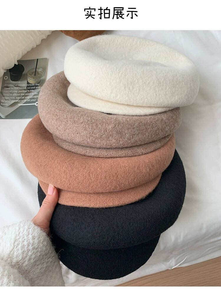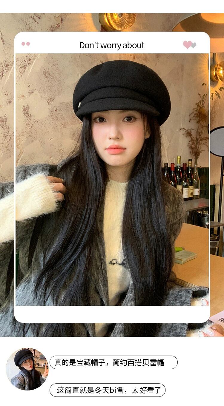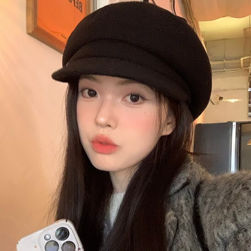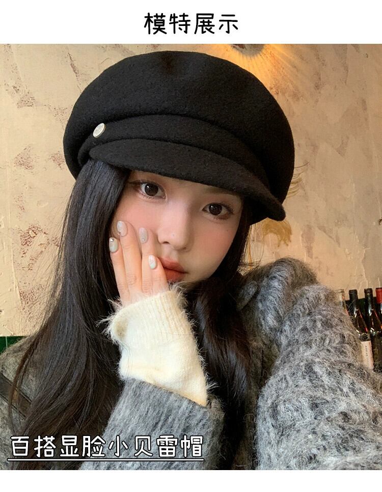 黒ウール八角形帽子女性冬 2023 新しい英国スタイル多用途スタイルインターネット有名人北雷ベレー帽 ブラック ウィンター 冬物 ベレット ヘアアクセサリー 15dd97916862993