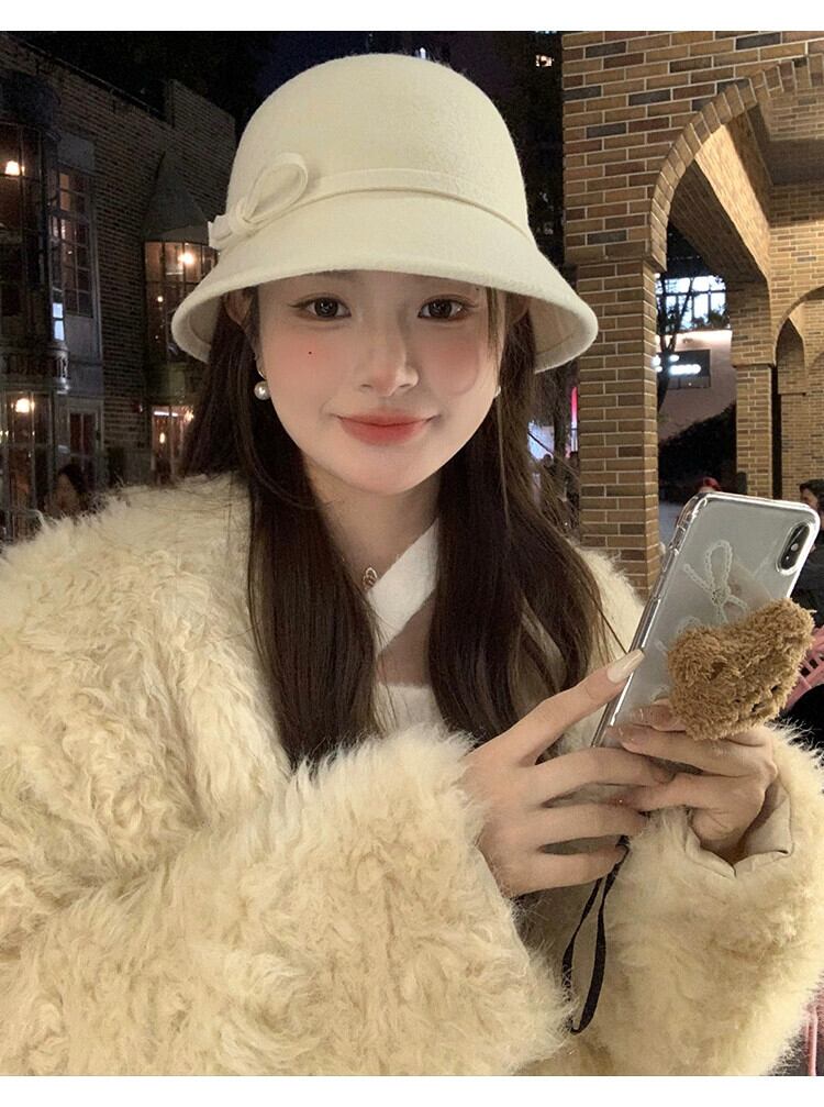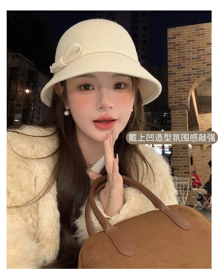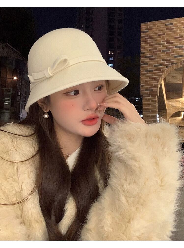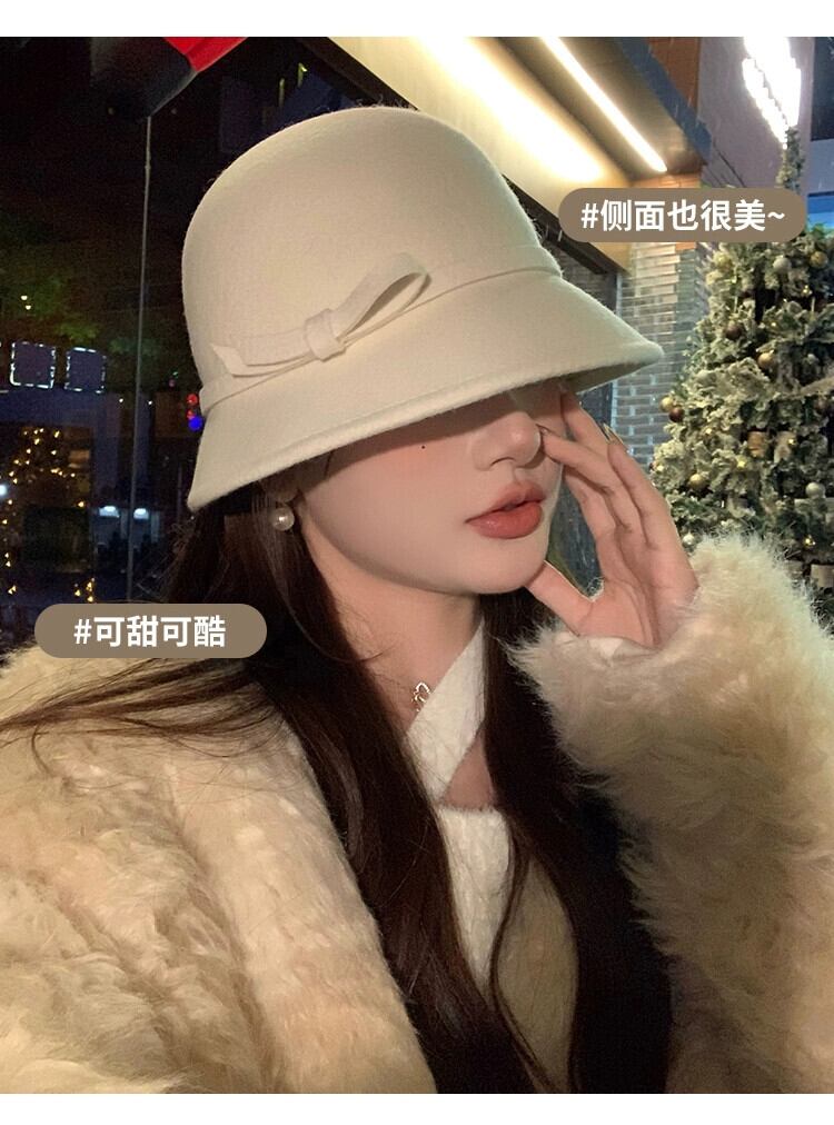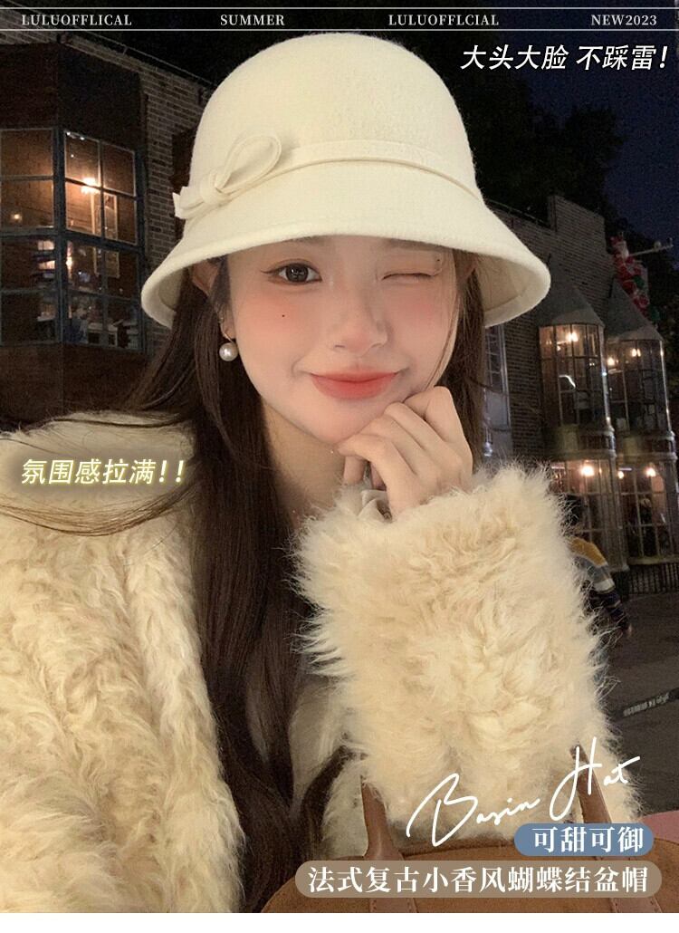 ヘップバーンスタイルのウールの漁師の帽子の女性の秋冬のフランスのレトロな小さな香りのスタイルの白いエレガントな気質の帽子 ホワイト オータム 秋物 ウィンター 冬物 15dd80616155272