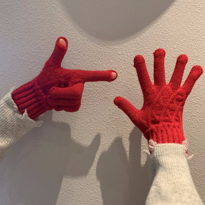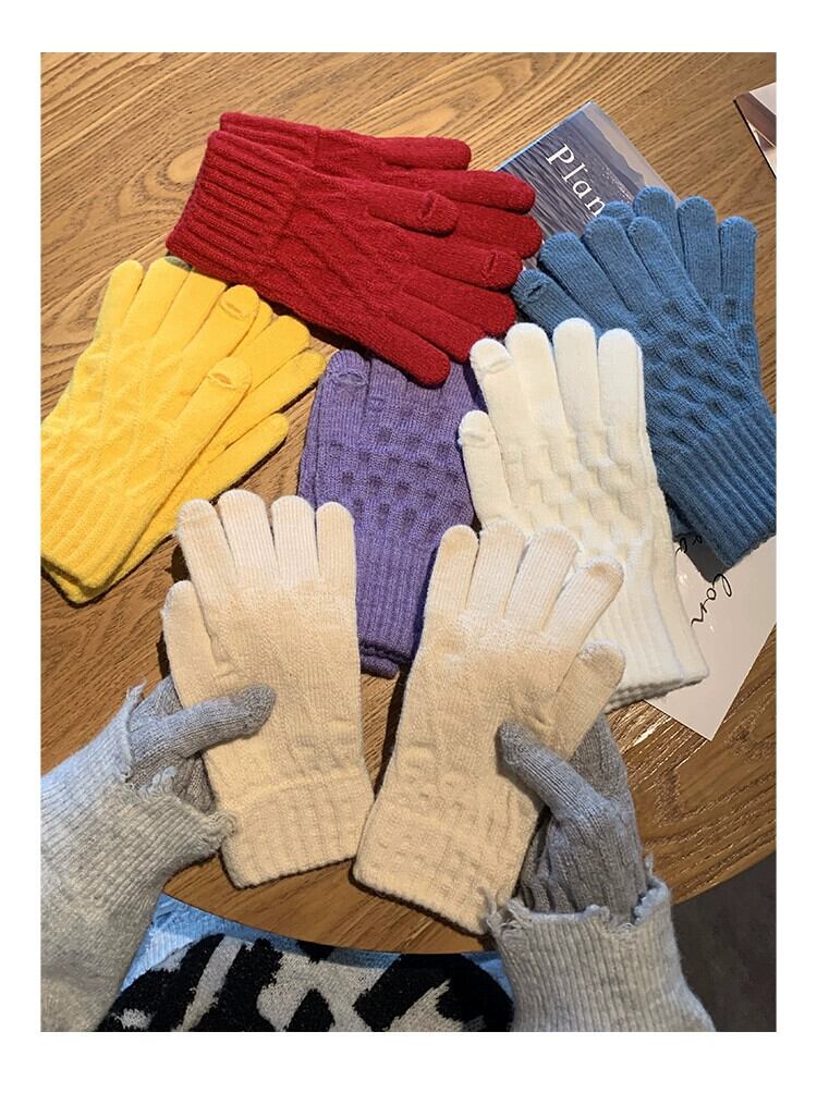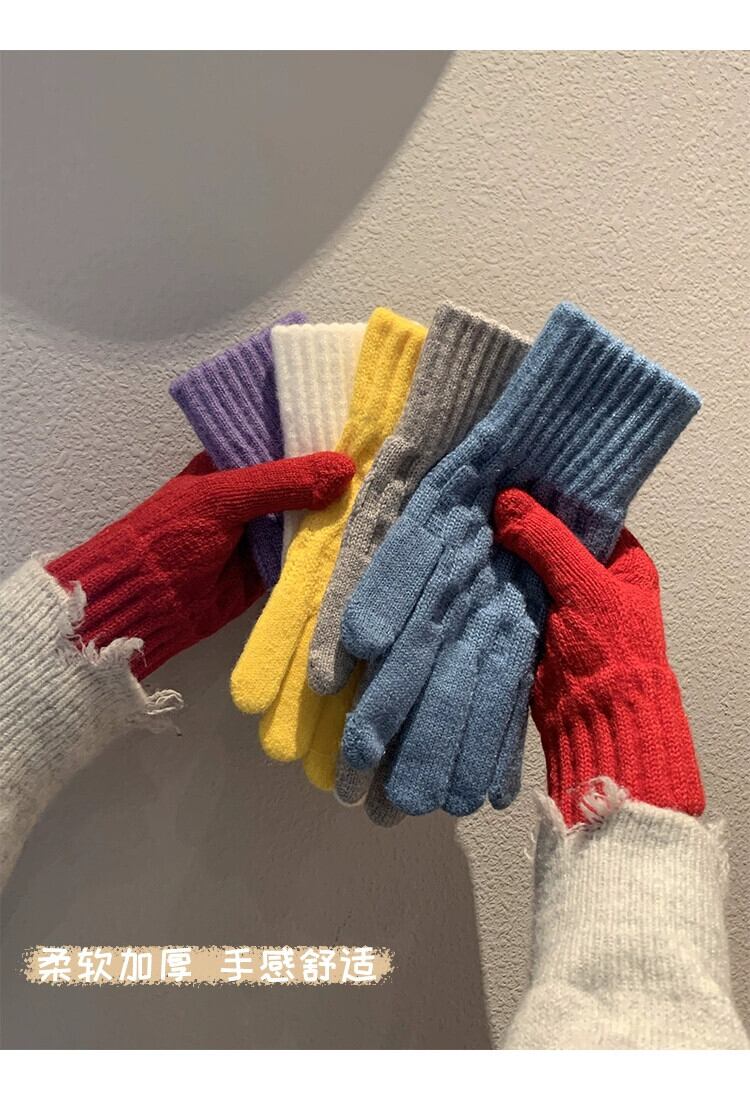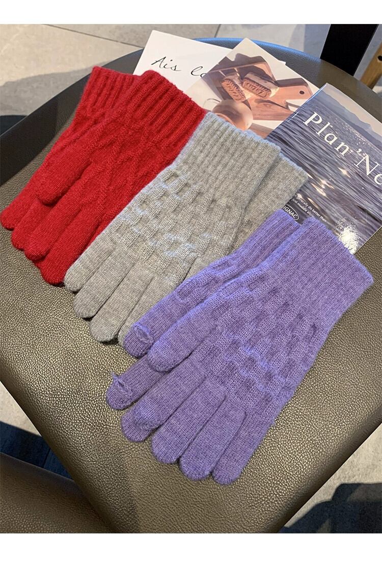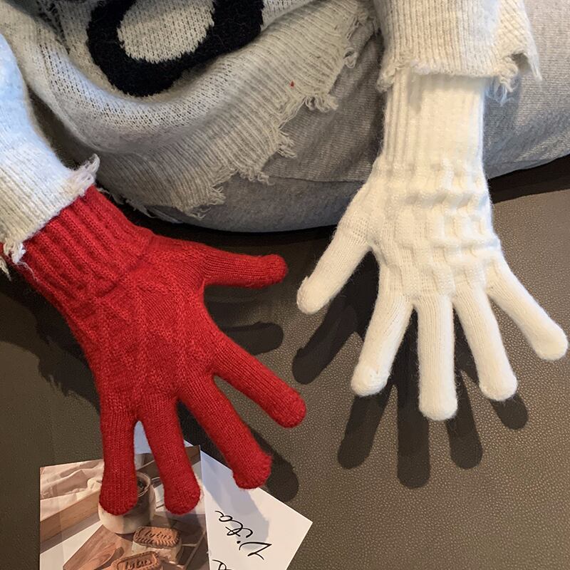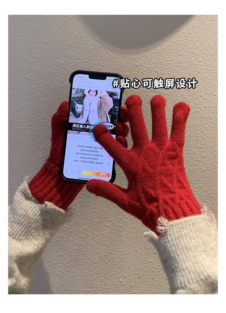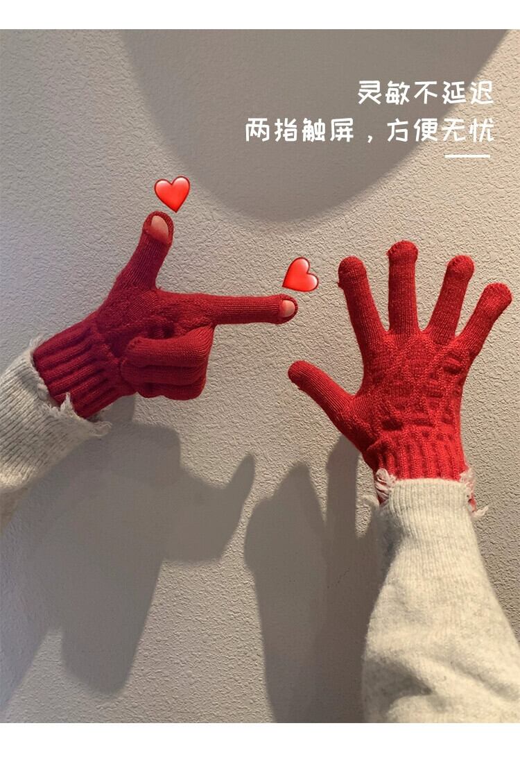 冬の赤いニット手袋女性防風暖かいウールスプリットフィンガーと行方不明の指乗馬防寒肥厚手袋 レッド ウィンター 冬物 15dd55637851334