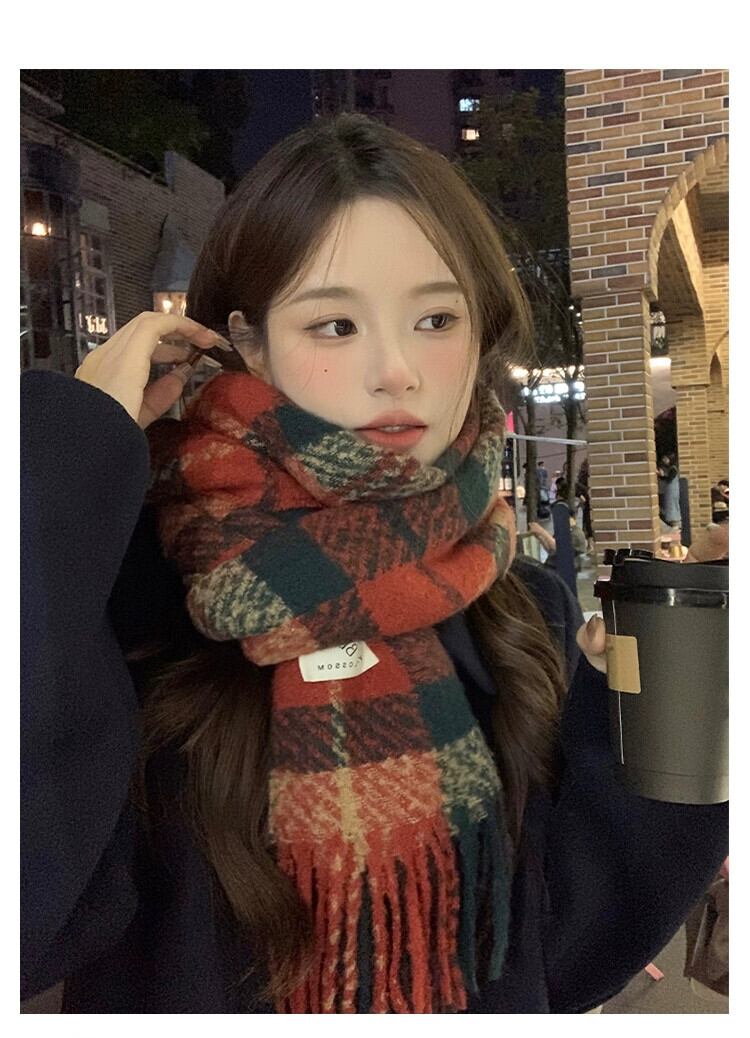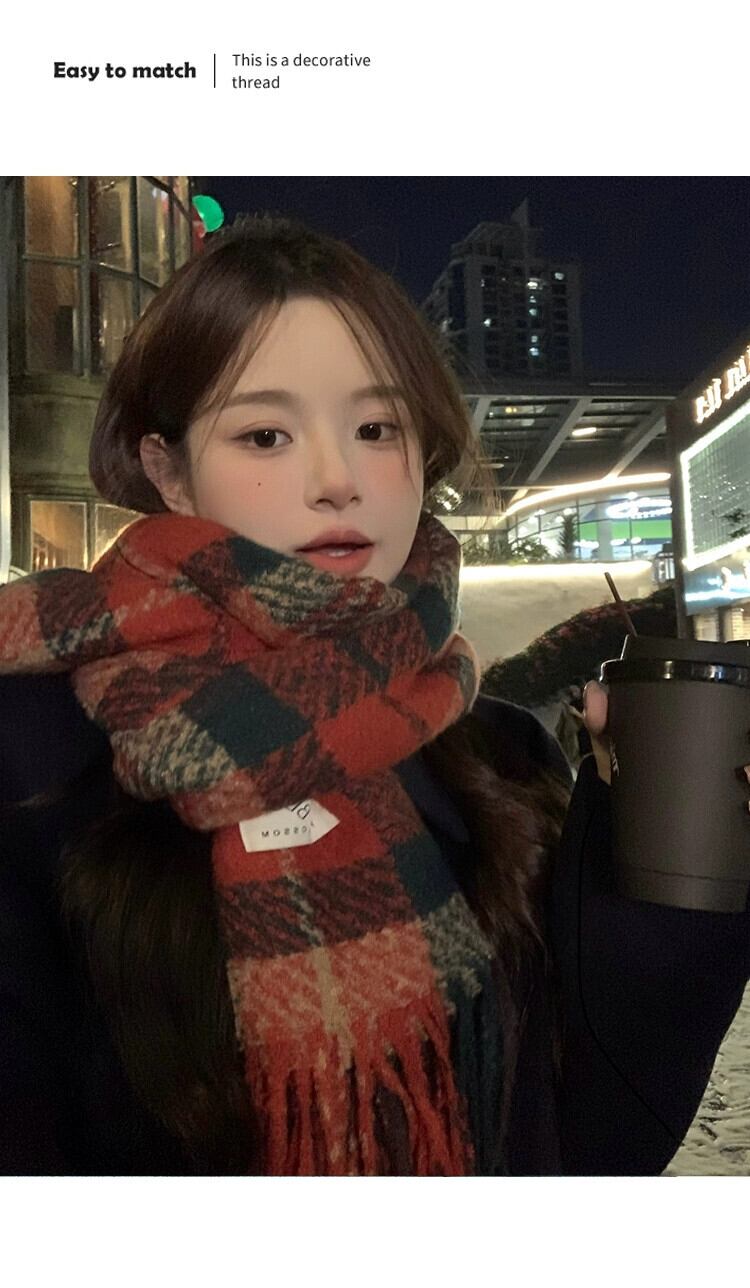 スタイル赤チェック柄スカーフ女性冬 2023 新しい模造カシミヤ暖かい雰囲気気質多目的スカーフ レッド ウィンター 冬物 15dd73488133311