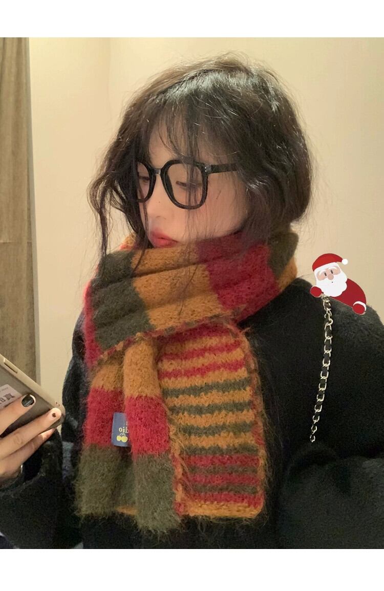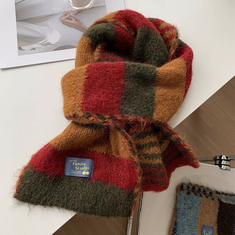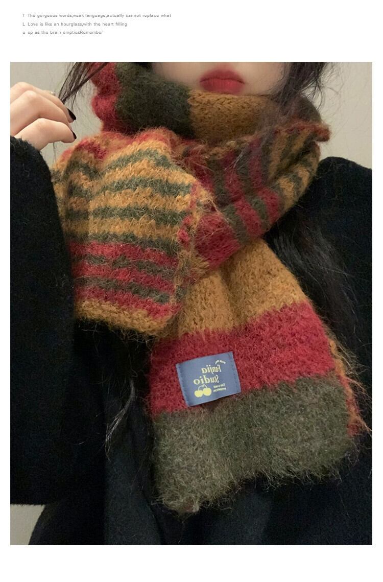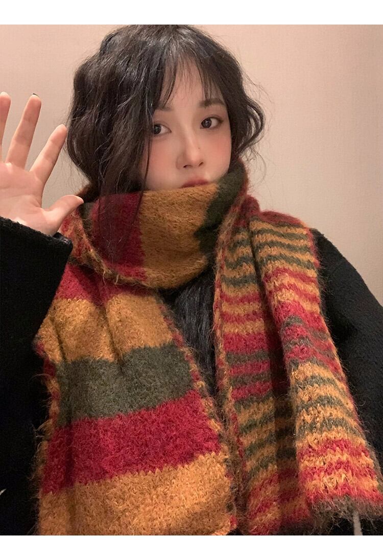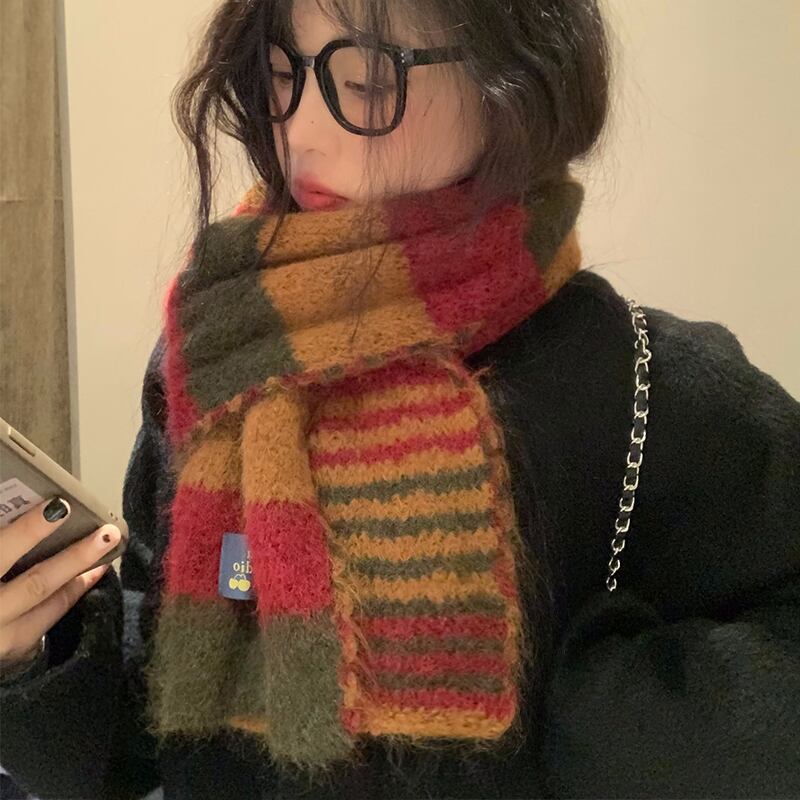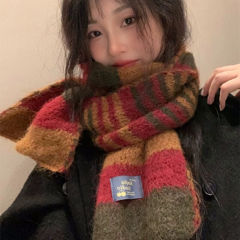 ese レトロドーパミンコントラストストライプスカーフ女性の冬 2023 新しい多用途肥厚暖かいカップルスカーフ ウィンター 冬物 15dd95829087871