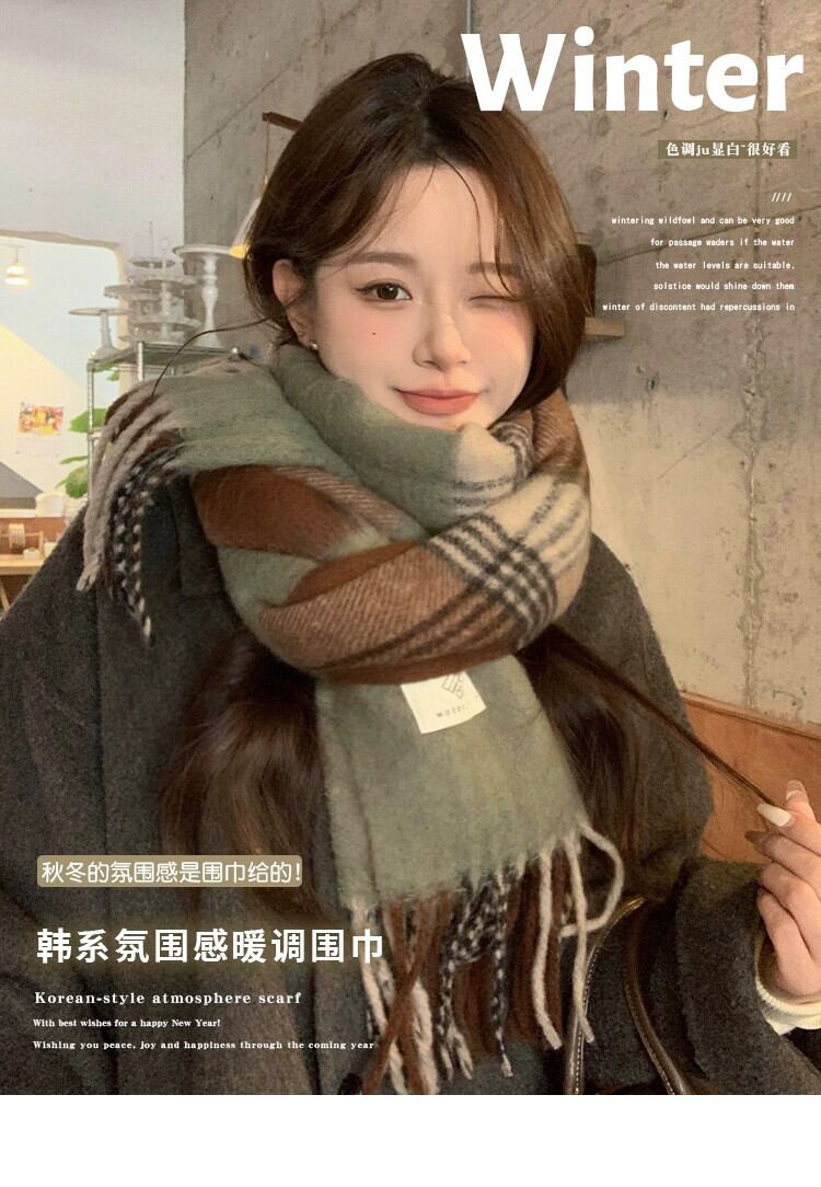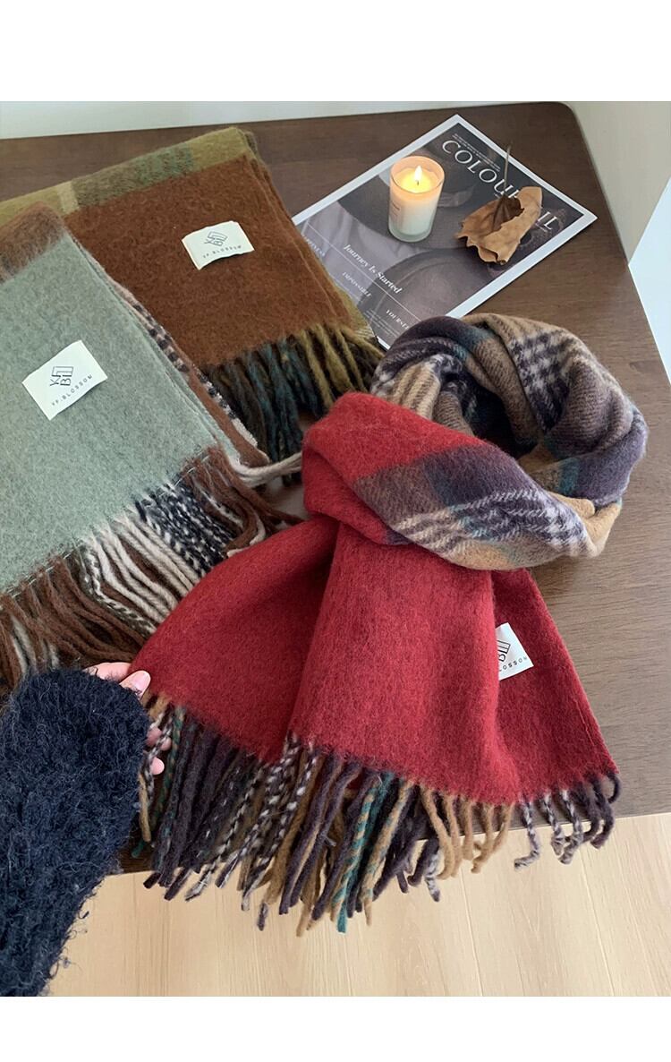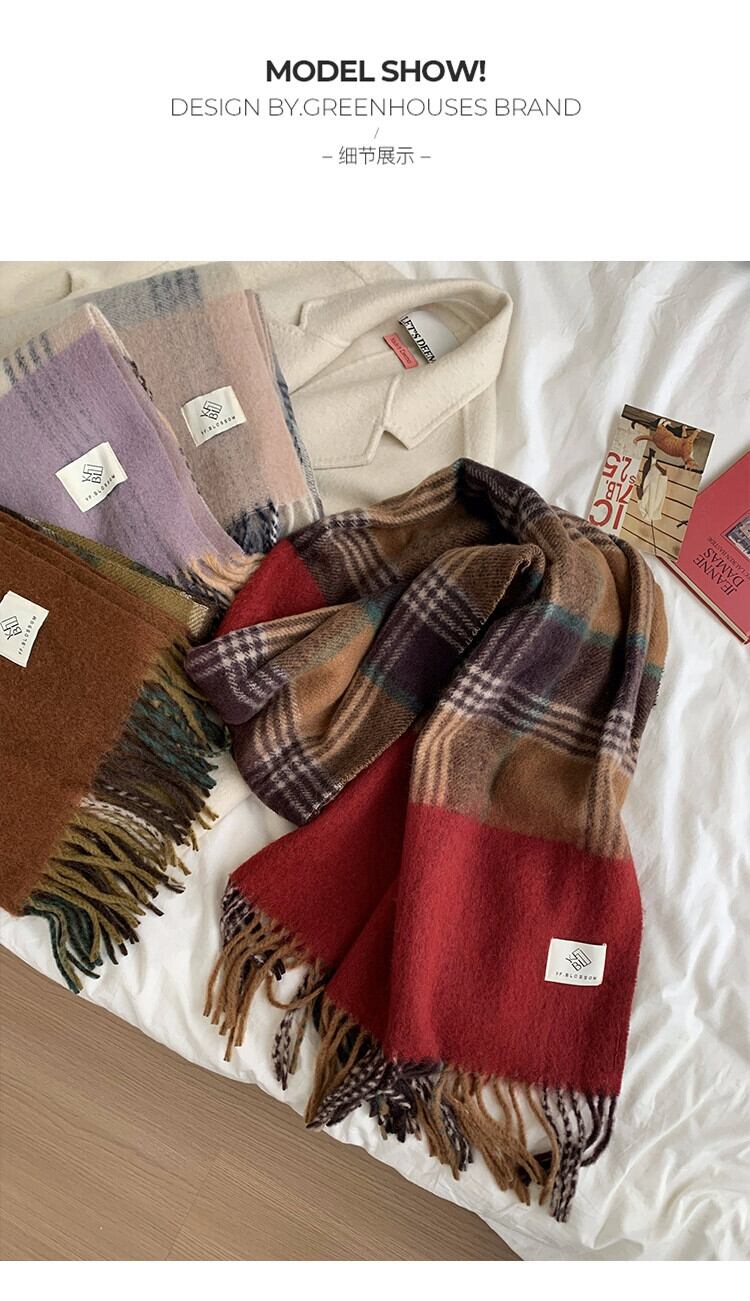 -終わりレトロ模造カシミヤスカーフ女性 2023 冬の新カラーマッチング肥厚学生暖かくて防寒スカーフ ウィンター 冬物 15dd99995578240