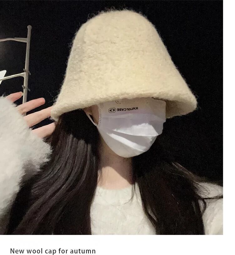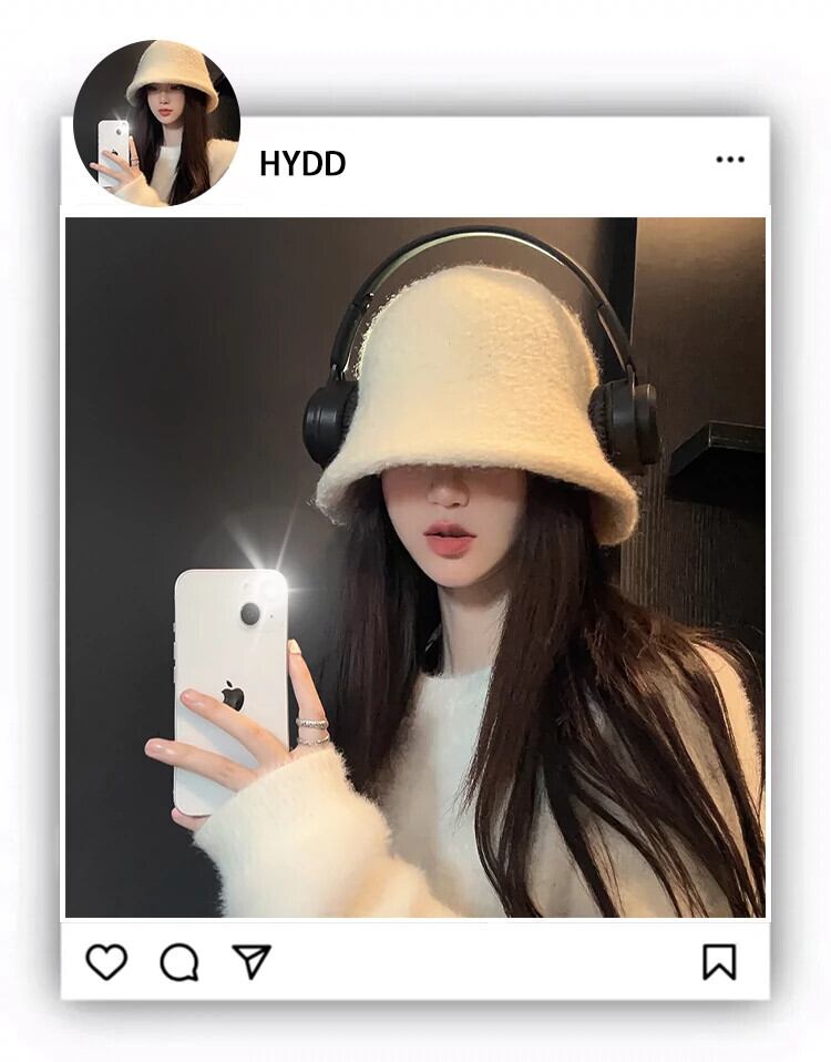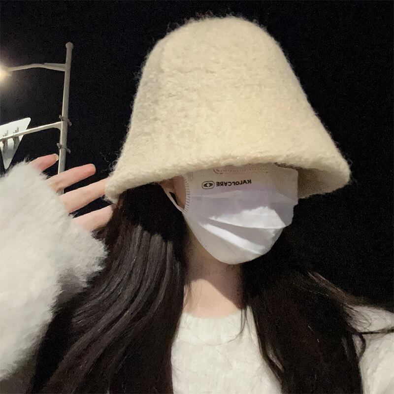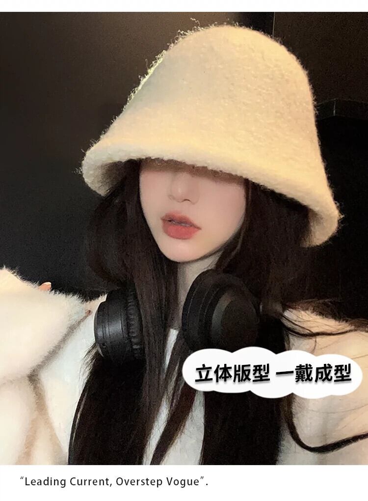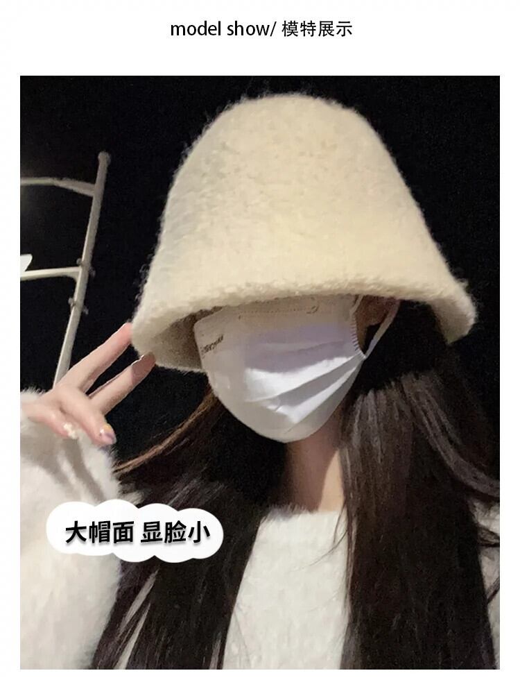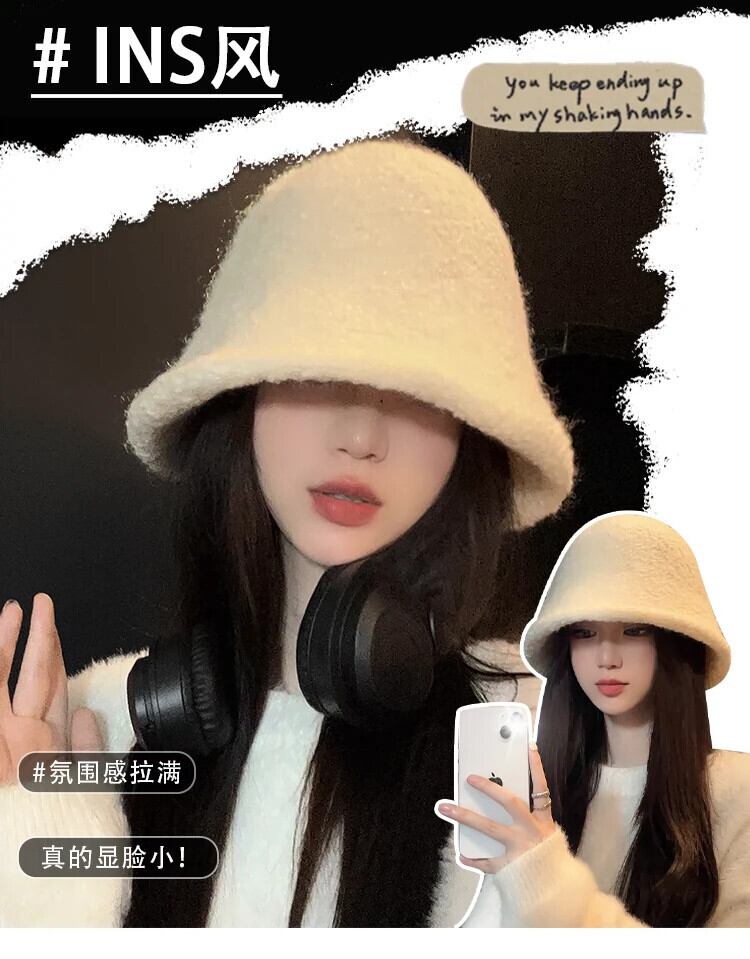 Enjia限定〜シェパード盆地帽女性冬バージョンソリッドカラー多用途バケットハットSEスタイルの顔付き小さな漁師帽子 ウィンター 冬物 15dd86678953446