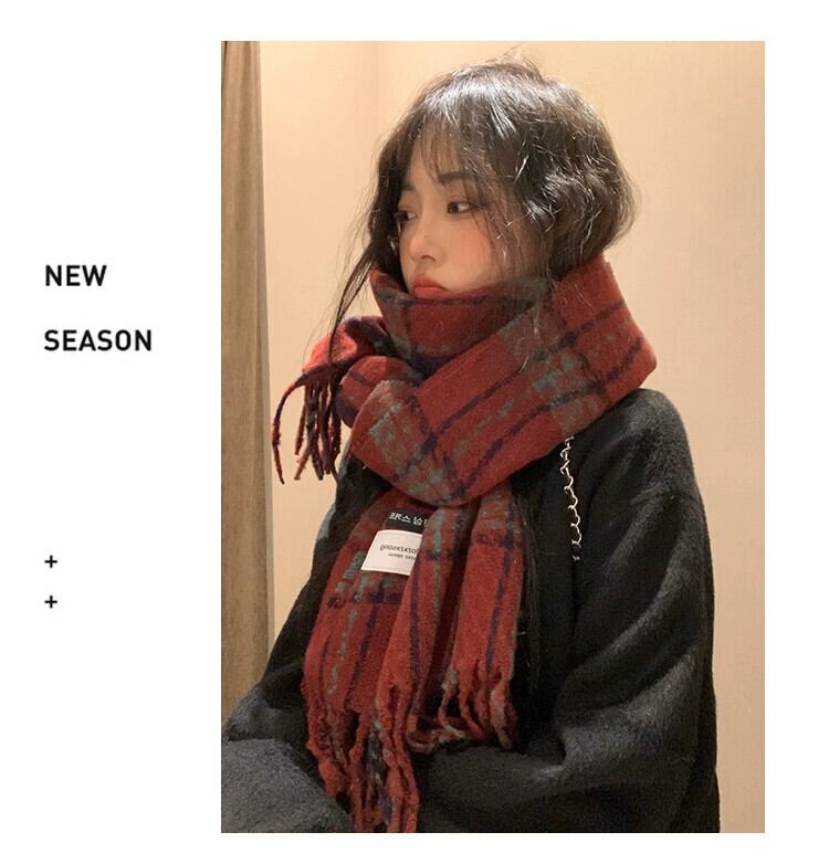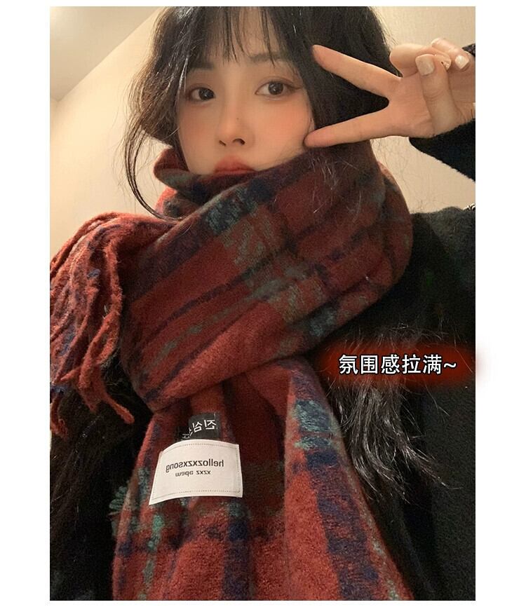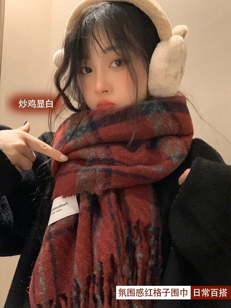 冬の雰囲気の赤いスカーフの女性 2023 新しいハイエンド模造カシミヤ暖かいチェック柄のスカーフ レッド ウィンター 冬物 15dd91533653248
