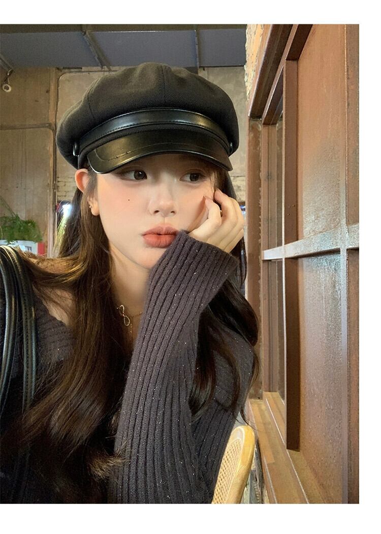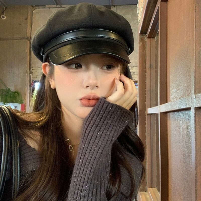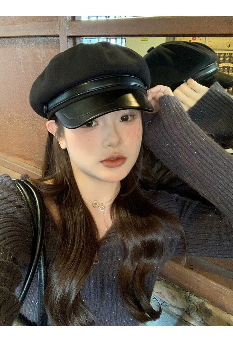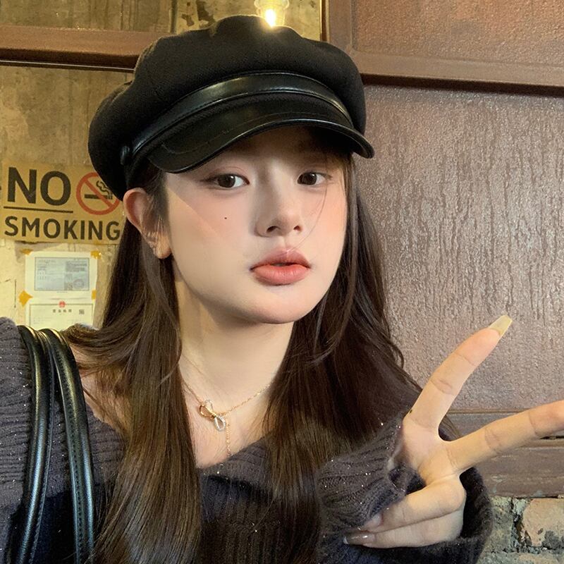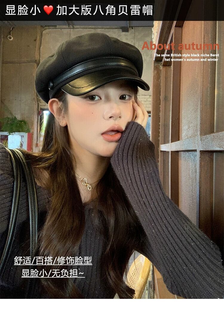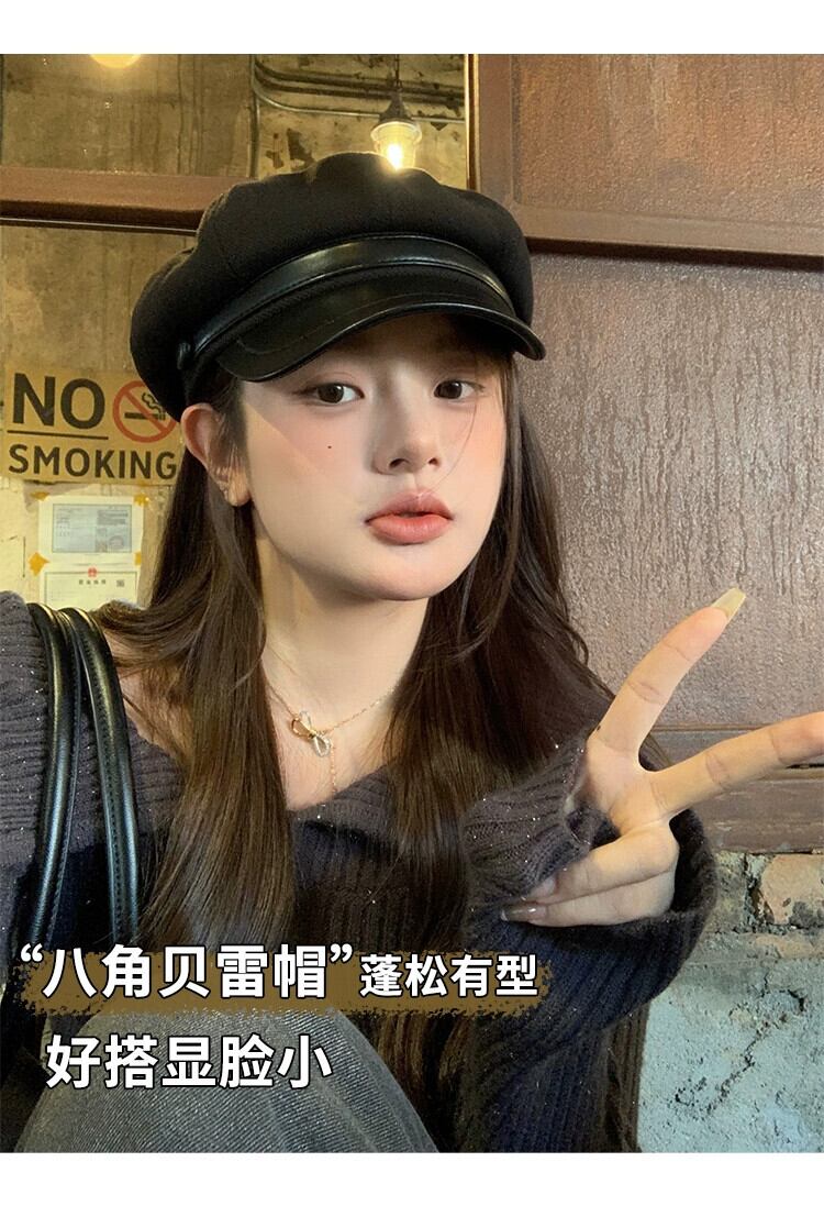 レトロベレー帽レディース2023秋冬新作レトロ黒八角形帽子、ファッショナブルで多用途な英国画家の帽子 ブラック オータム 秋物 ウィンター 冬物 ベレット ヘアアクセサリー 15dd5994037633