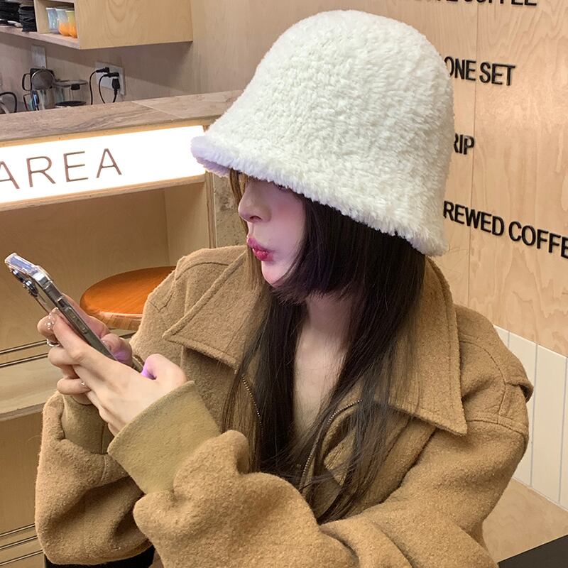 フィッシャーマンハット 2023 女性の秋と冬の顔明らかに小さな厚く暖かいバケットハット多用途豪華なラムウール盆地帽子 オータム 秋物 ウィンター 冬物 15dd33878277907