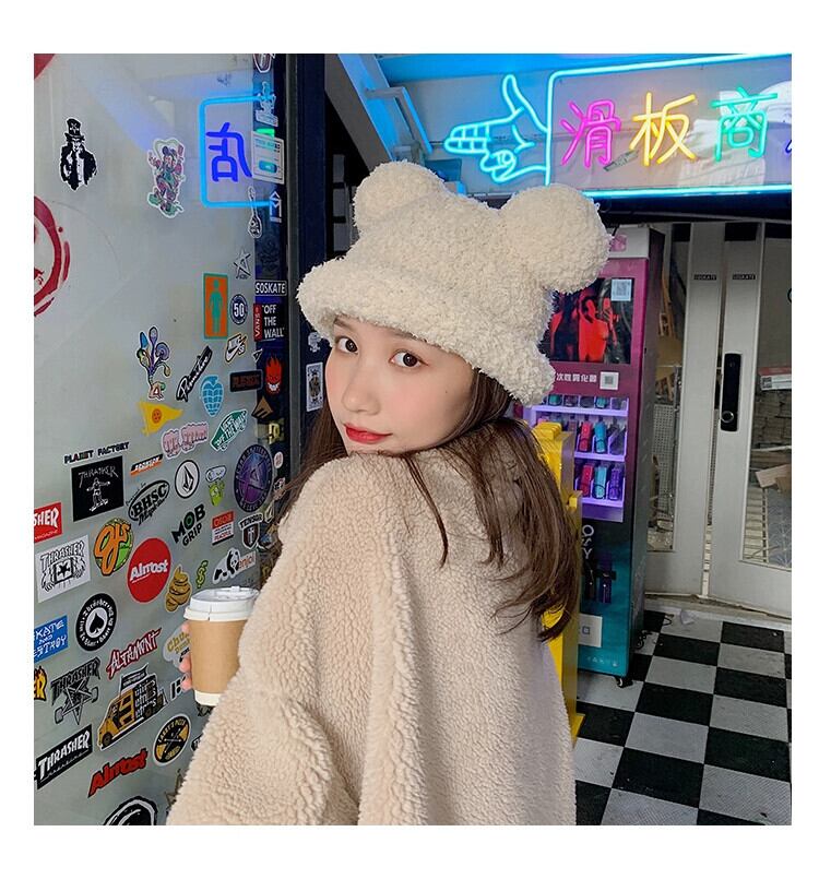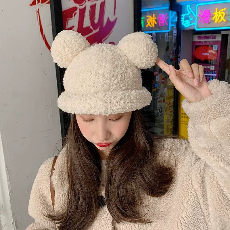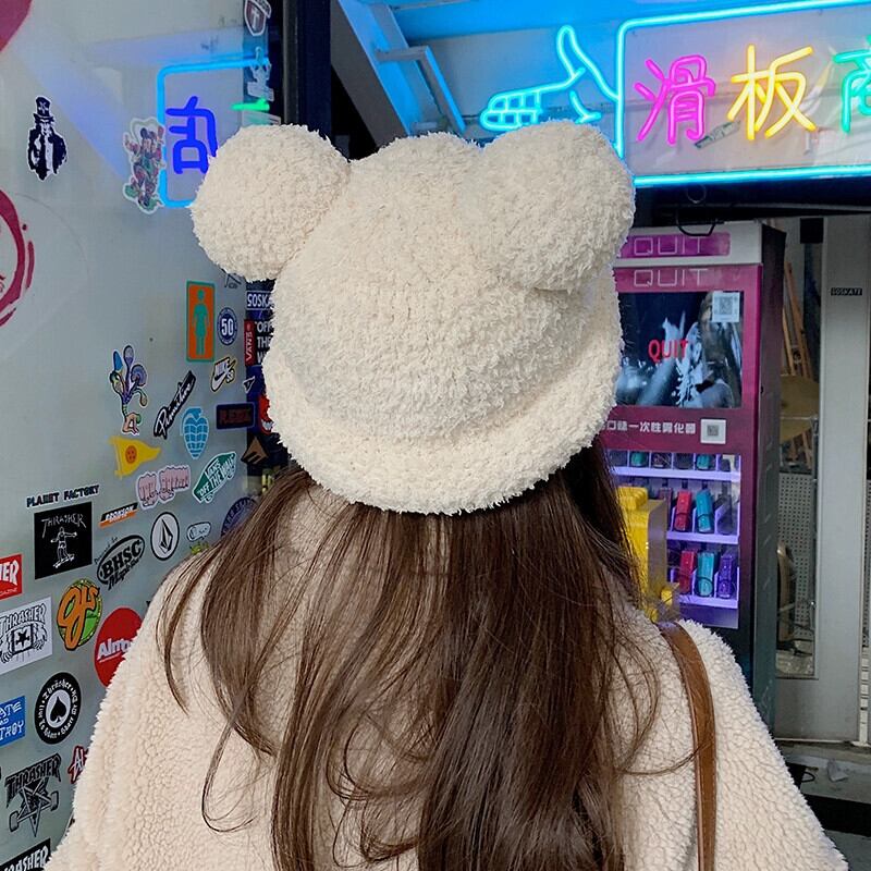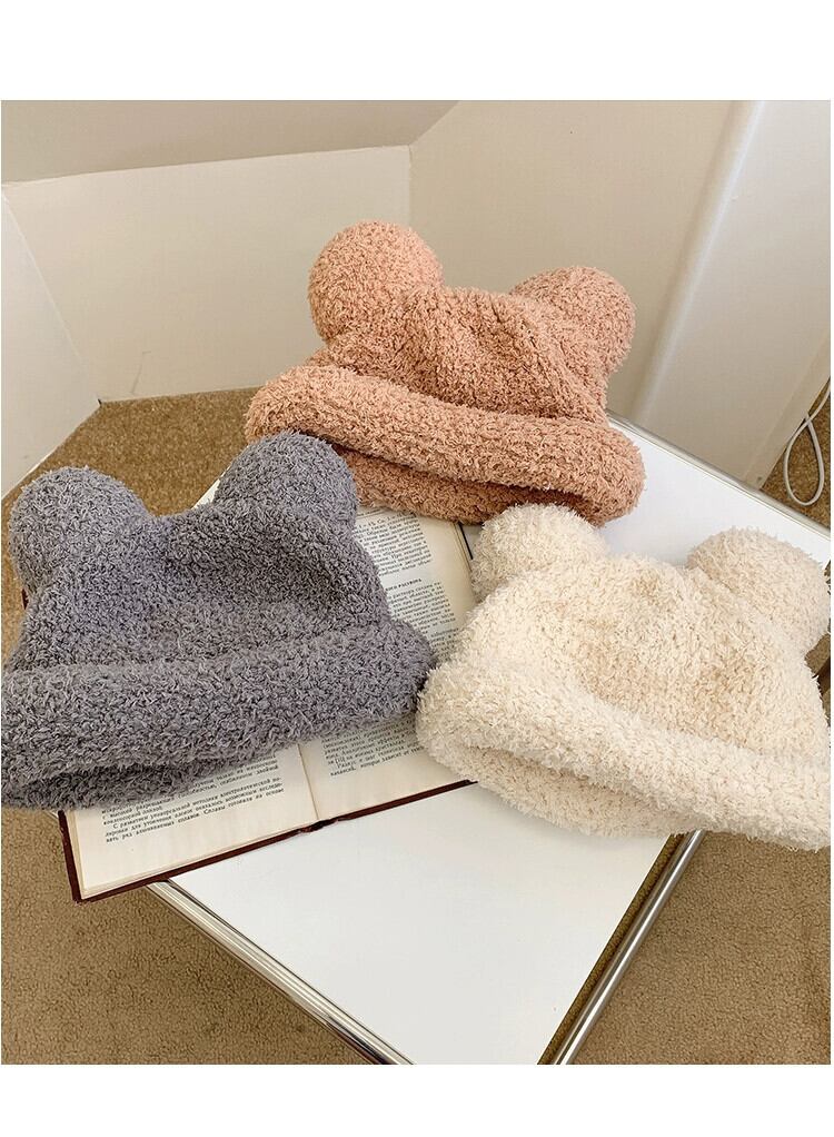 これらのかわいいクマの耳ウールニット帽子女性の秋と冬バージョンイン多用途肥厚暖かい耳盆地帽子 大人ガーリー スウィート キュート カジュアル オータム 秋物 ウィンター 冬物 15dd387794488