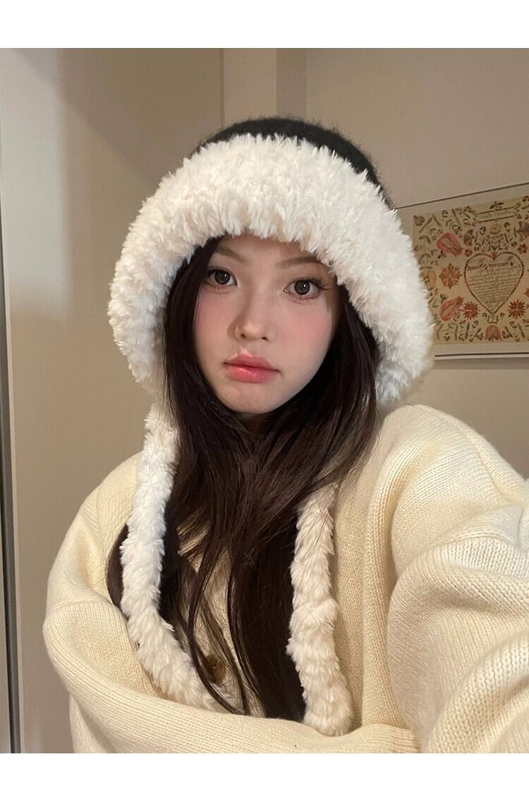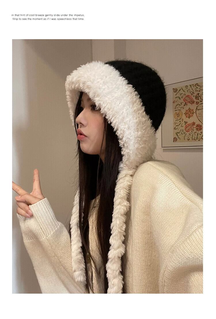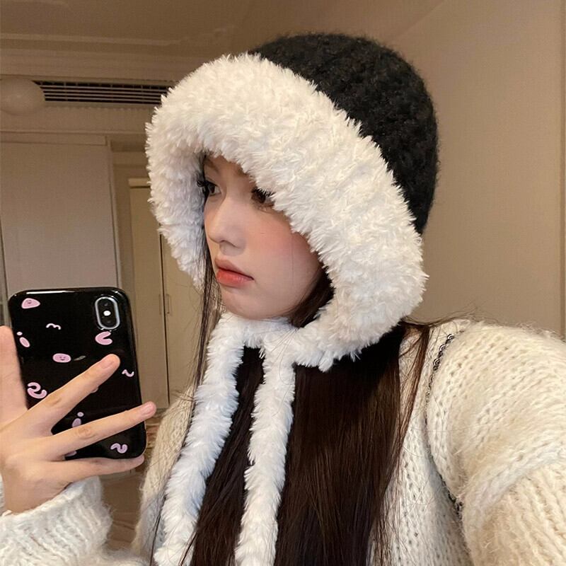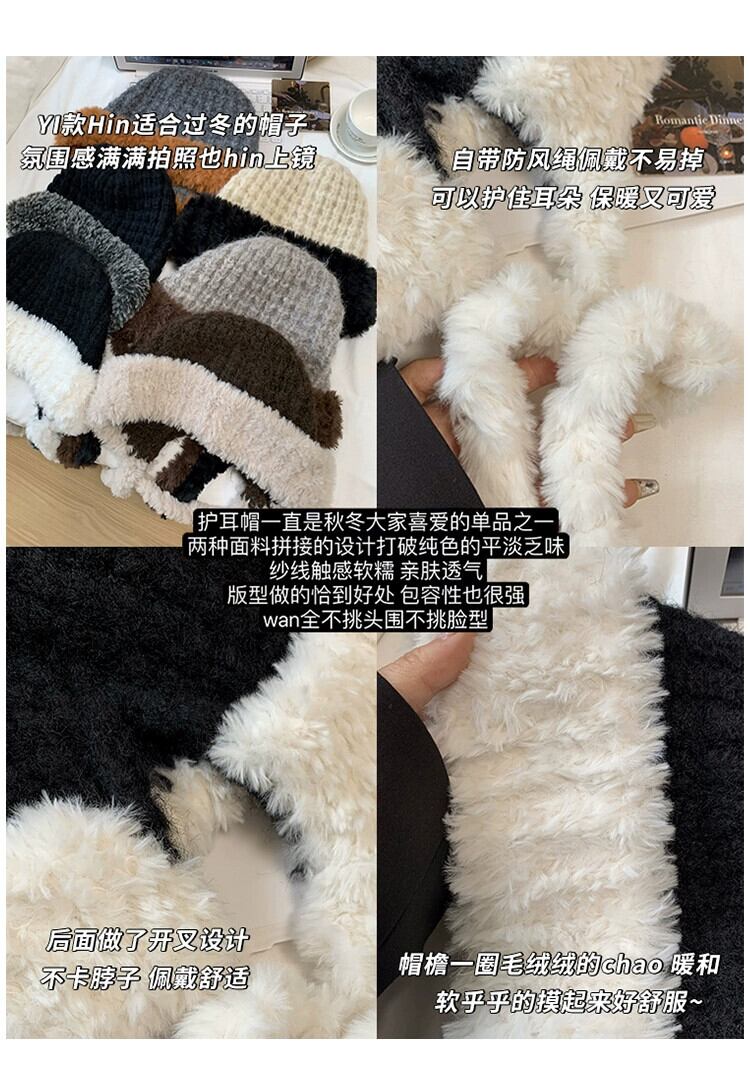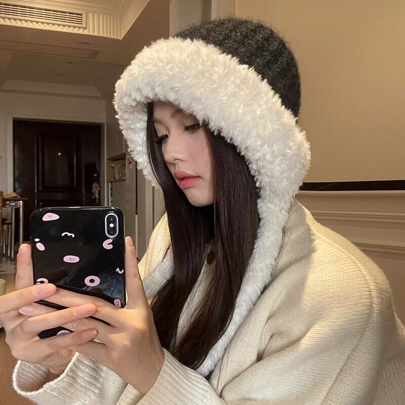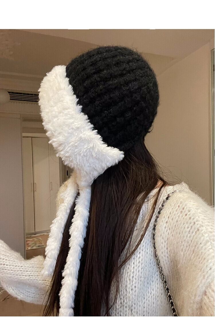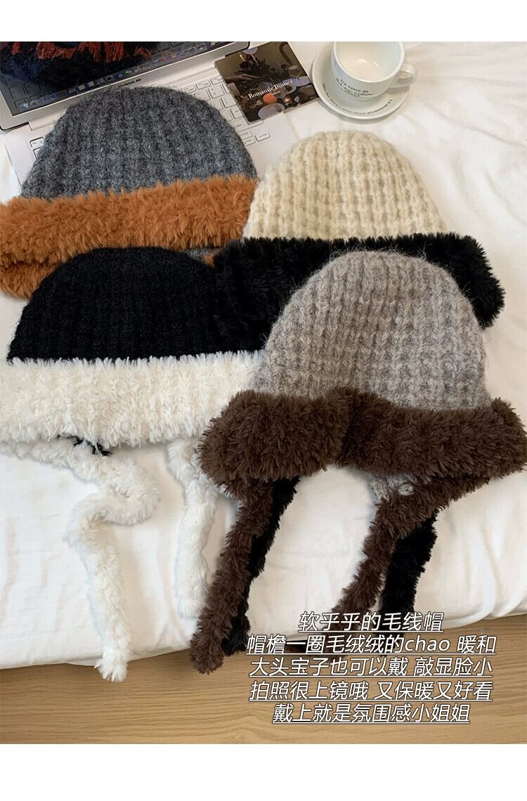 毛皮の帽子の女性の冬の耳の保護雷峰帽子ウール帽子大きな頭囲ソフト暖かいニットぬいぐるみ包頭帽子 ウィンター 冬物 15dd26217211223