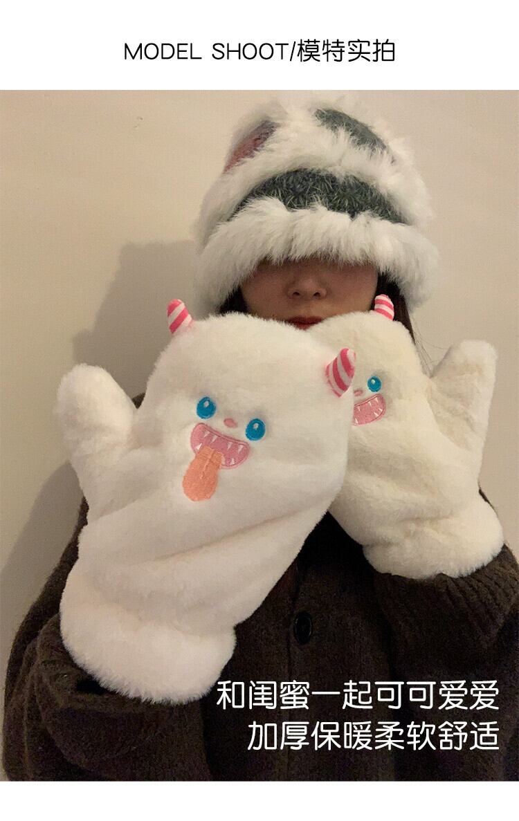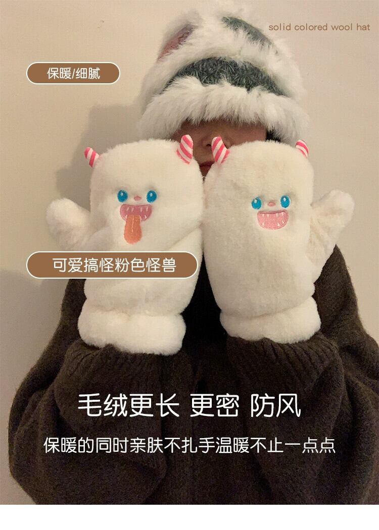 かわいい豪華な冬用手袋、女性用、厚みのあるモンスターの暖かいミトン、コールドプレイ、雪乗り、ベルベットの防風手袋。 大人ガーリー スウィート キュート カジュアル ウィンター 冬物 15dd79715843964