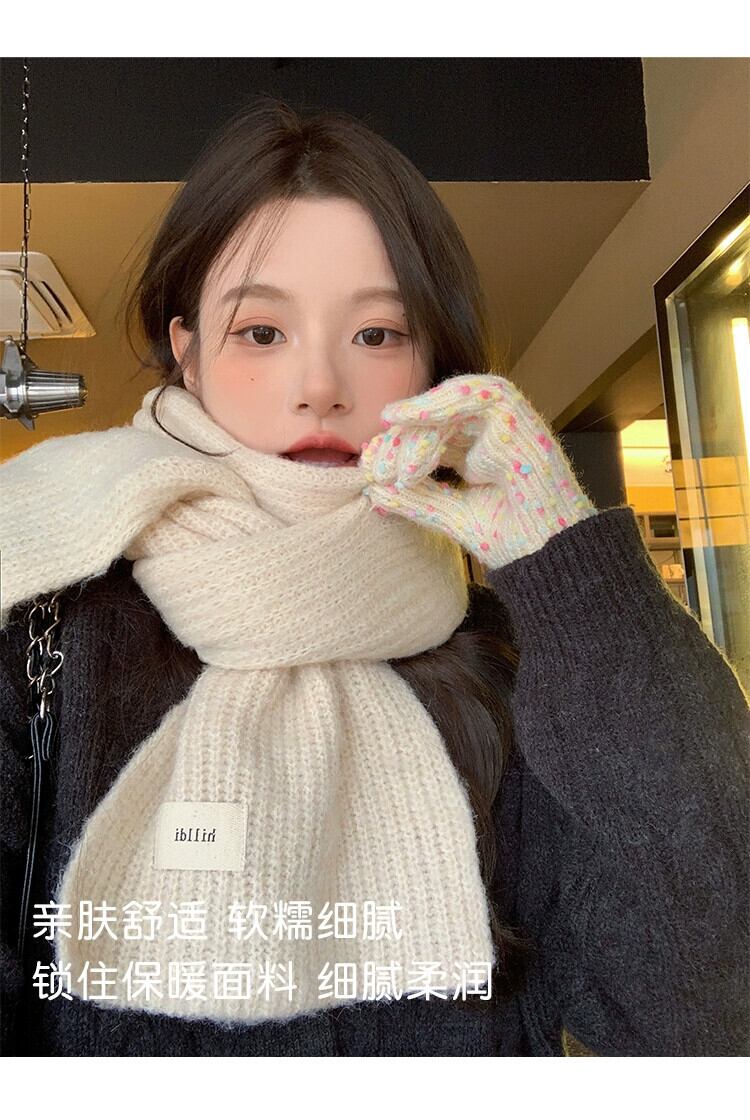 ウール スタイル ベージュ スカーフ女性冬 2023 新しい白ニット暖かく多用途のハイエンド スカーフ トレンドを含む ホワイト ウィンター 冬物 15dd13465321452