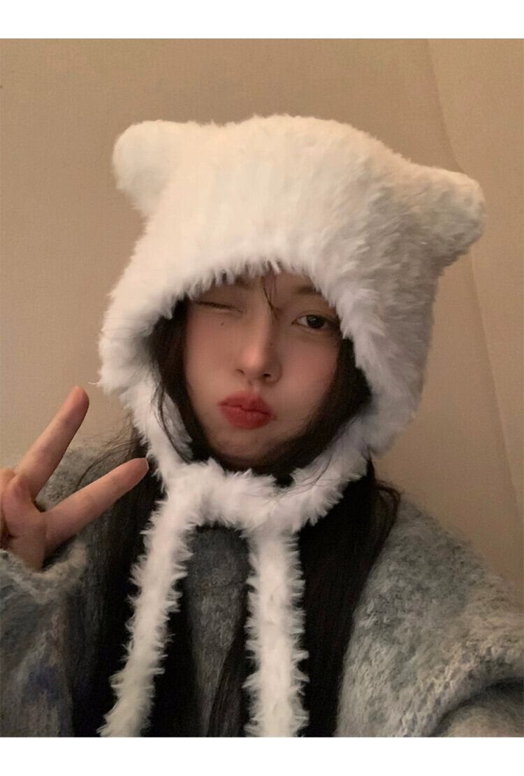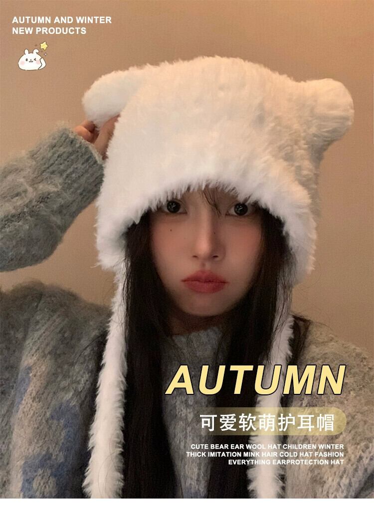 かわいいクマのウールの帽子の女性の秋と冬 2023 新しい豪華な暖かい大きな頭囲耳保護キャップ 大人ガーリー スウィート キュート カジュアル オータム 秋物 ウィンター 冬物 15dd37444518088