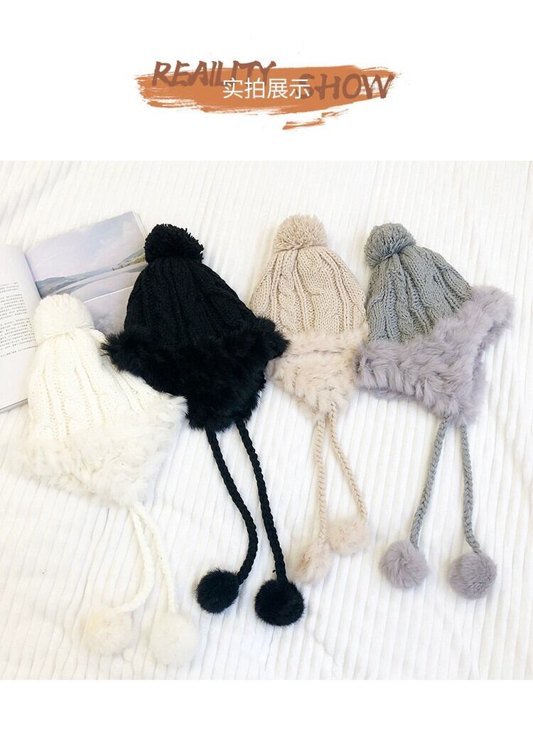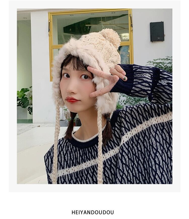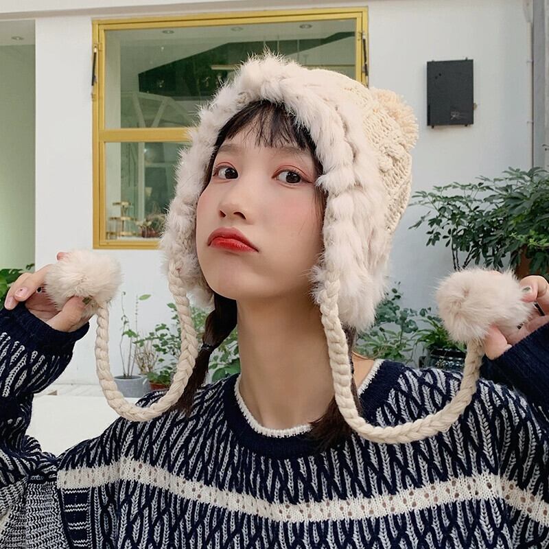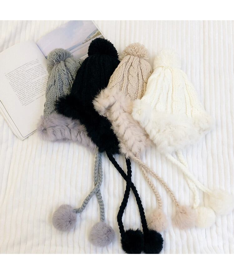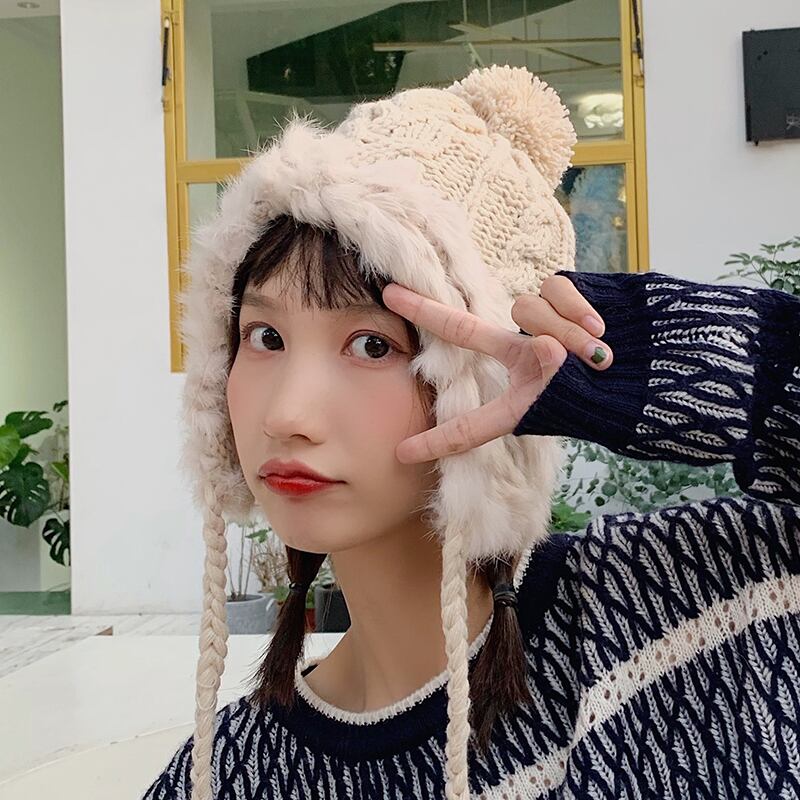 スタイルウールの帽子の女性、秋と冬の雷峰帽子、暖かい耳の保護、プラスベルベットのウサギの毛皮のボール、防風ニット帽子、トレンディな オータム 秋物 ウィンター 冬物 15dd53169160800