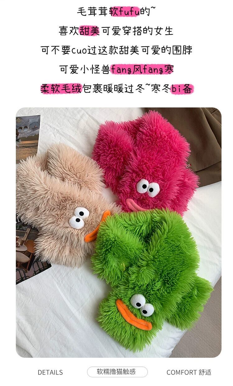 冬に厚くて暖かいクロス毛皮の大学生のぬいぐるみスカーフの面白くてかわいい小さなモンスター スカーフ 大人ガーリー スウィート キュート カジュアル ウィンター 冬物 15dd97321860092