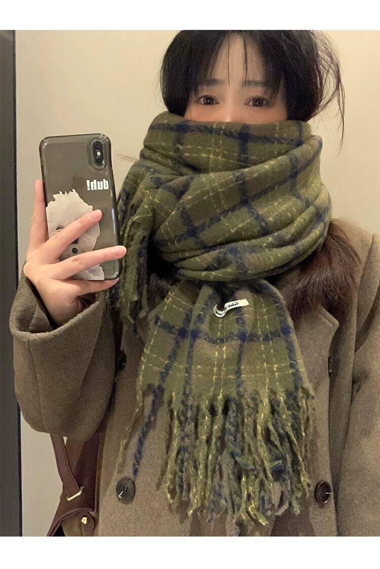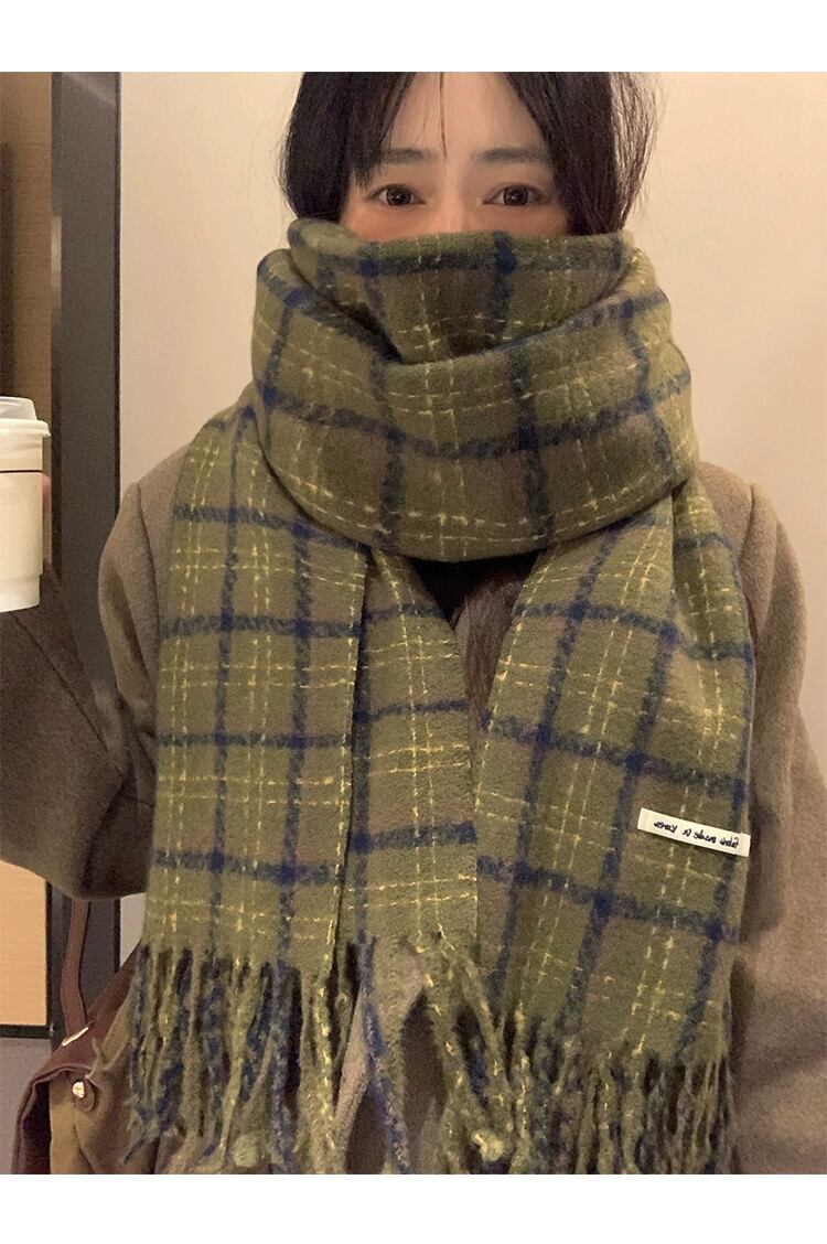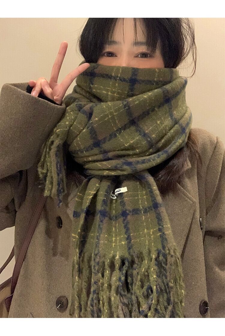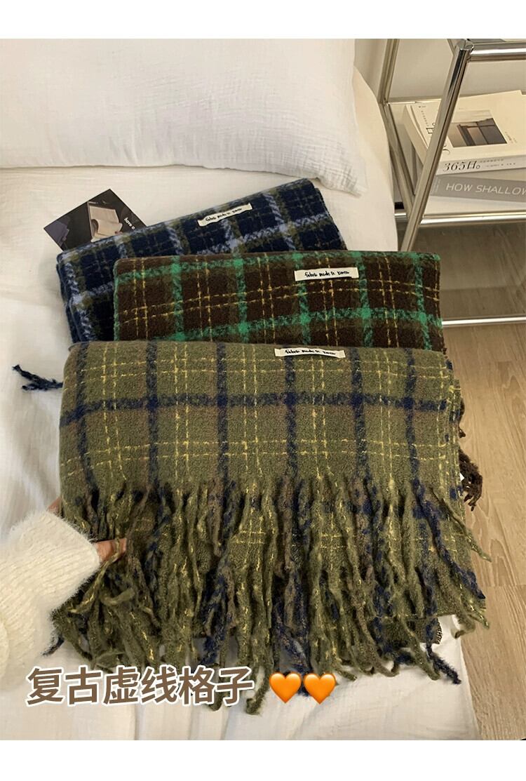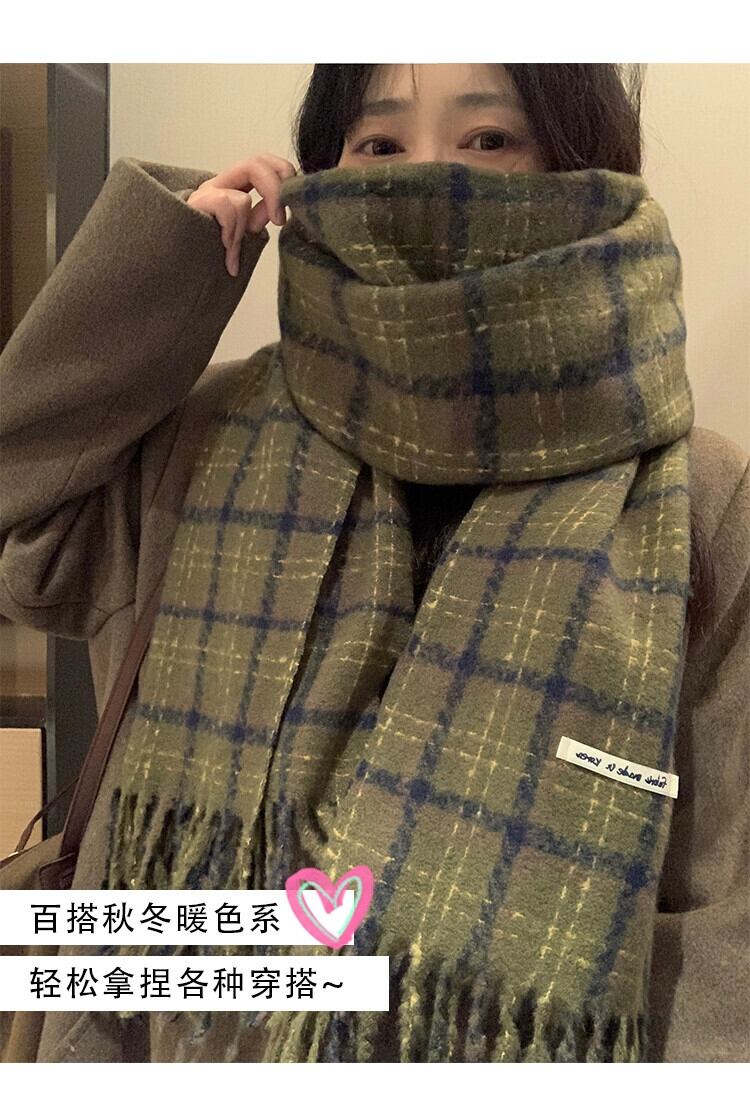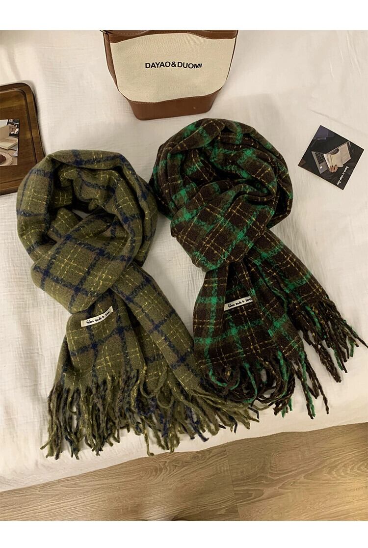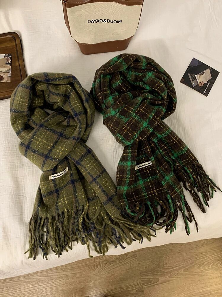 レトロな模造カシミアチェック柄スカーフレディース、暖かく保つためのテル付きバージョン、学生カップルショールとスカーフ男性と女性、秋と冬のファッション オータム 秋物 ウィンター 冬物 15dd75514904261