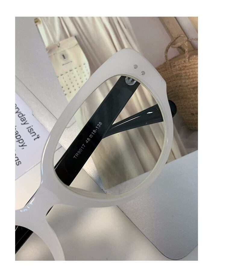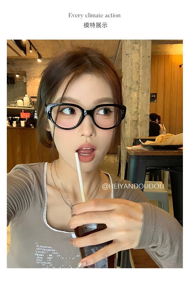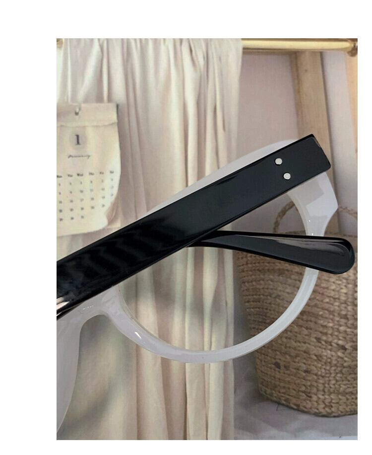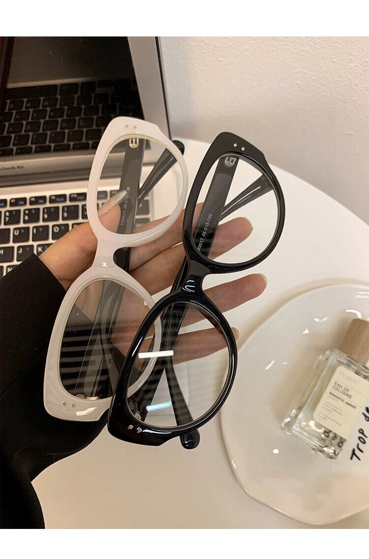 レトロな黒フレーム太リムキャットアイ目尻すっぴん女性、丸顔、卵型顔、小顔フレーム、フラットフレーム ブラック オーバル 15dd36941010575
