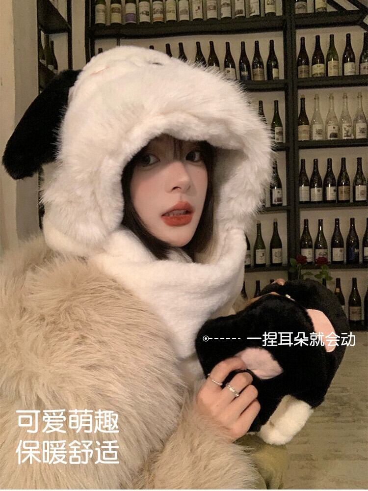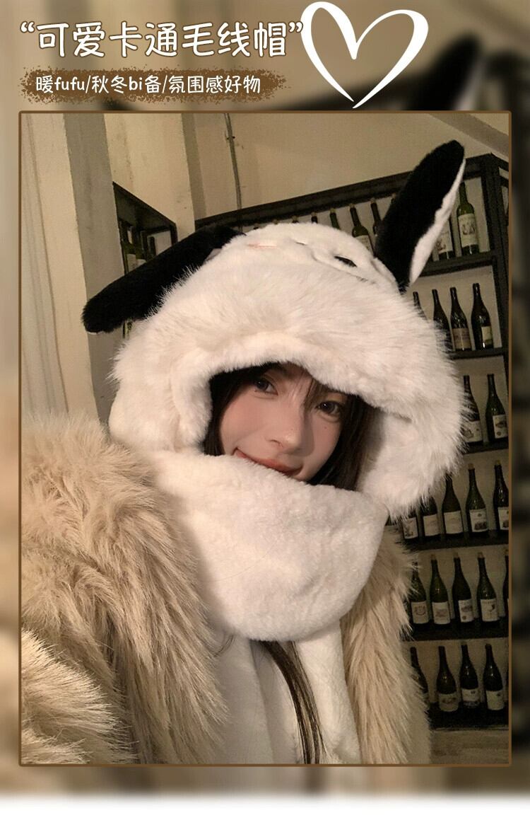 スタイル長い耳かわいい帽子女性秋と冬暖かい帽子スカーフ手袋ワンピース 3 点セット豪華なスカーフトレンディな ロング 大人ガーリー スウィート キュート カジュアル オータム 秋物 ウィンター 冬物 15dd13389310640