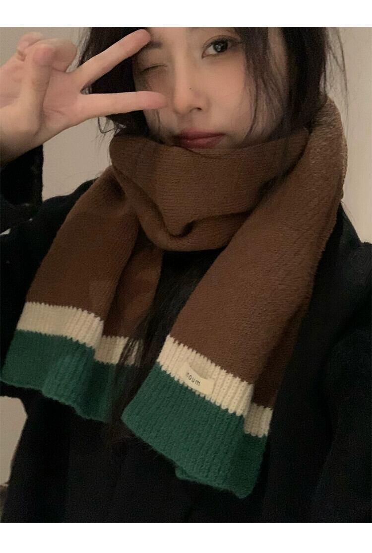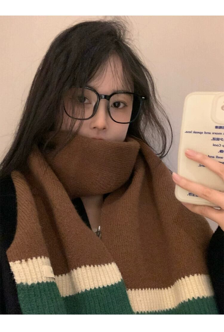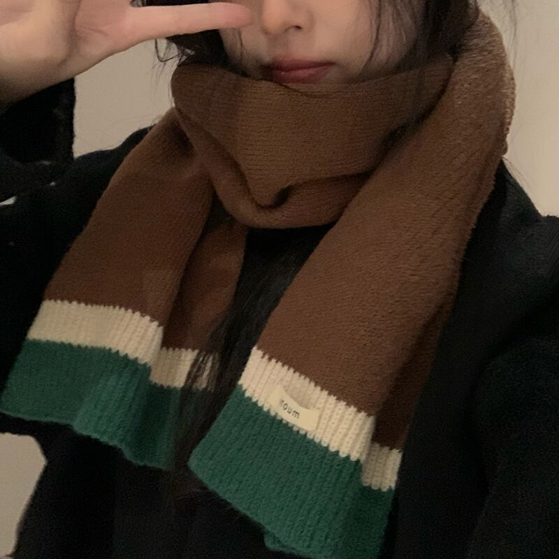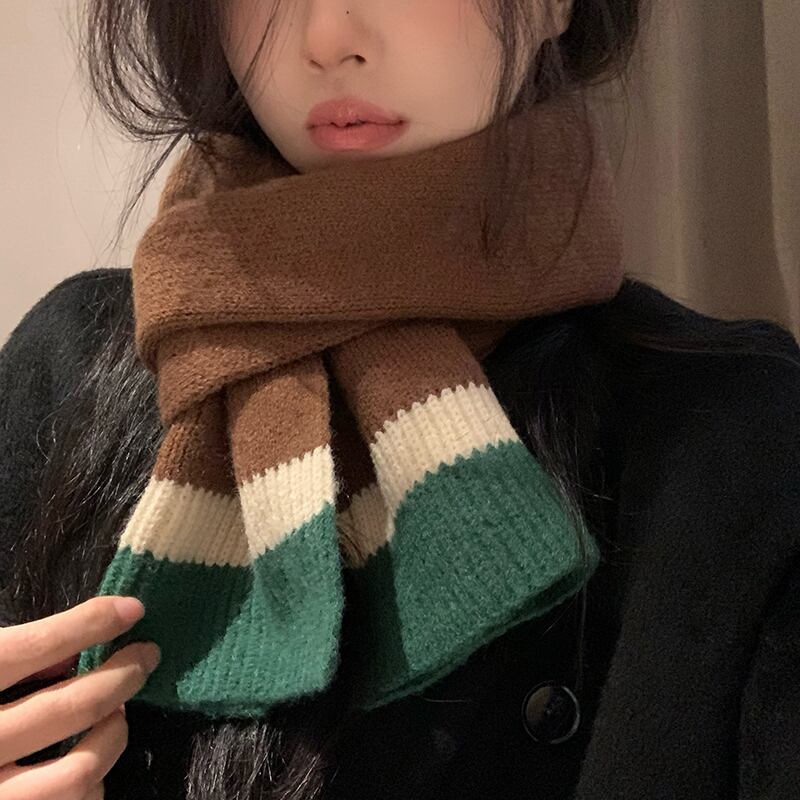 レトロコントラストカラースカーフ女性秋と冬 2023 新しい暖かい学生多用途肥厚ウールネックスカーフ オータム 秋物 ウィンター 冬物 15dd47253495508