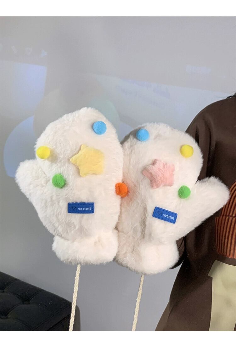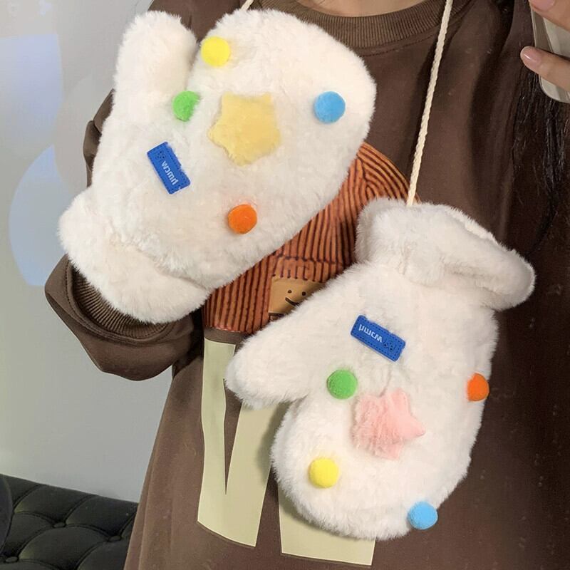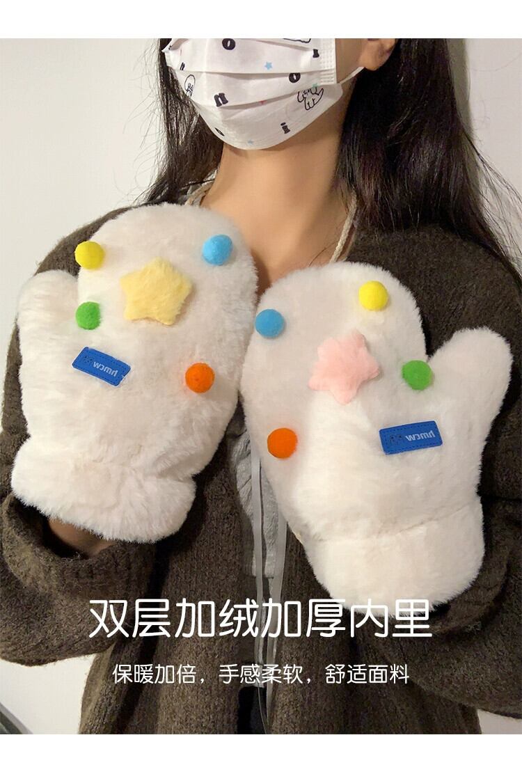 冬に暖かく保つためのかわいいカラフルな豪華なミトンの女性、自転車に乗る厚くて毛皮のようなホルターネックの学生、さらに寒さから守るためのベルベット 大人ガーリー スウィート キュート カジュアル ウィンター 冬物 15dd85134237586