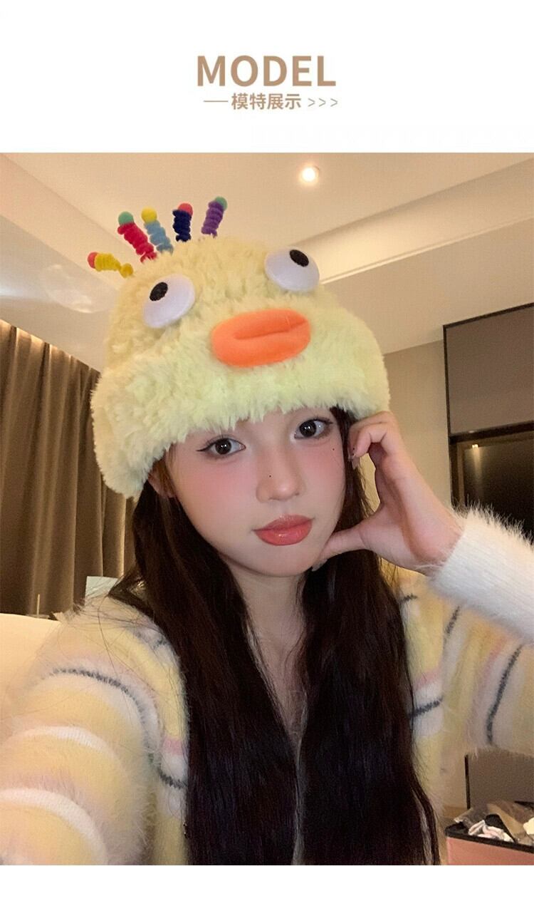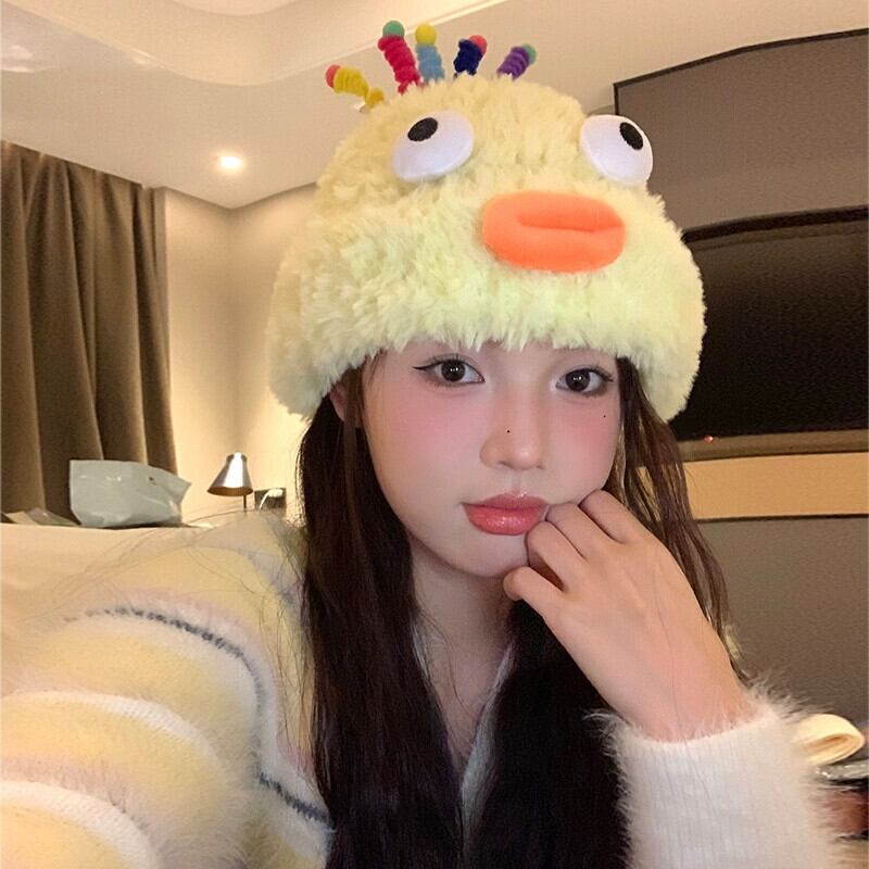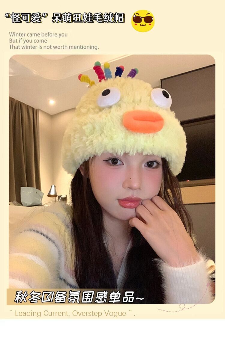 かわいいと面白いぬいぐるみ帽子女性 2023 新しい秋と冬の大きな頭囲暖かいウールニット帽子学生包頭 大人ガーリー スウィート キュート カジュアル オータム 秋物 ウィンター 冬物 15dd11259671546