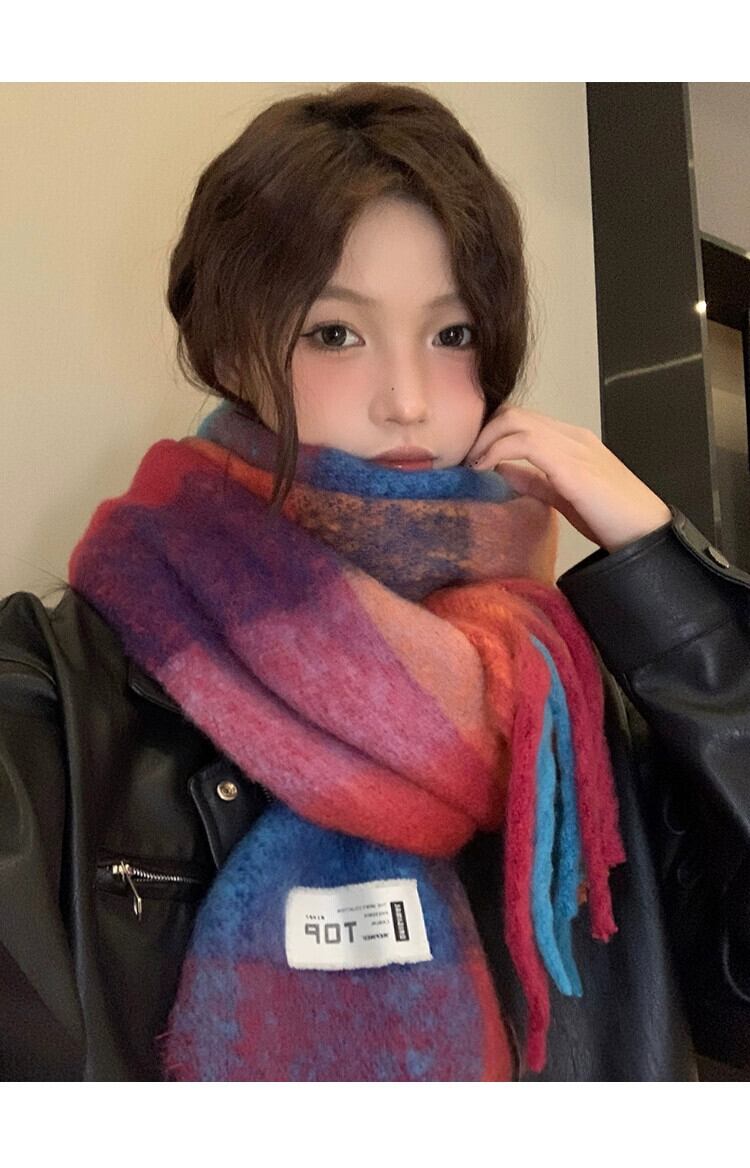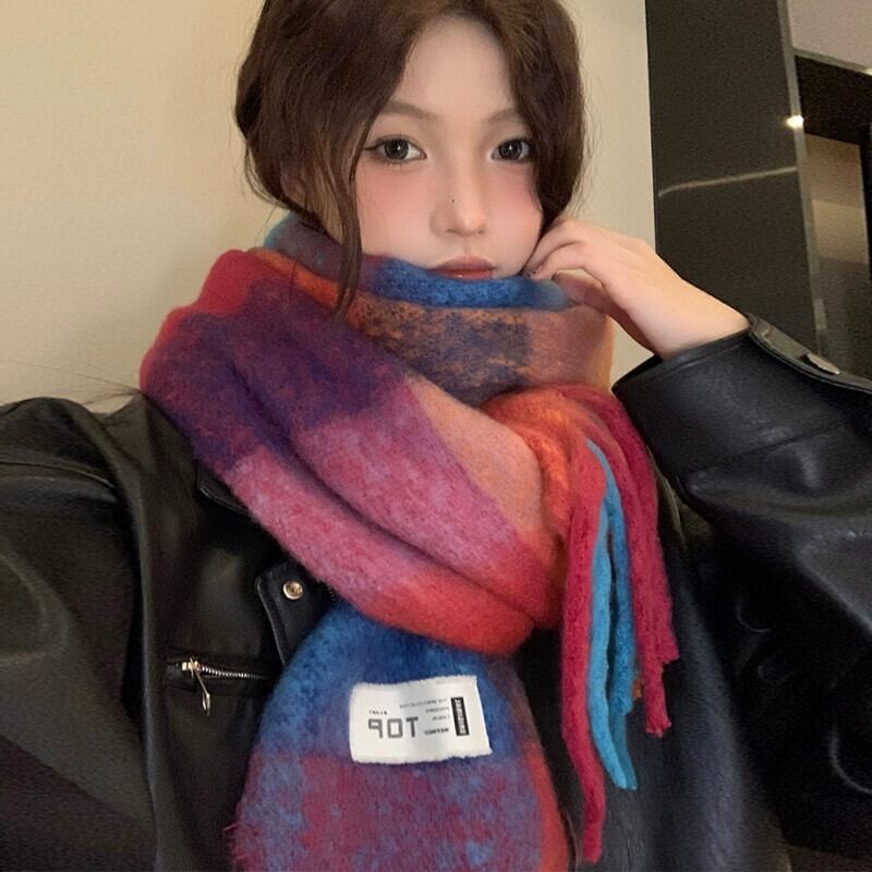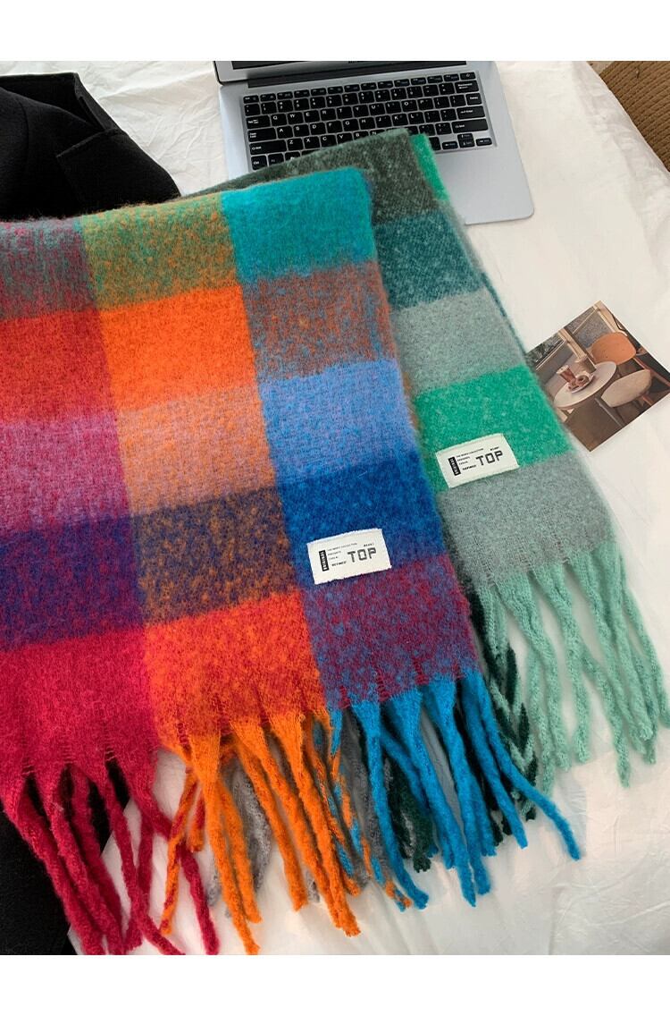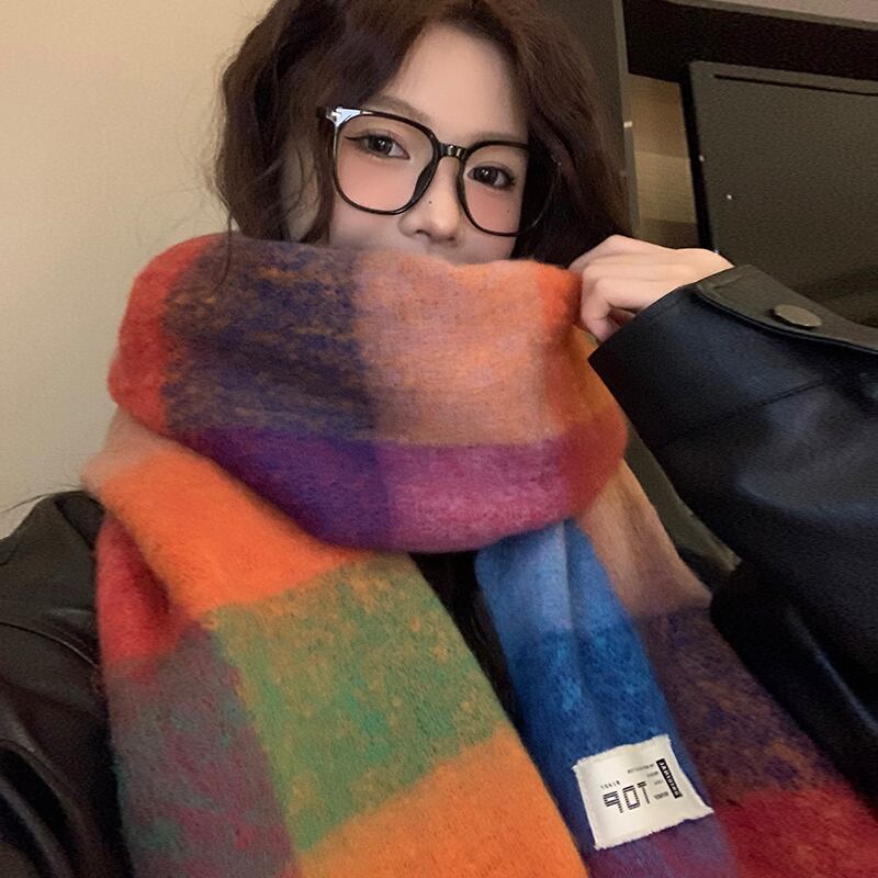 レインボースカーフ女性冬 2023 新しい模造カシミヤインチェック柄多用途ショールデュアルユース肥厚暖かいスカーフ ウィンター 冬物 15dd71121146374