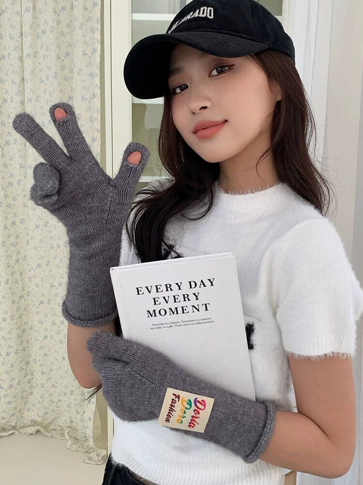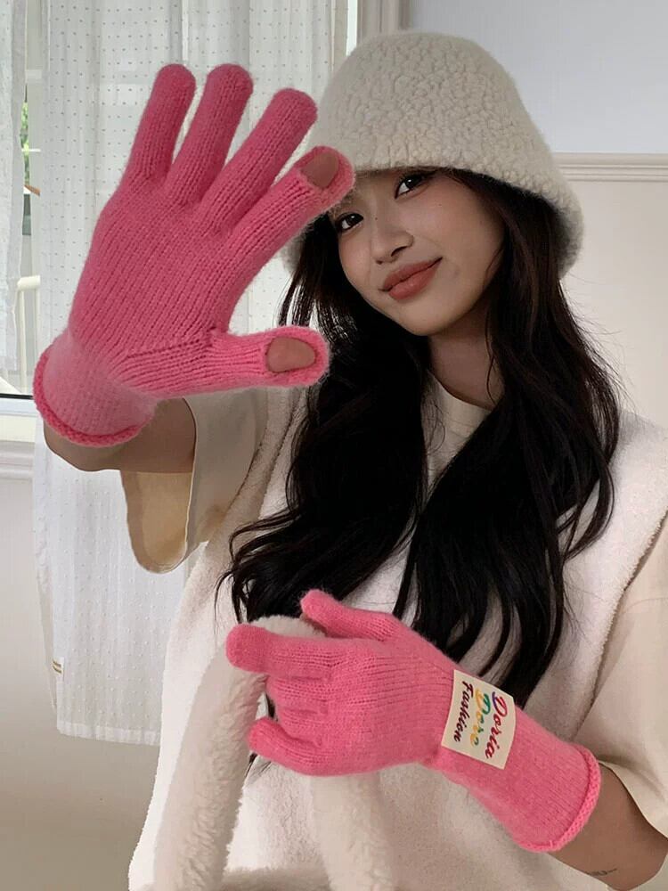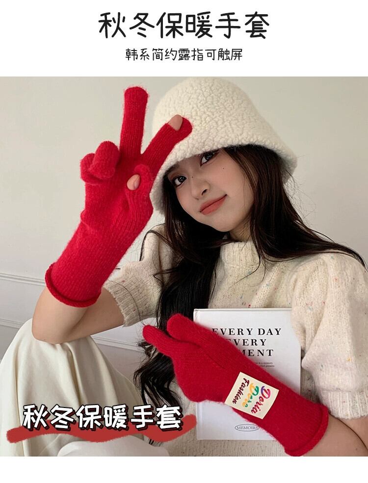 冬の赤い手袋の女性、漏れやすい指とタッチ スクリーンのスプリットフィンガーの防寒サイクリング グローブを備えた暖かいウールの手袋をスタイルします。 レッド ウィンター 冬物 15dd68400048961