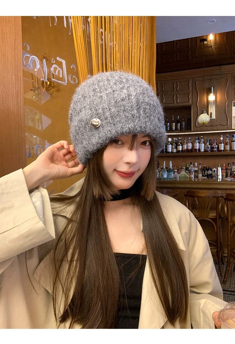 女性の秋冬のウールニット帽子、大きな頭囲、小さな顔、小さな防寒帽子、スタイル多彩な耳保護ニット帽子 オータム 秋物 ウィンター 冬物 15dd12539688041