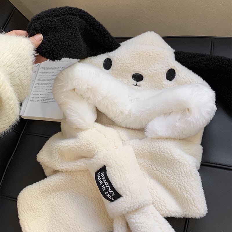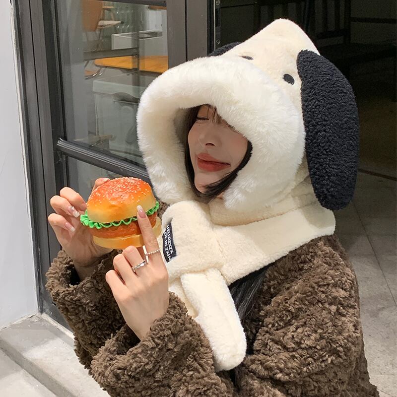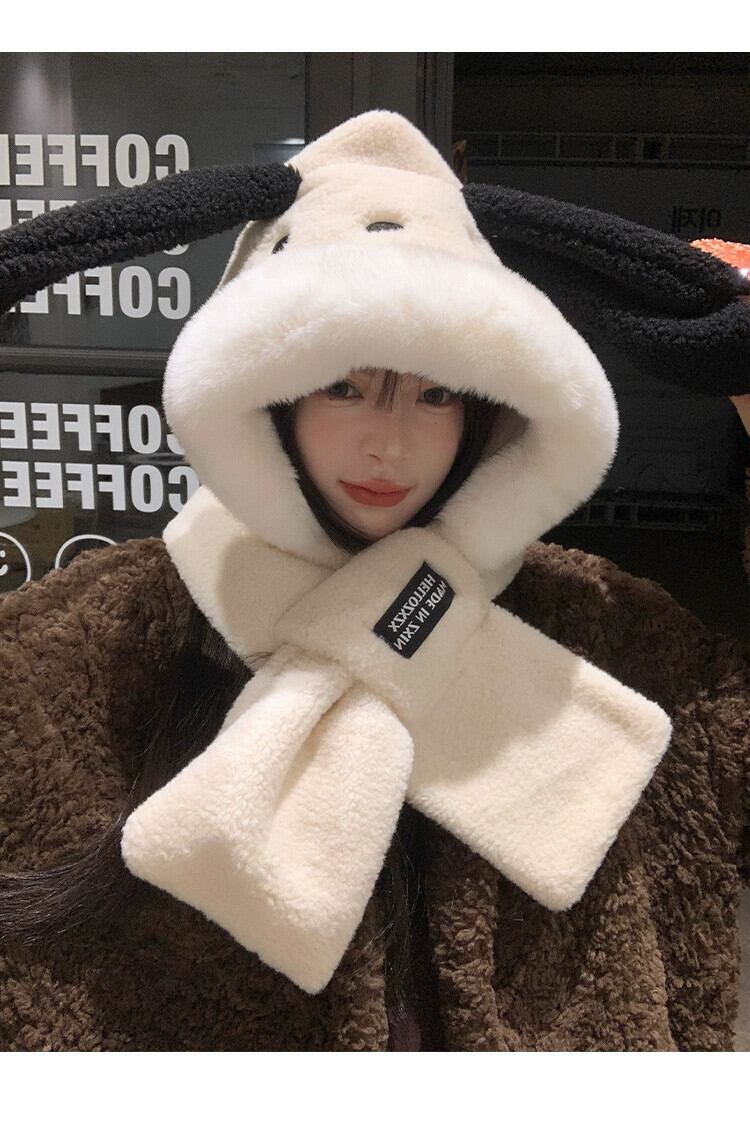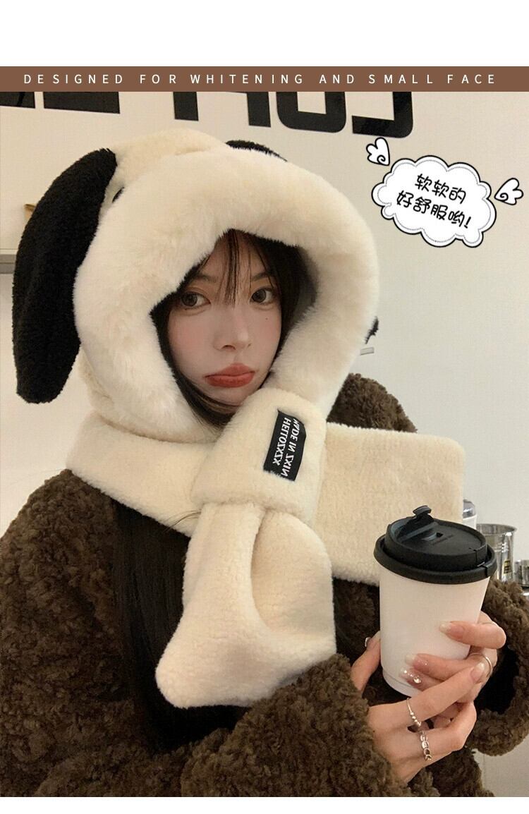 漫画子犬ぬいぐるみ暖かい耳保護雷峰帽子女性冬プラスベルベットスカーフワンピース帽子 2 点セットサイクリング ウィンター 冬物 15dd96458920518