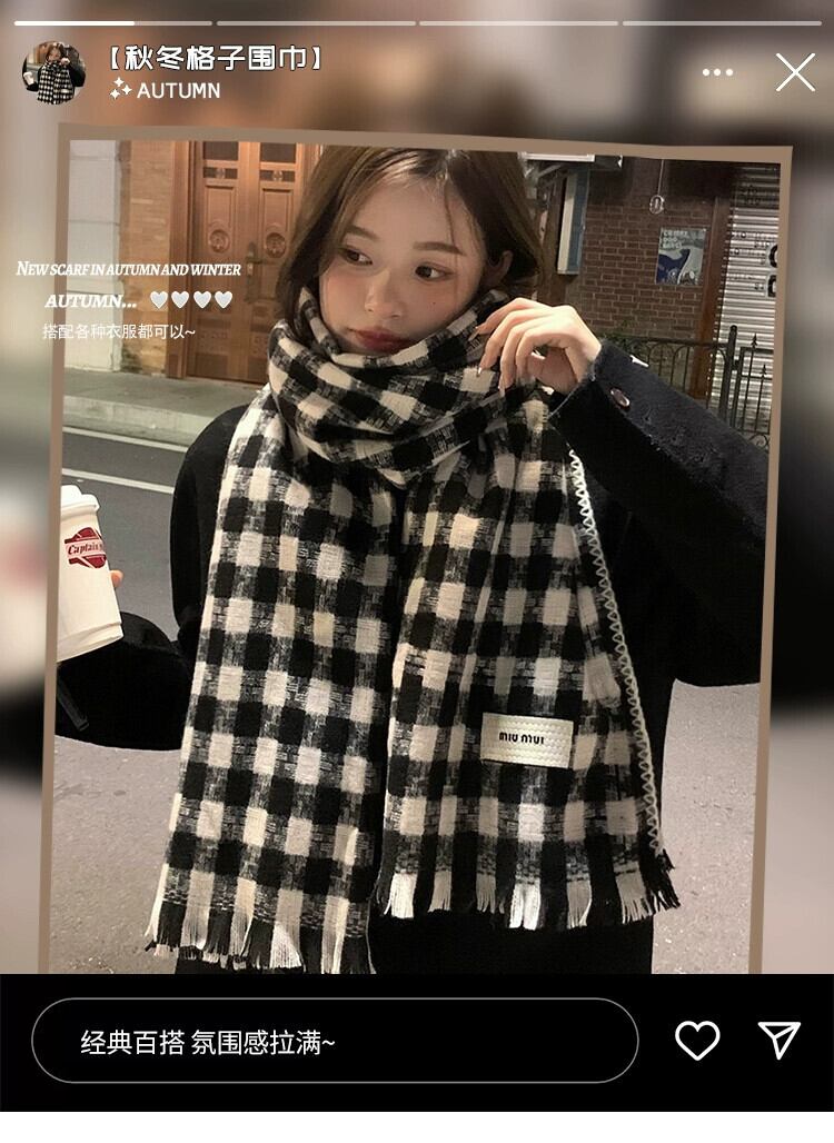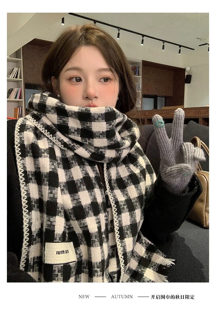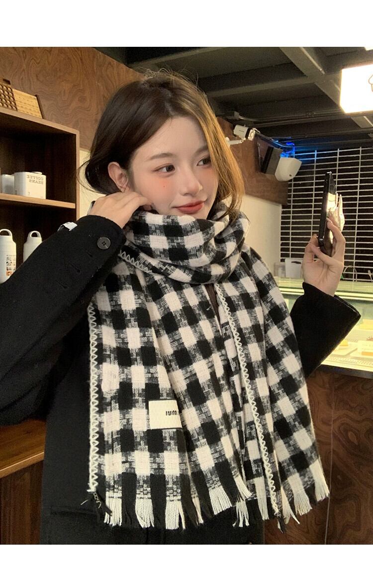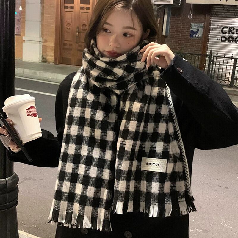 冬の千鳥格子スカーフレディース、スタイルアウターショール、デュアルパーパススカーフカップル、暖かいイミテーションカシミアスカーフ、トレンディ ウィンター 冬物 15dd11112526046