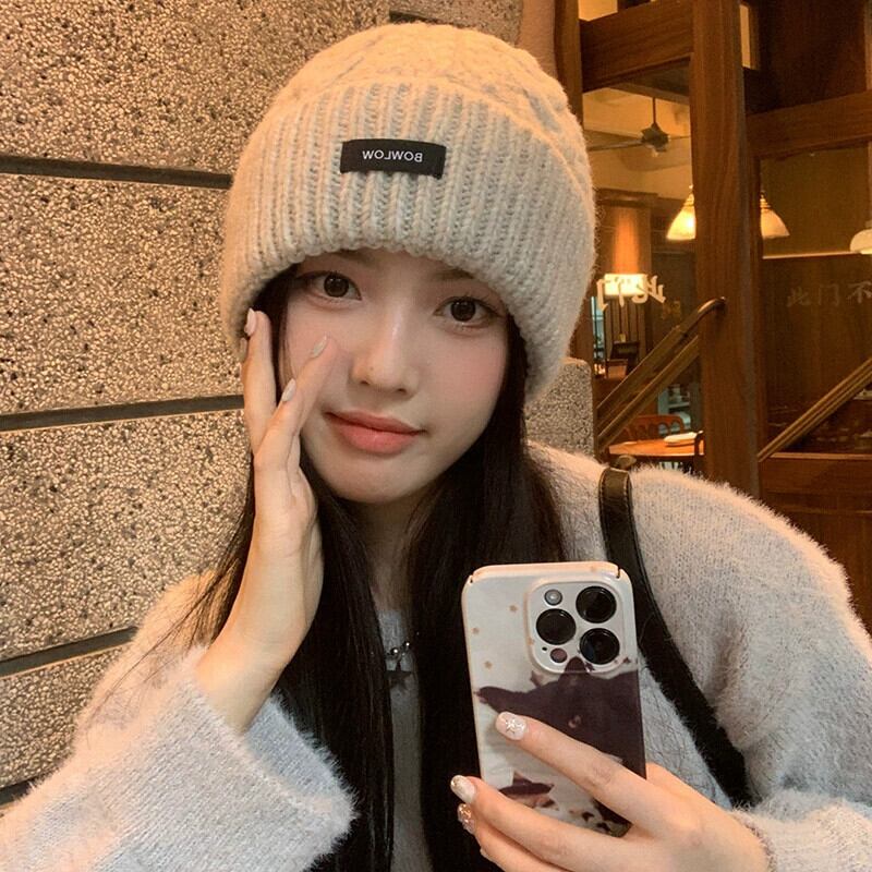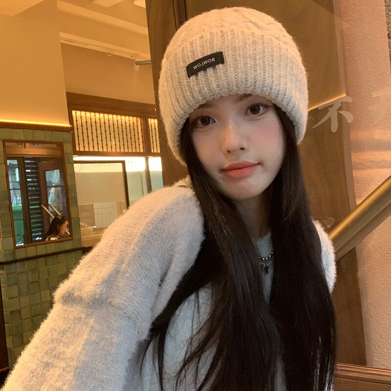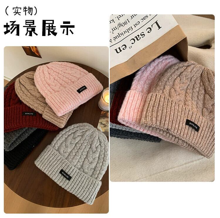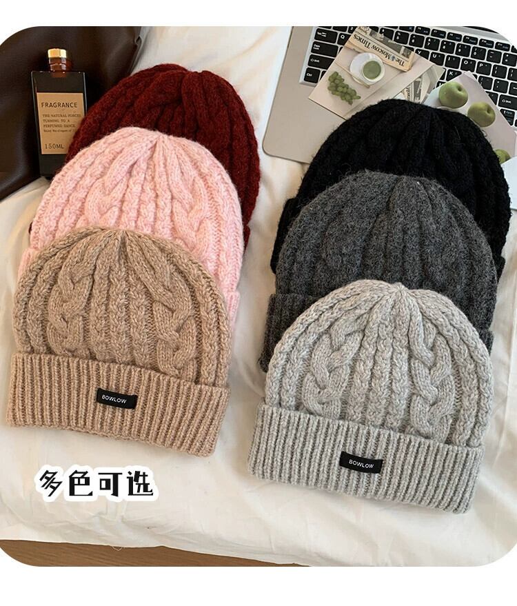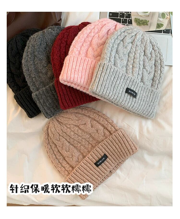 無地ウールの帽子の女性 2023 新しい冬暖かいニット大きな頭囲顔小さなプルオーバー帽子秋と冬 オータム 秋物 ウィンター 冬物 ソリッドカラー 15dd49832993244