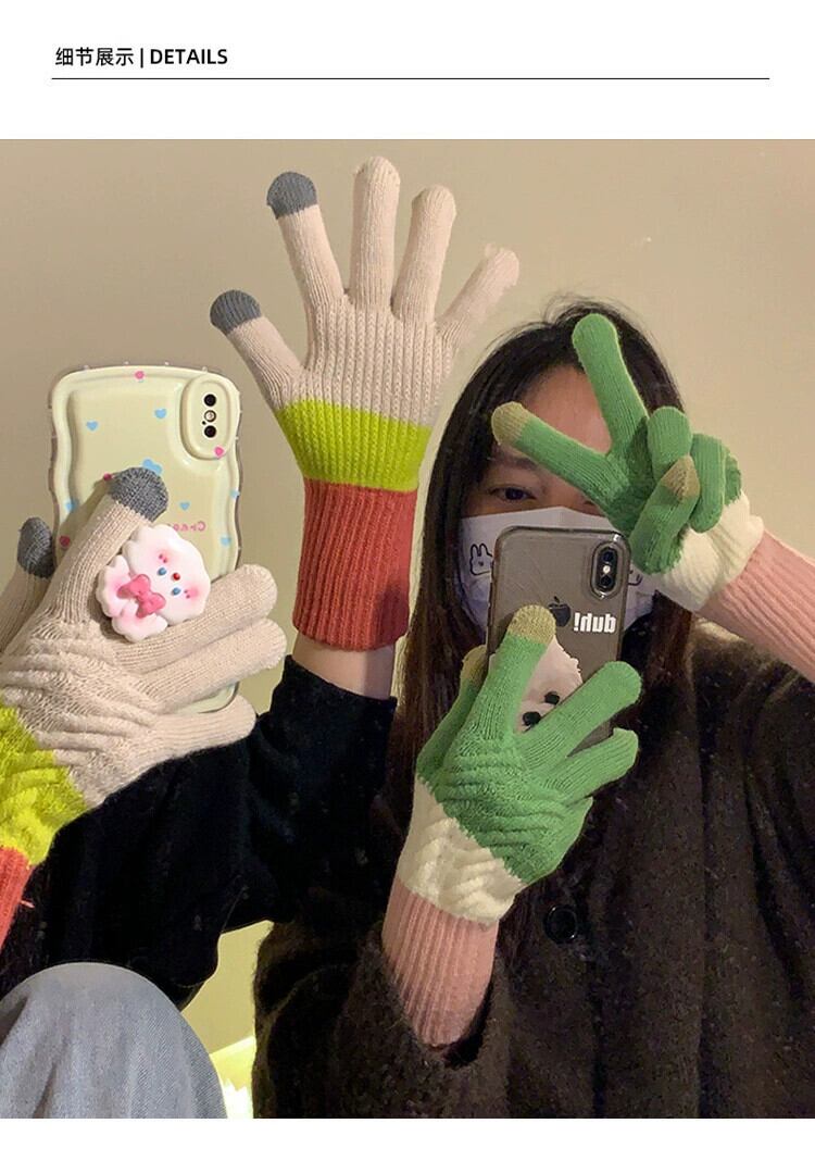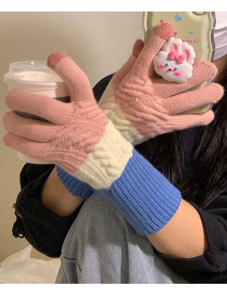 かわいいウールニット綿ウールロング手袋女性冬 2023 学生サイクリング肥厚暖かい防寒手袋 コットン 大人ガーリー スウィート キュート カジュアル ウィンター 冬物 15dd86409810968