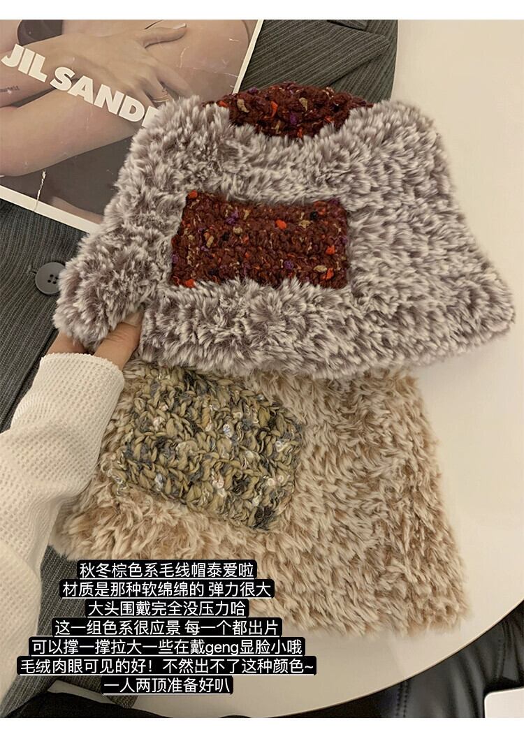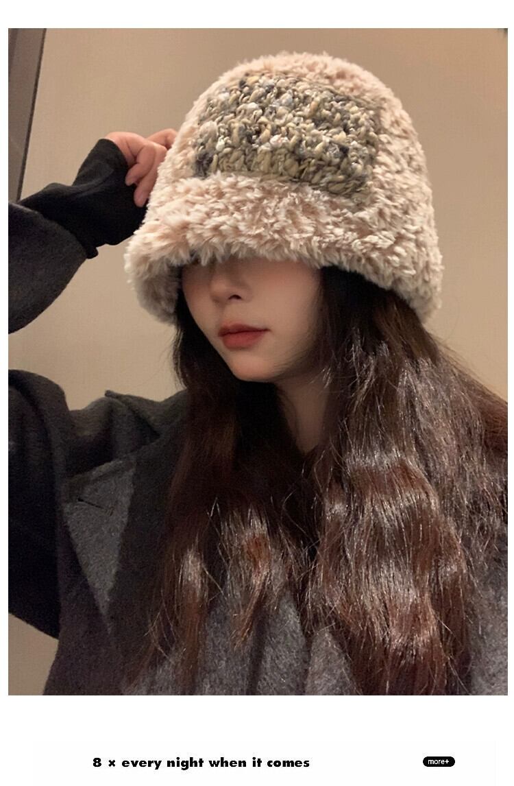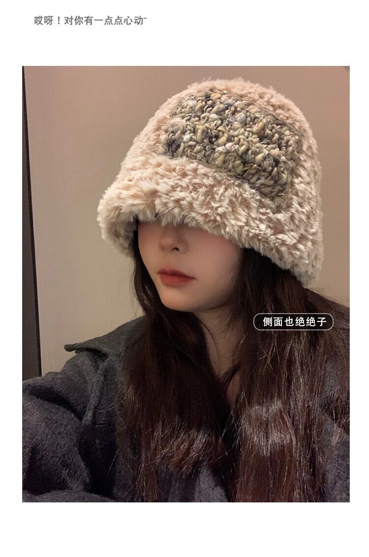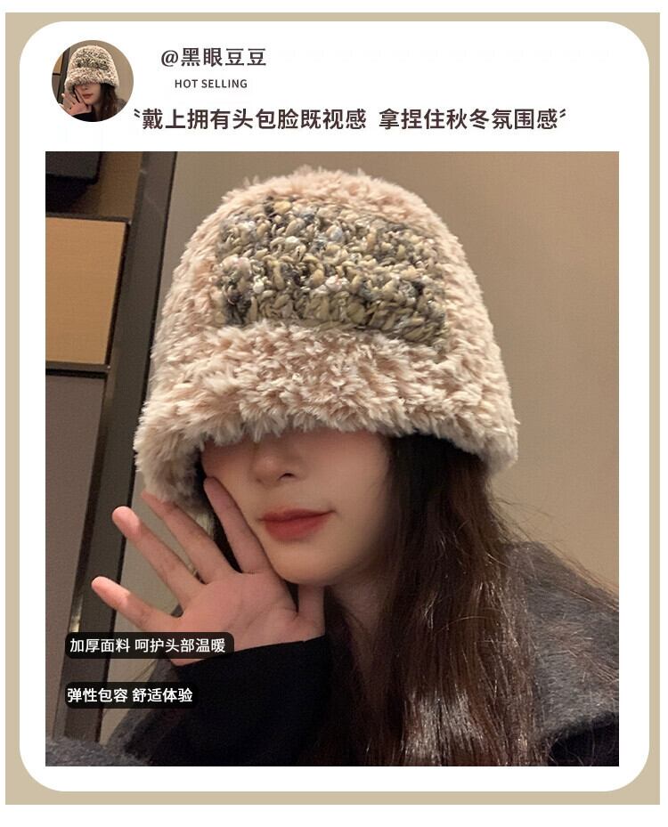 2023 毛皮のような漁師の帽子の女性の秋と冬暖かいベルベットの厚みのある耳保護多用途ニット帽子、大きな頭囲 オータム 秋物 ウィンター 冬物 15dd93728525221
