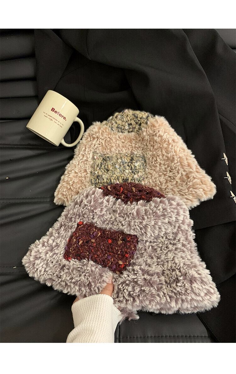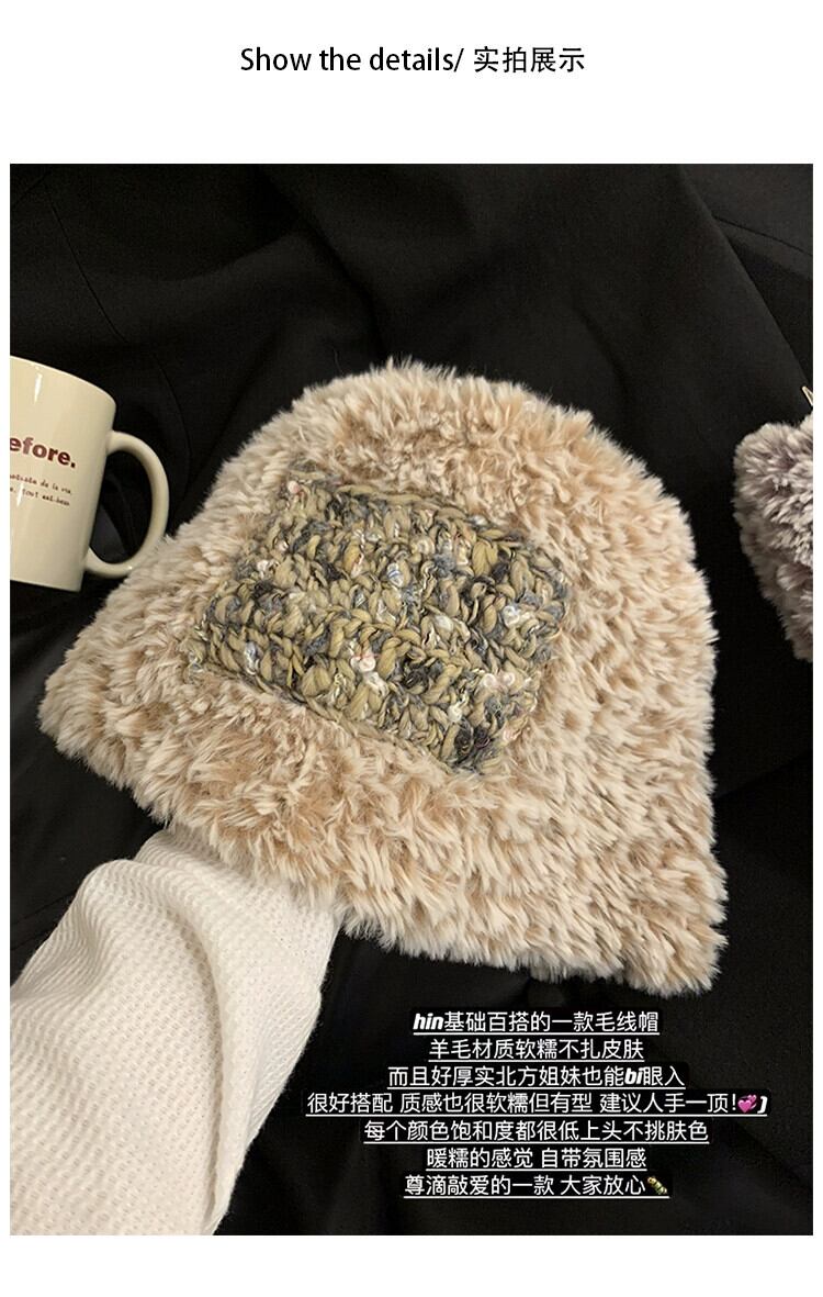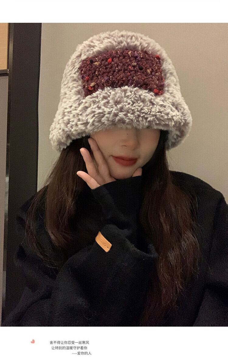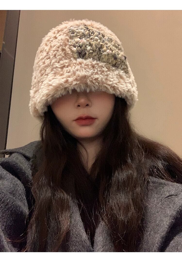 2023 毛皮のような漁師の帽子の女性の秋と冬暖かいベルベットの厚みのある耳保護多用途ニット帽子、大きな頭囲 オータム 秋物 ウィンター 冬物 15dd93728525221