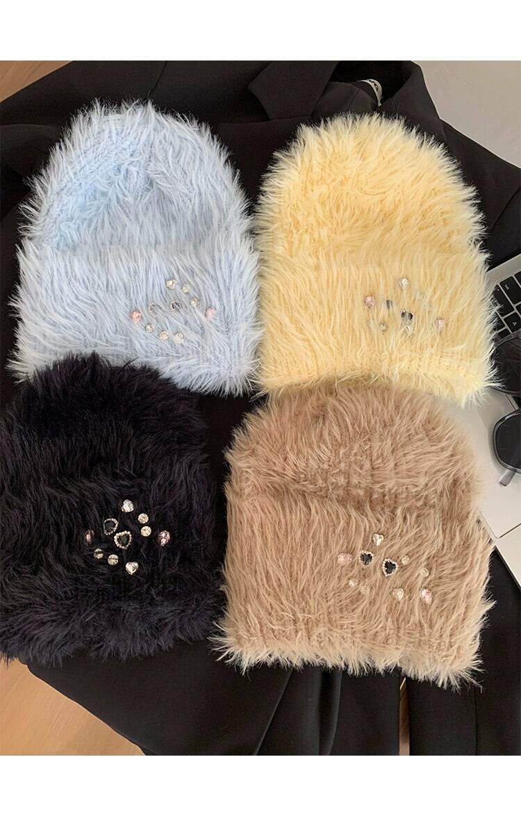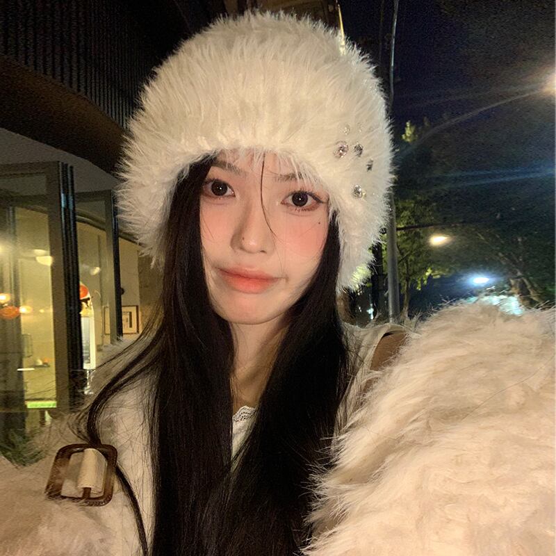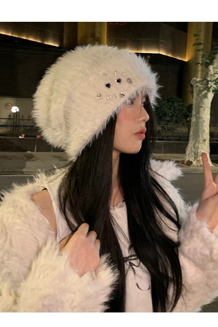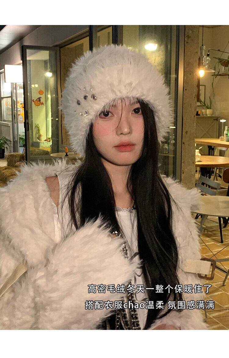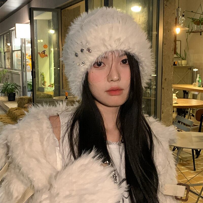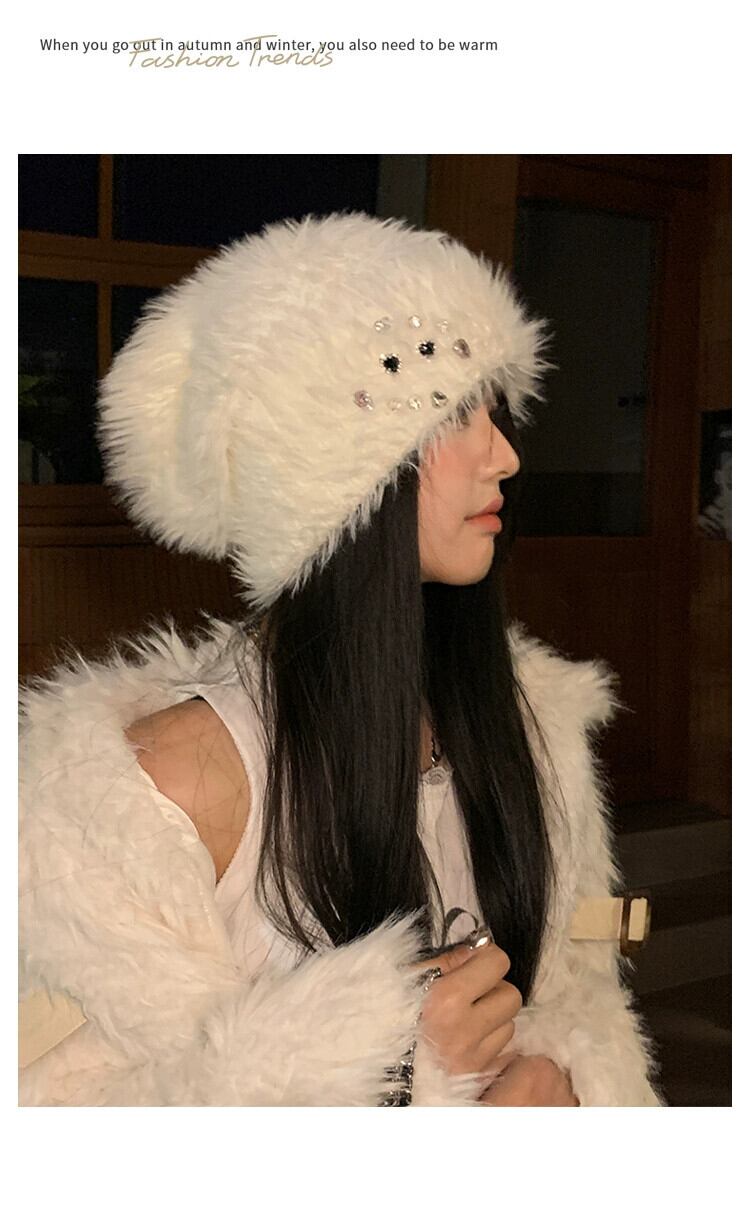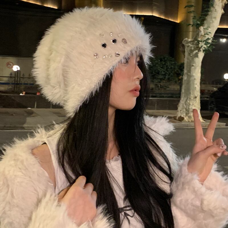 冬用ラインストーンプラッシュトゥキャップレディース、厚くて暖かい、多用途の耳保護帽子、大きな頭囲、高度なウールニット帽子 ウィンター 冬物 15dd56914557812