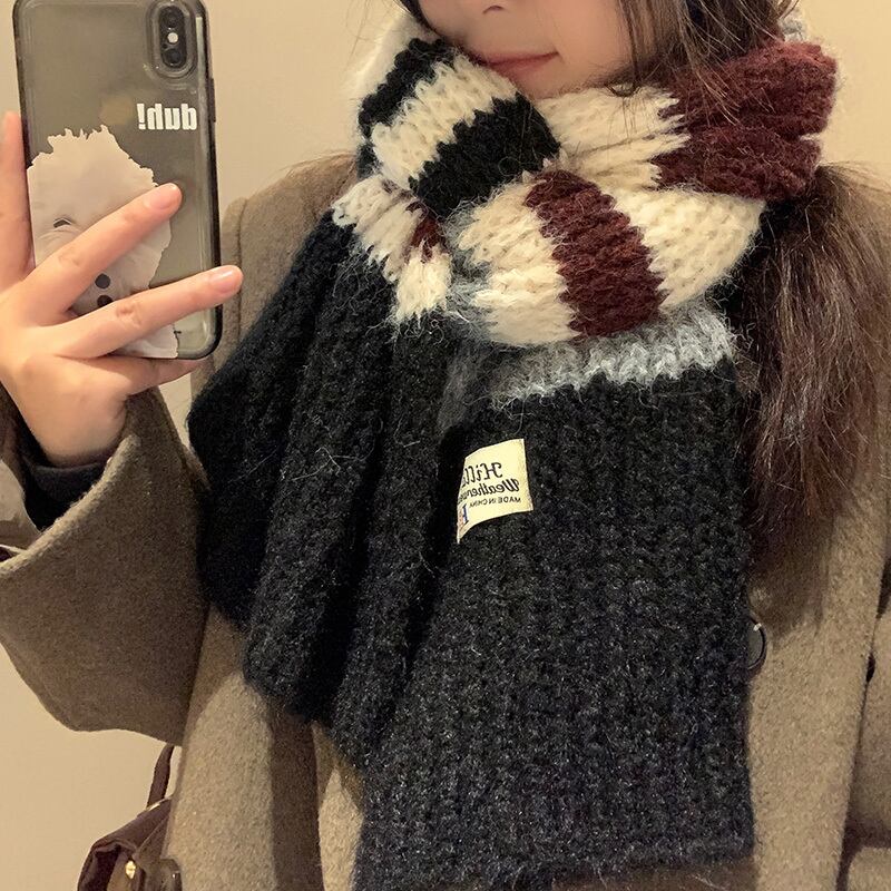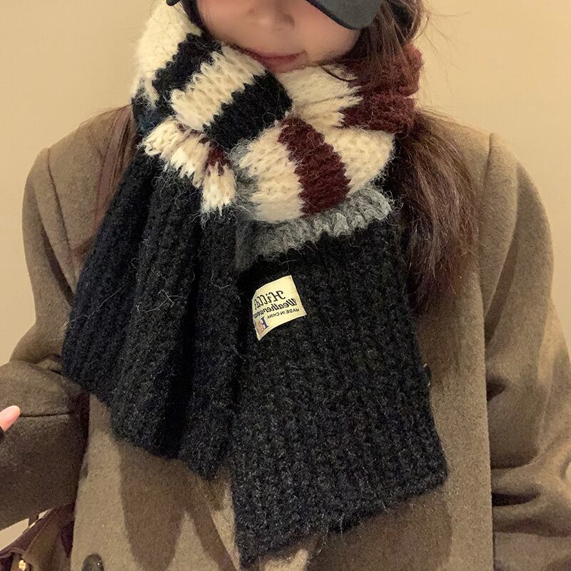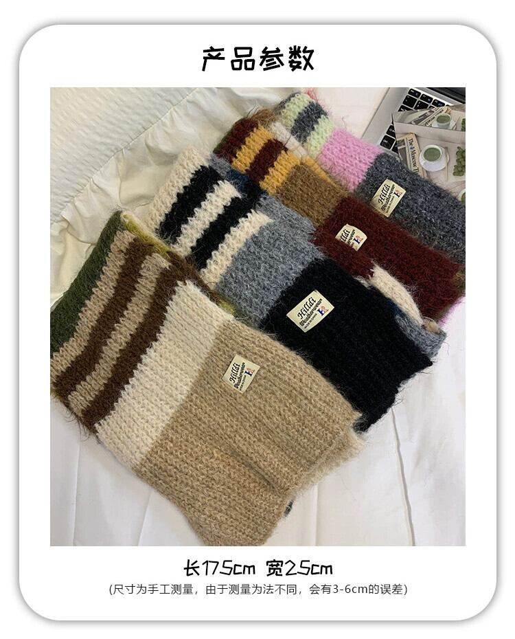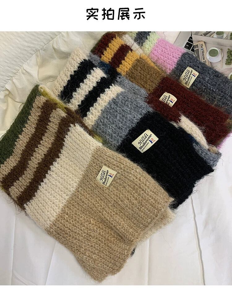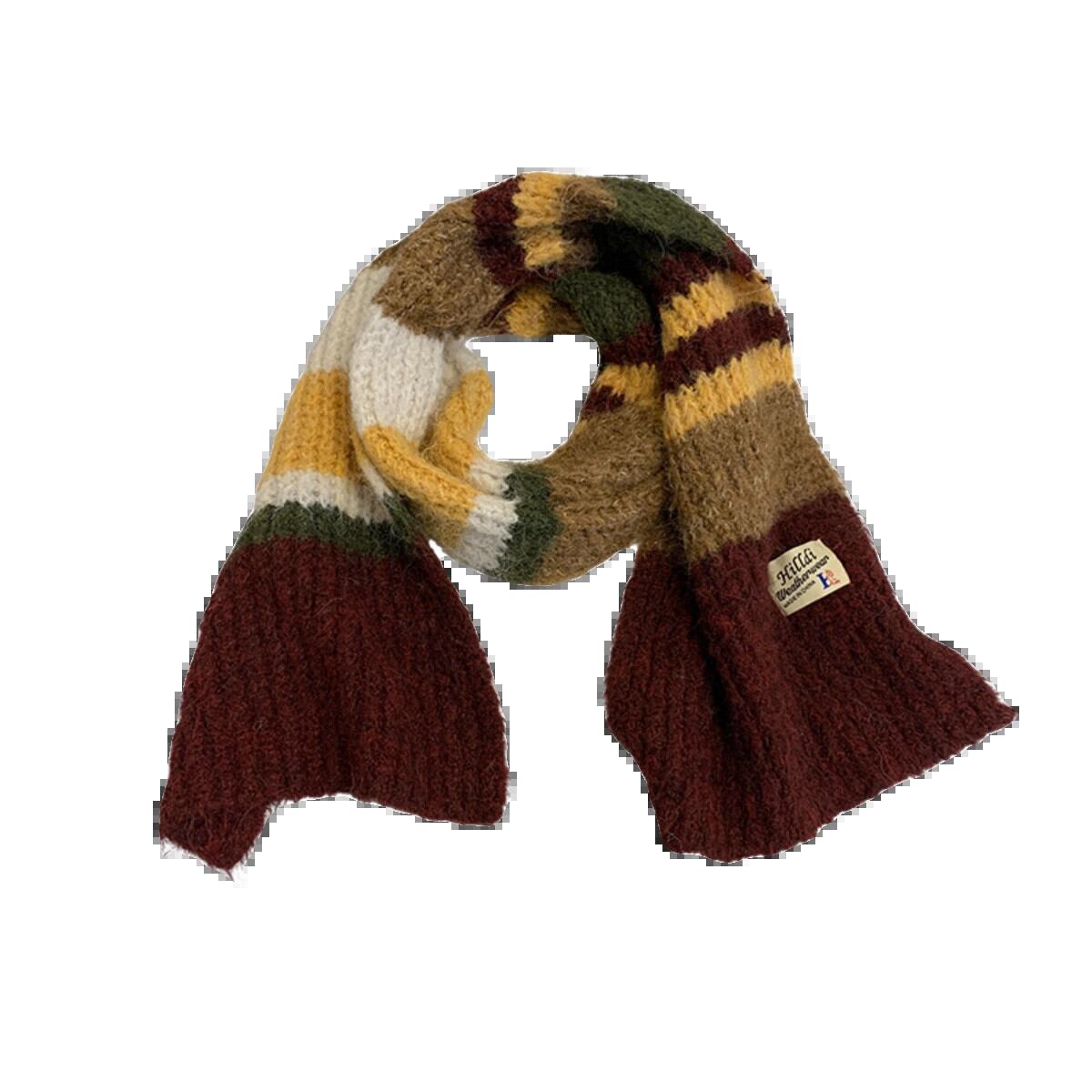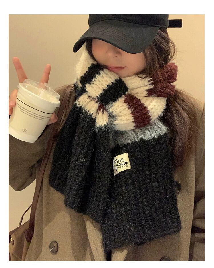 メイラードレトロコントラストカラーストライプスカーフ女性の冬 2023 ese 多用途厚く暖かいニットスカーフ ウィンター 冬物 15dd68552379779