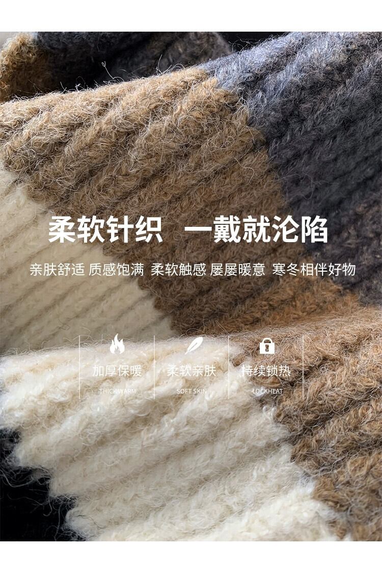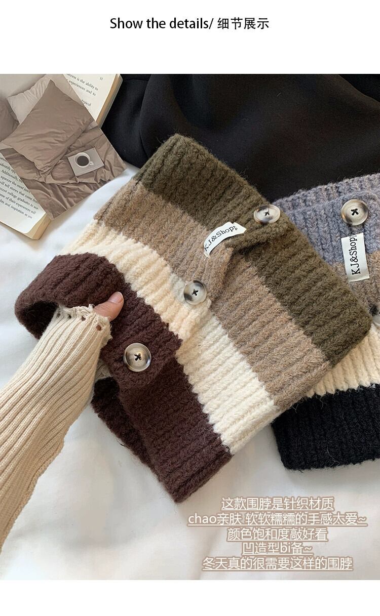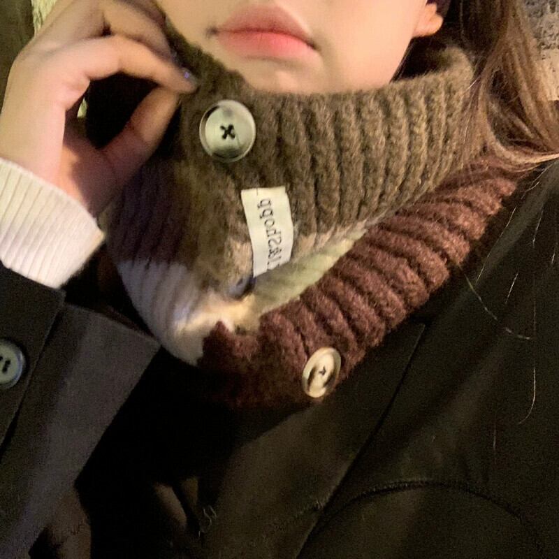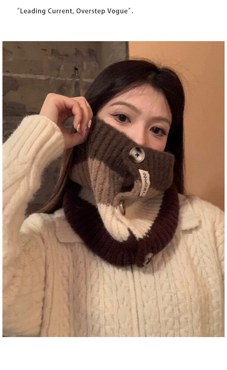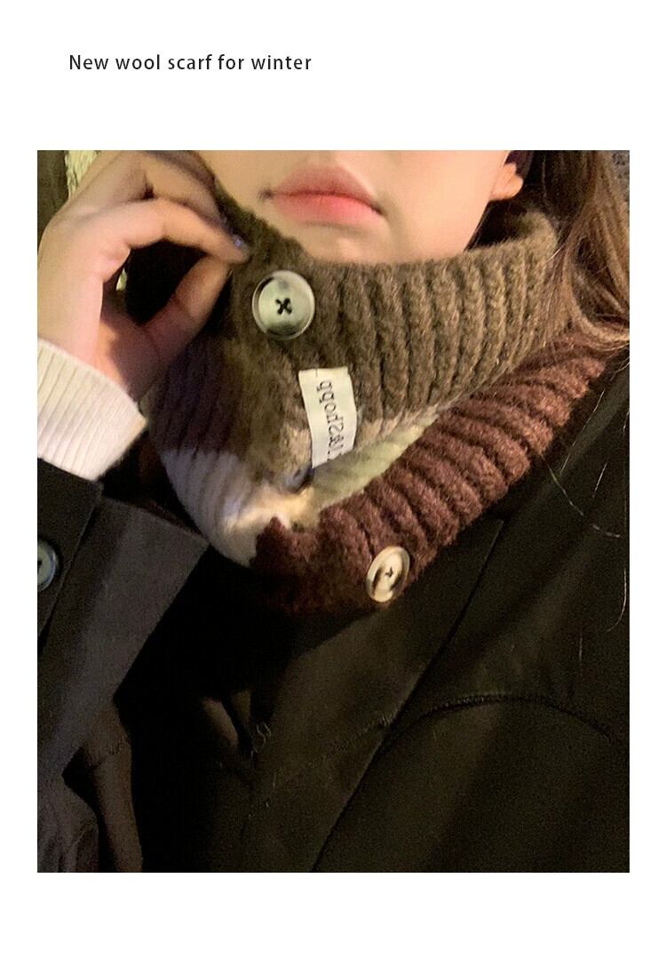 秋冬のオールマッチニットハイネックスカーフウールスカーフレディース、コントラストカラーのステッチでメイラードの暖かな雰囲気を保ちます。 オータム 秋物 ウィンター 冬物 15dd11304249645