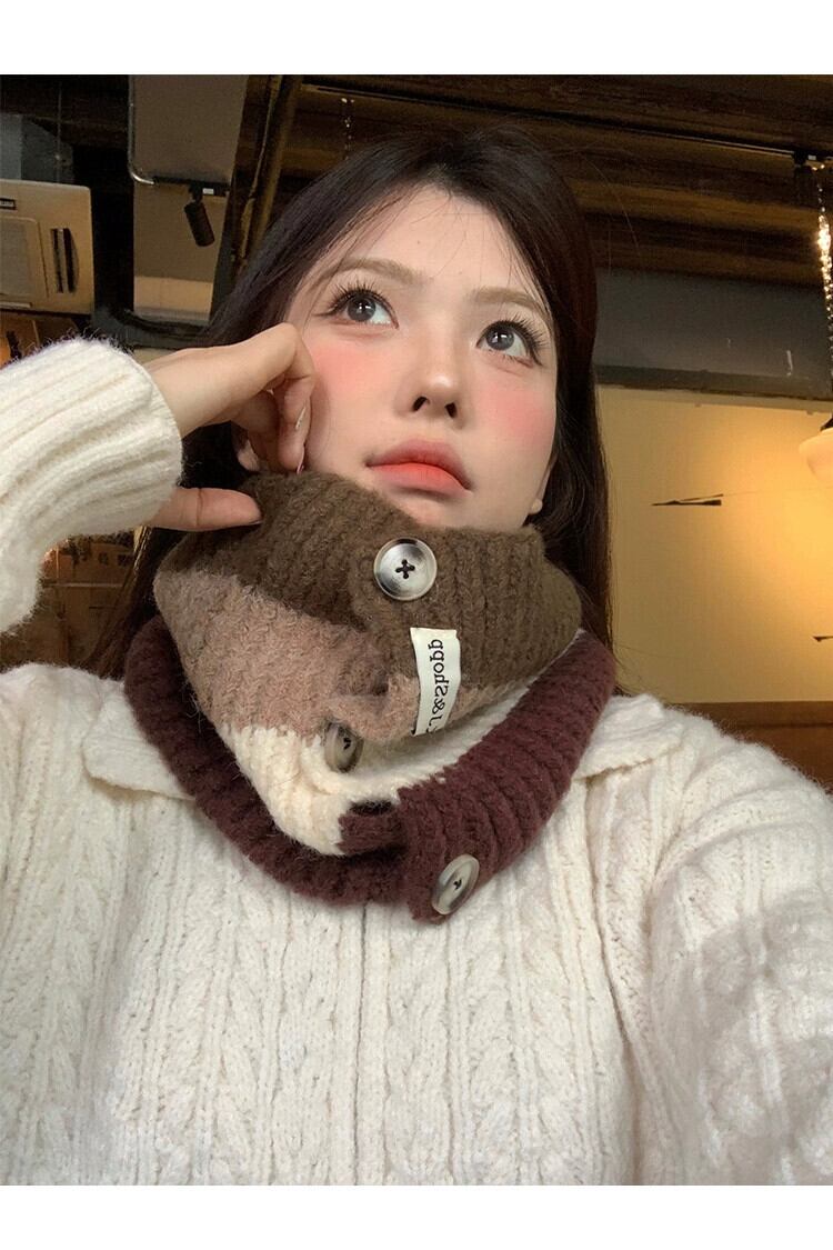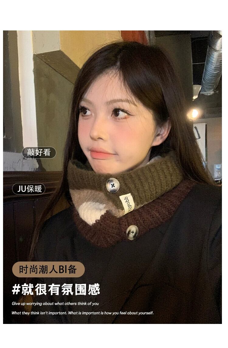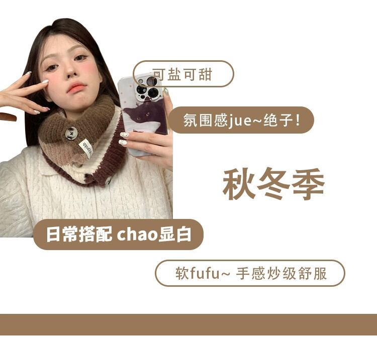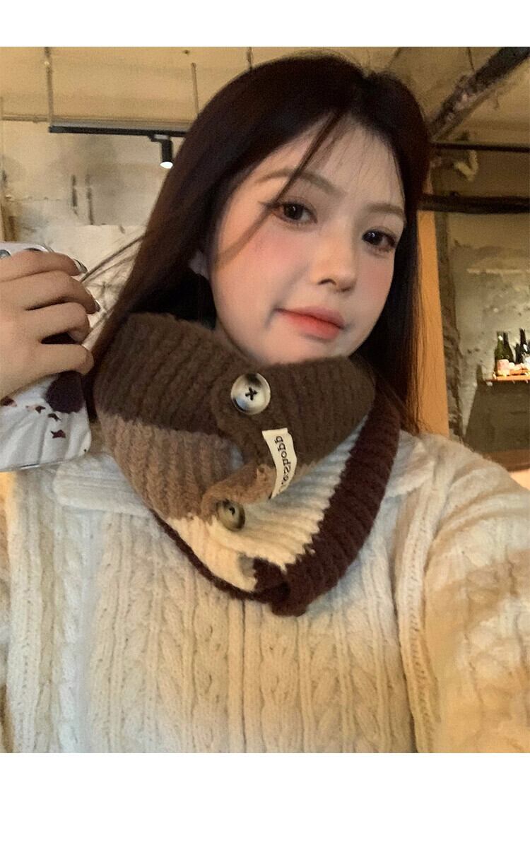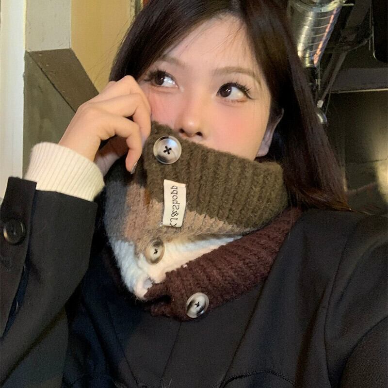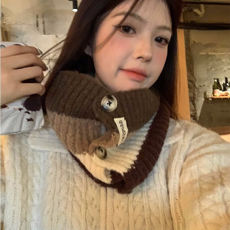 秋冬のオールマッチニットハイネックスカーフウールスカーフレディース、コントラストカラーのステッチでメイラードの暖かな雰囲気を保ちます。 オータム 秋物 ウィンター 冬物 15dd11304249645