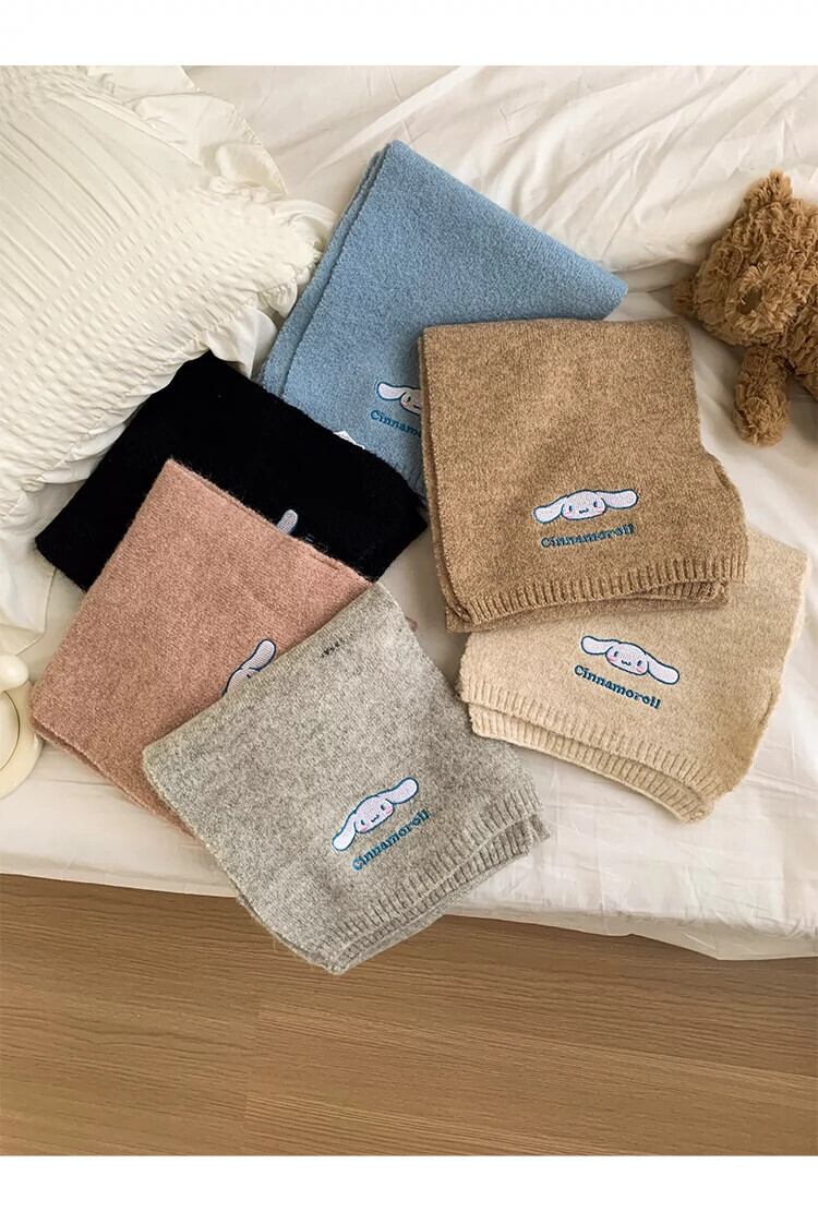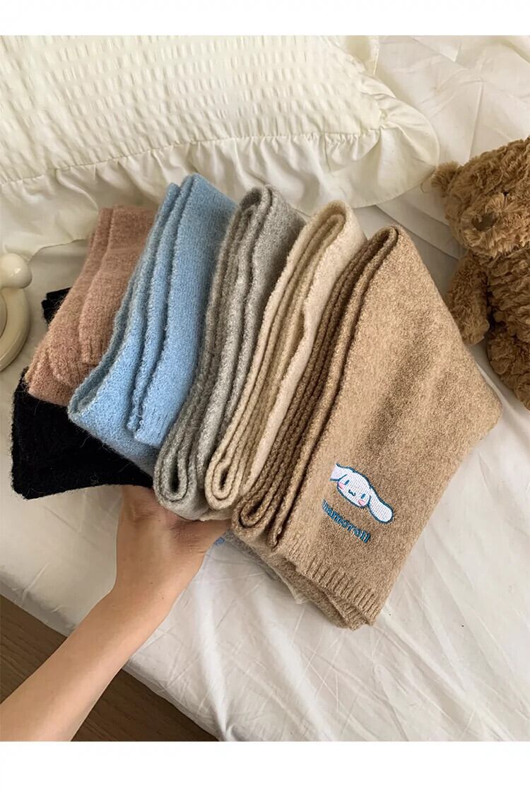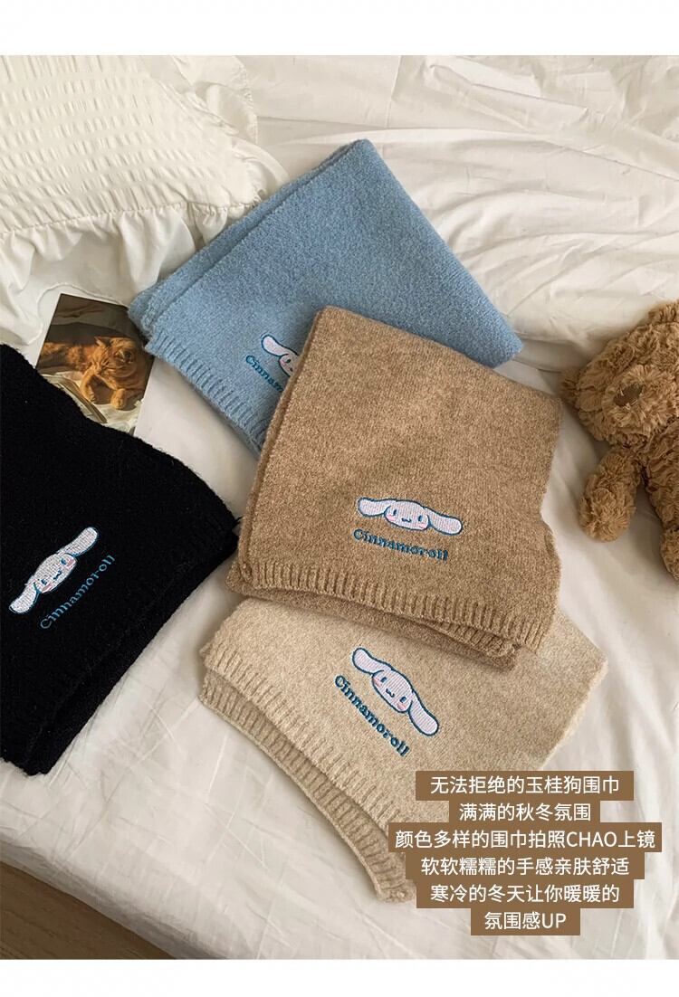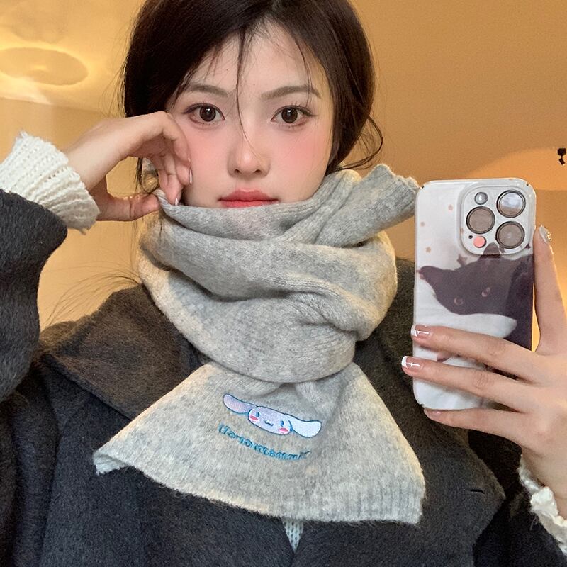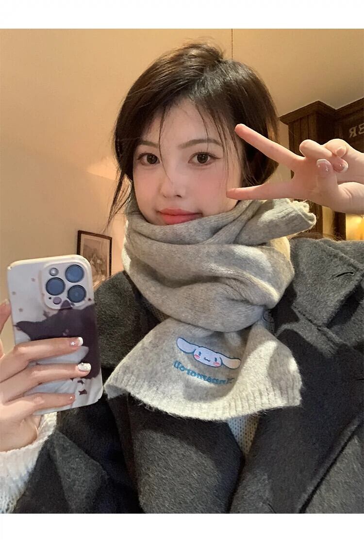 サンリオジェイド犬ニットウールスカーフ女性の冬スタイルかわいい暖かいプラスベルベット厚みのある防風と防寒スカーフ 大人ガーリー スウィート キュート カジュアル ウィンター 冬物 ジェード 翡翠 ヒスイ 15dd56997612662