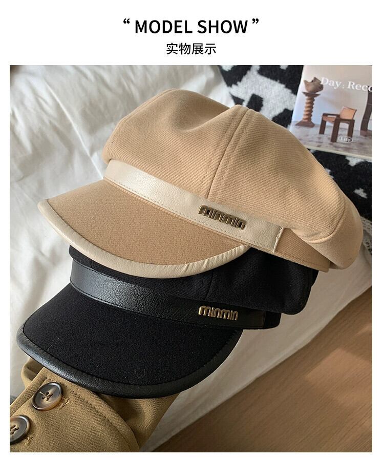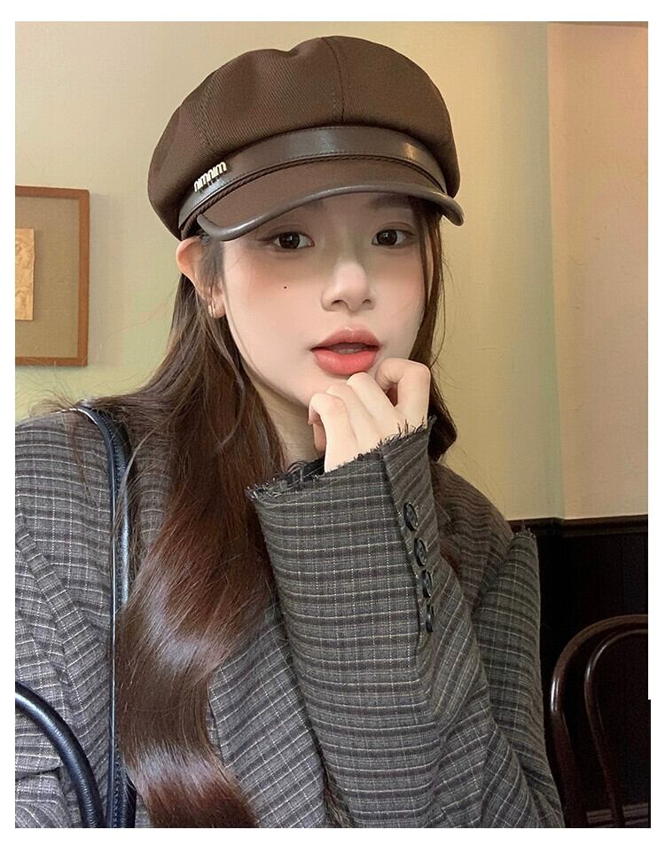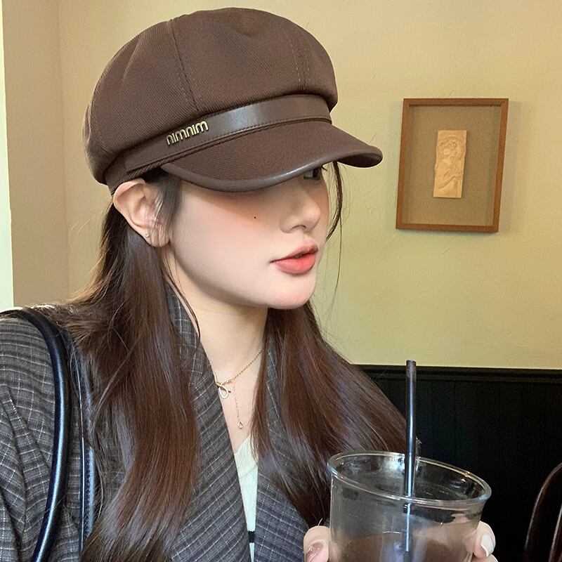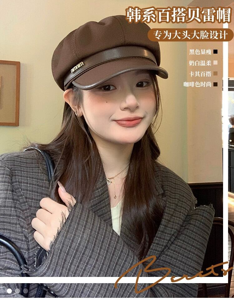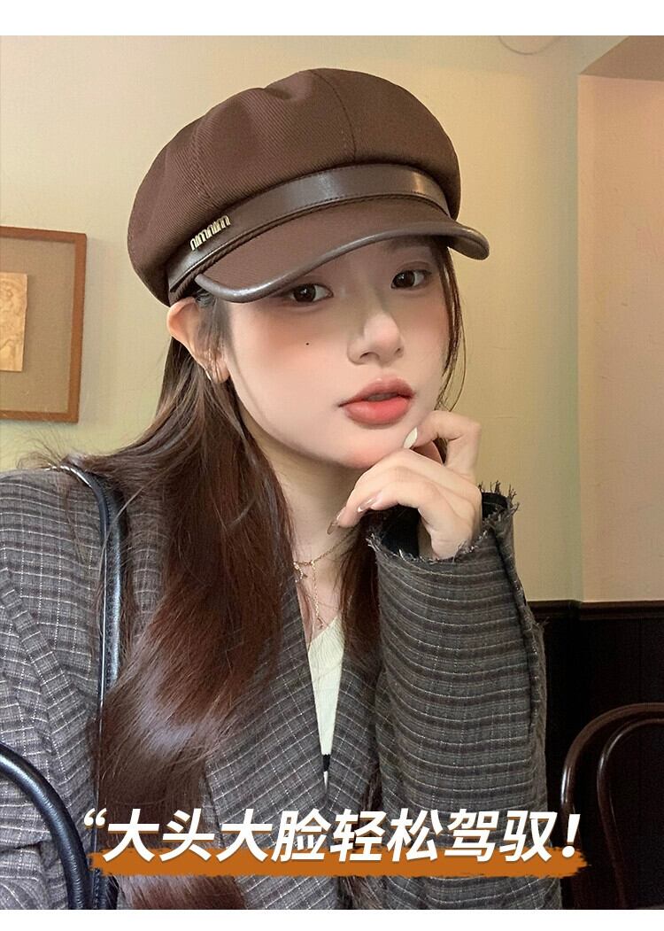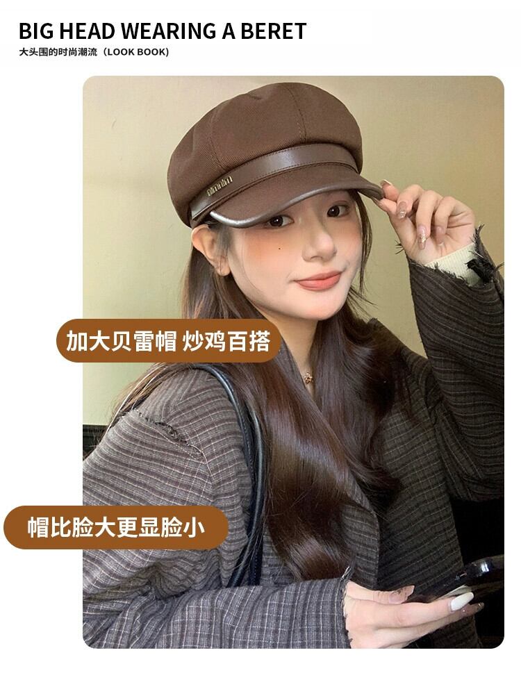 ビッグヘッドベレー帽女性の秋冬 2023 新しいカジュアルレトロな顔見せリトルペインター帽子多用途クラウド八角形帽子 オータム 秋物 ウィンター 冬物 ベレット ヘアアクセサリー 15dd97997762710