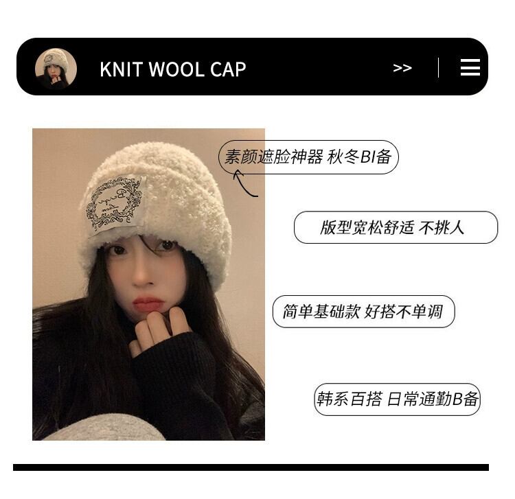 女性の新しい冬のウールの帽子、防寒帽子、小顔、バージョン、多用途、厚く、暖かい、耳を保護する、頭囲の大きいニット帽 ウィンター 冬物 15dd31417697430