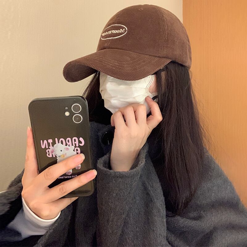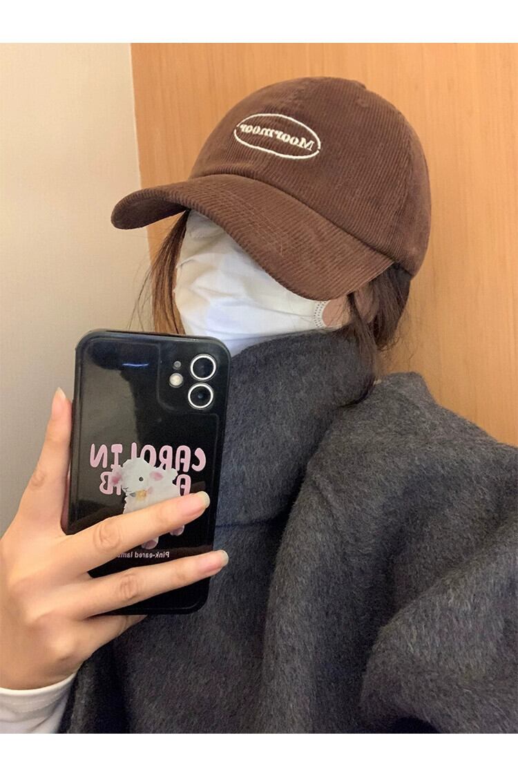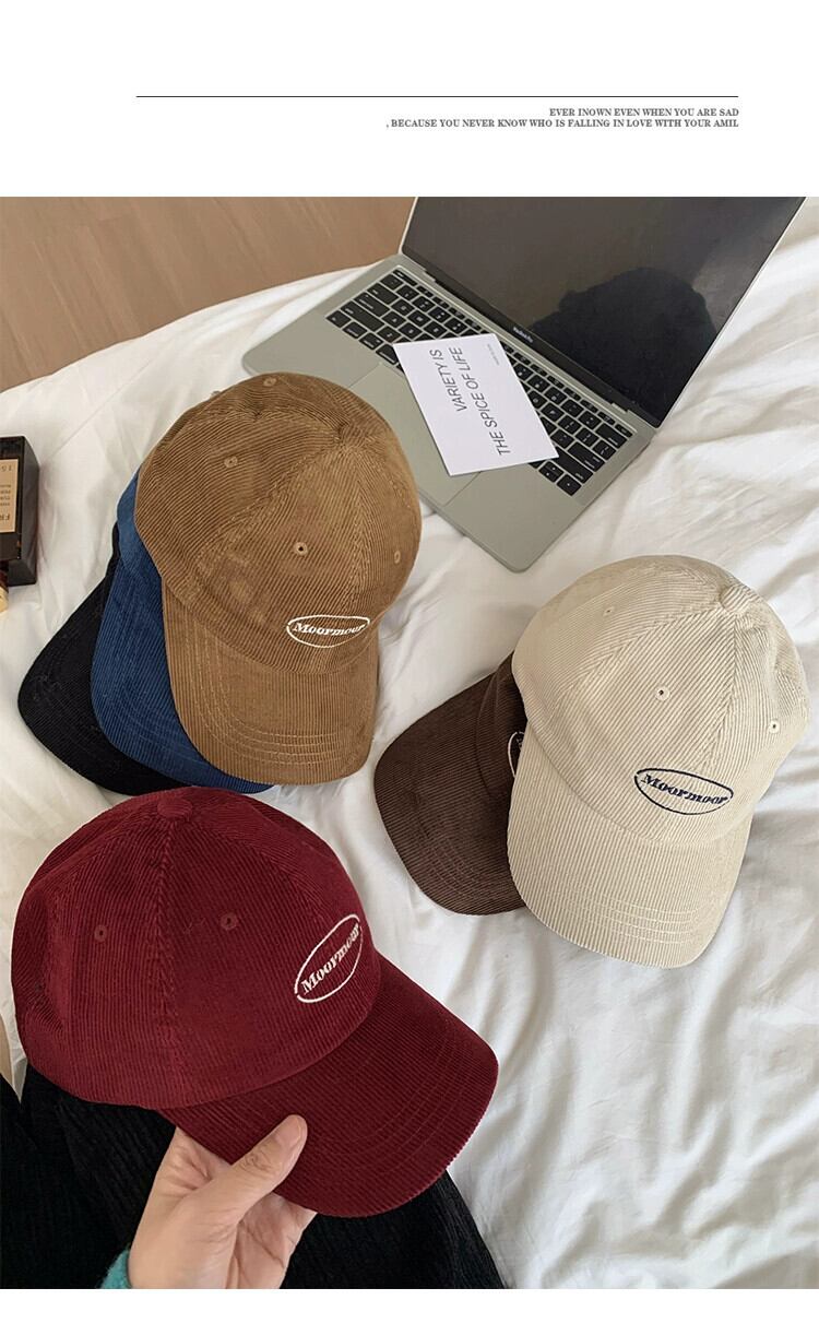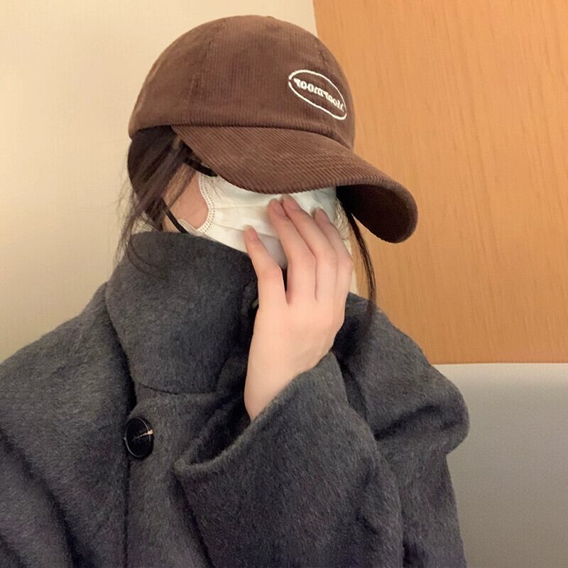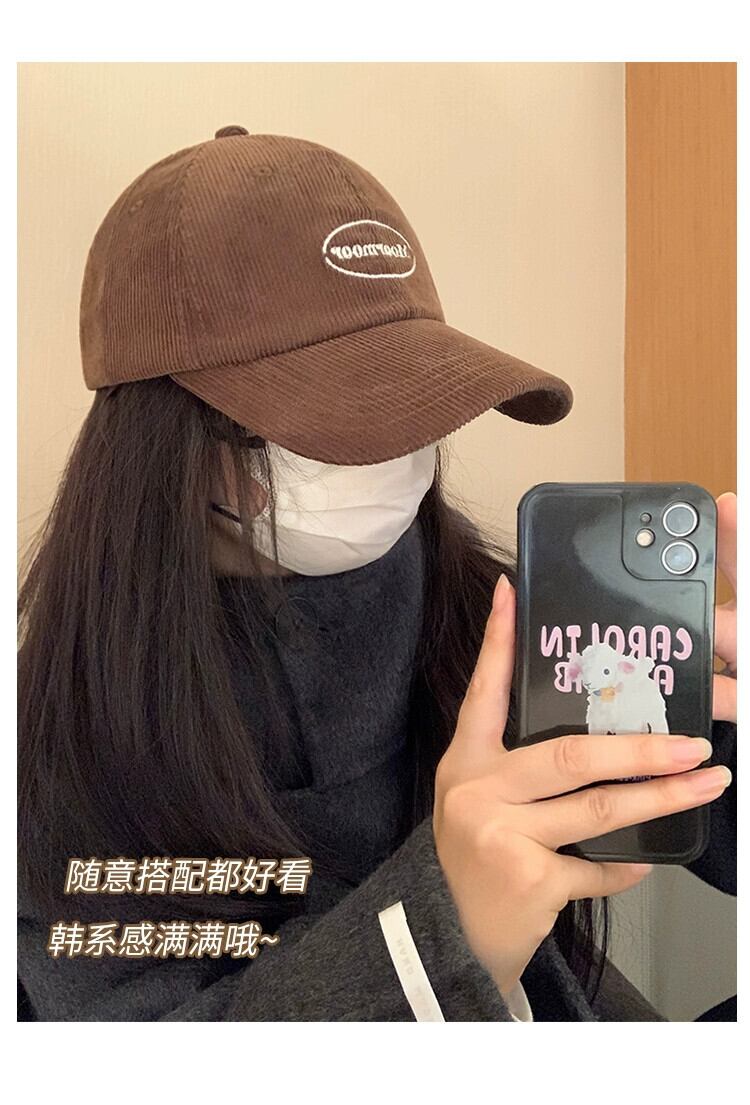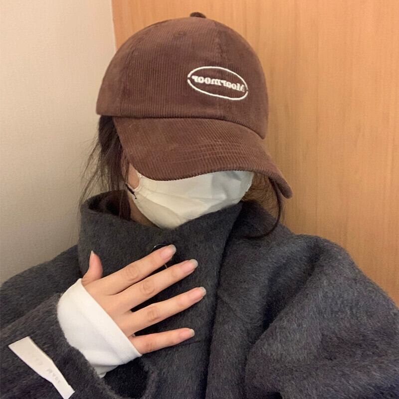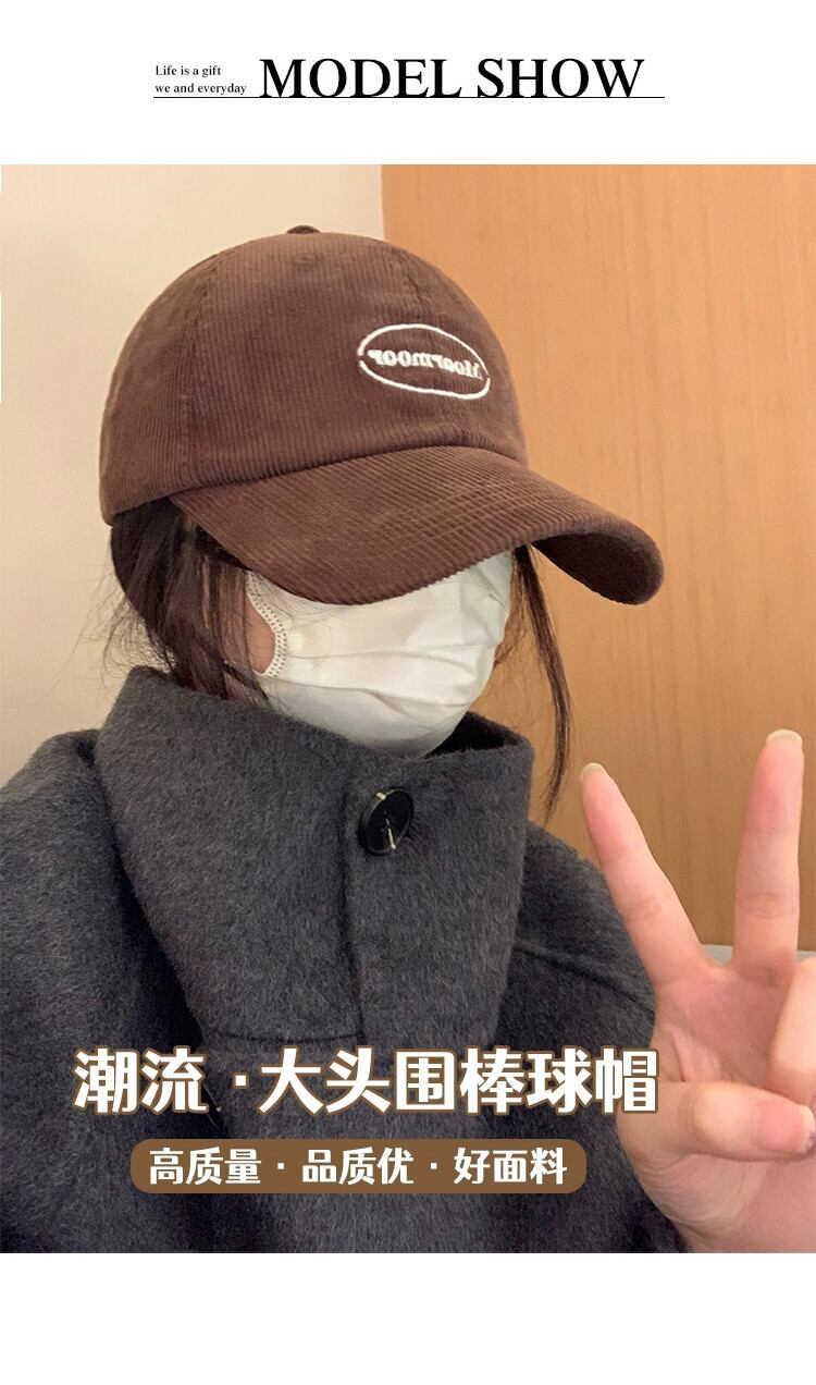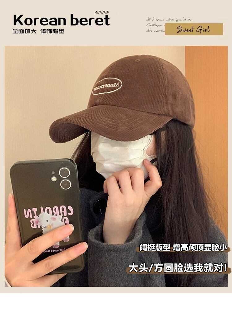 秋冬コーデュロイ文字刺繍ベースボールキャップレディース、ストリートファッション、汎用性の高いつば広ピークドキャップメンズ、バージョン、小顔 レッド オータム 秋物 ウィンター 冬物 15dd44170019156