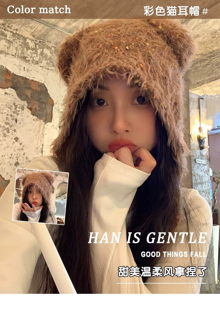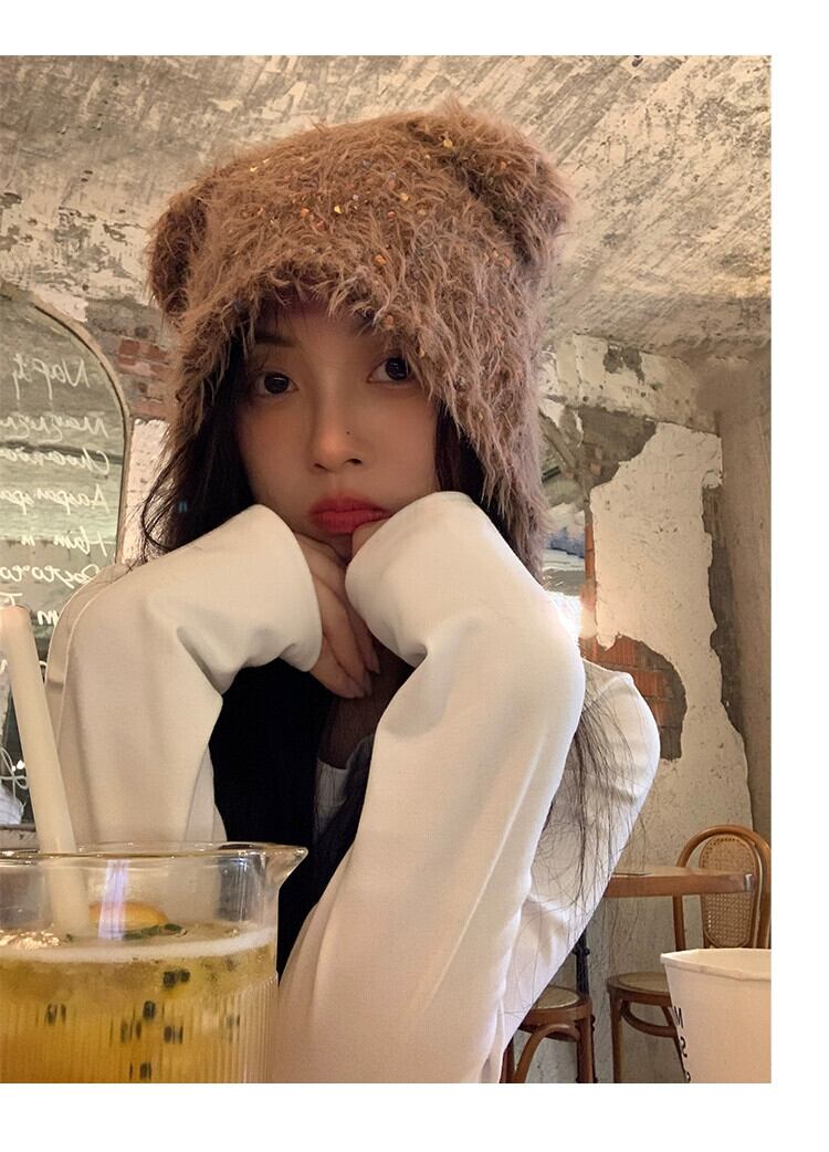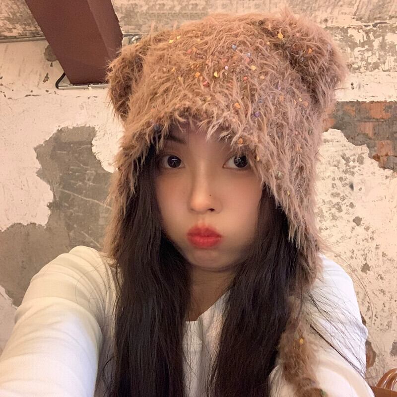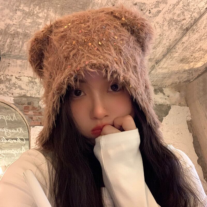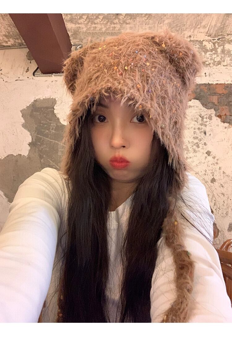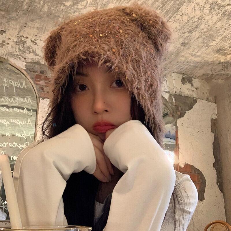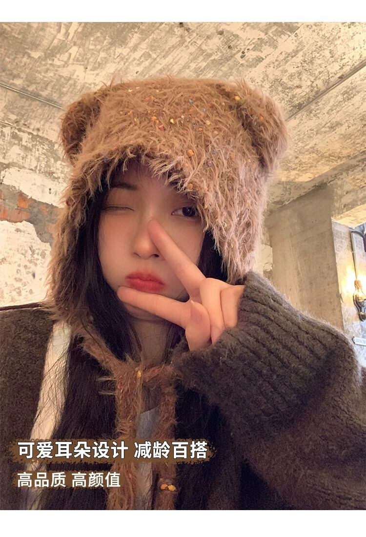 メイラード着用ぬいぐるみ帽子女性の冬のスタイル甘くてかわいいニット耳保護帽子肥厚顔小さなウールの帽子 大人ガーリー スウィート キュート カジュアル ウィンター 冬物 15dd34079777616