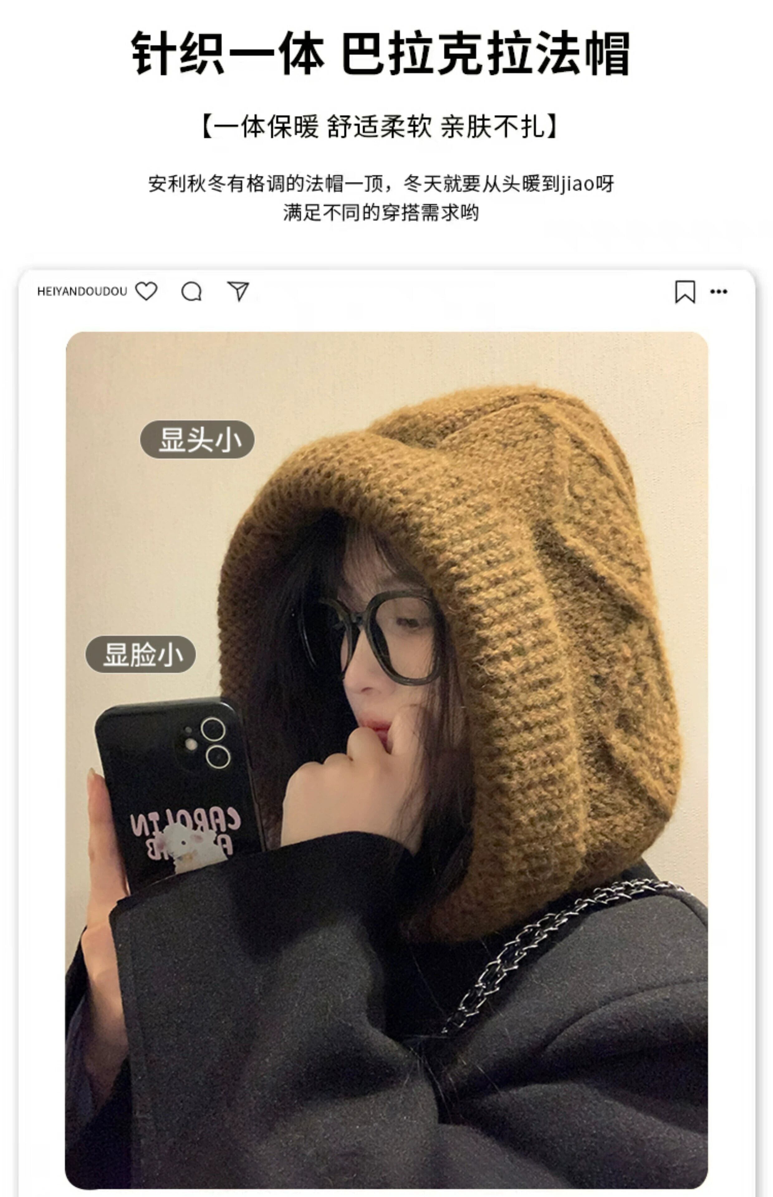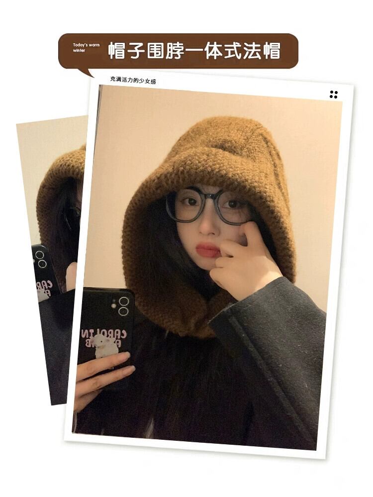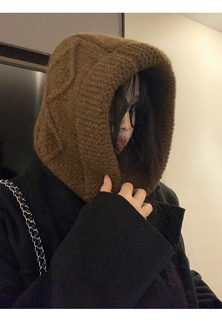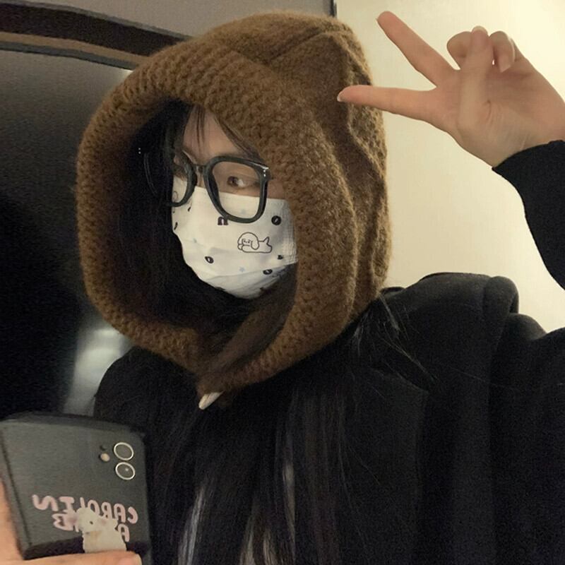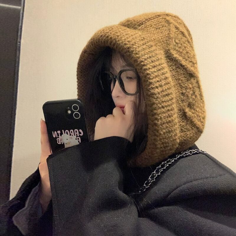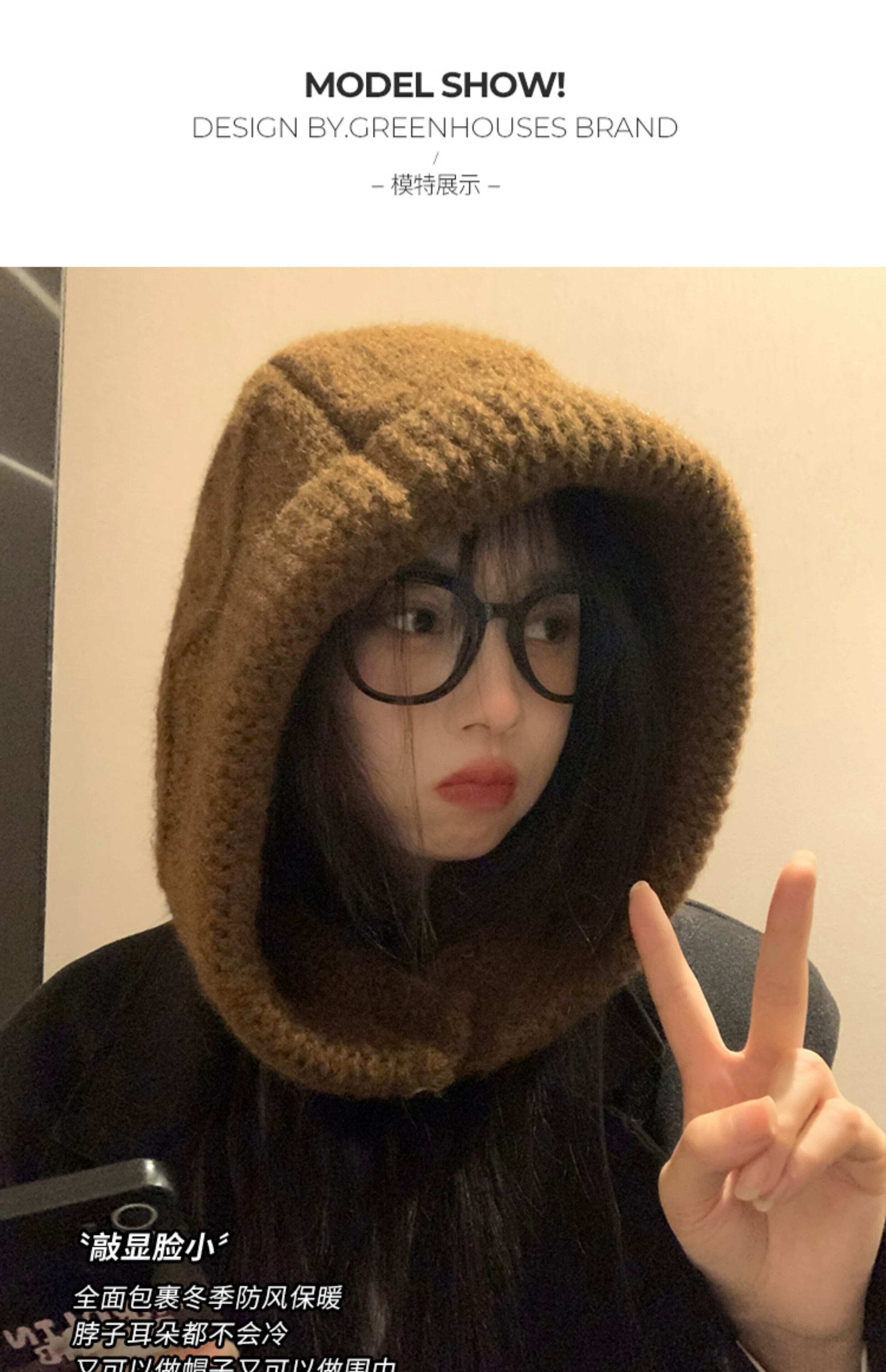 頭囲が大きく顔が小さい女性用バラクラバハット、冬用ウールプルオーバーハット、厚くて暖かい、耳を保護する雷峰帽子 ウィンター 冬物 15dd96058866026