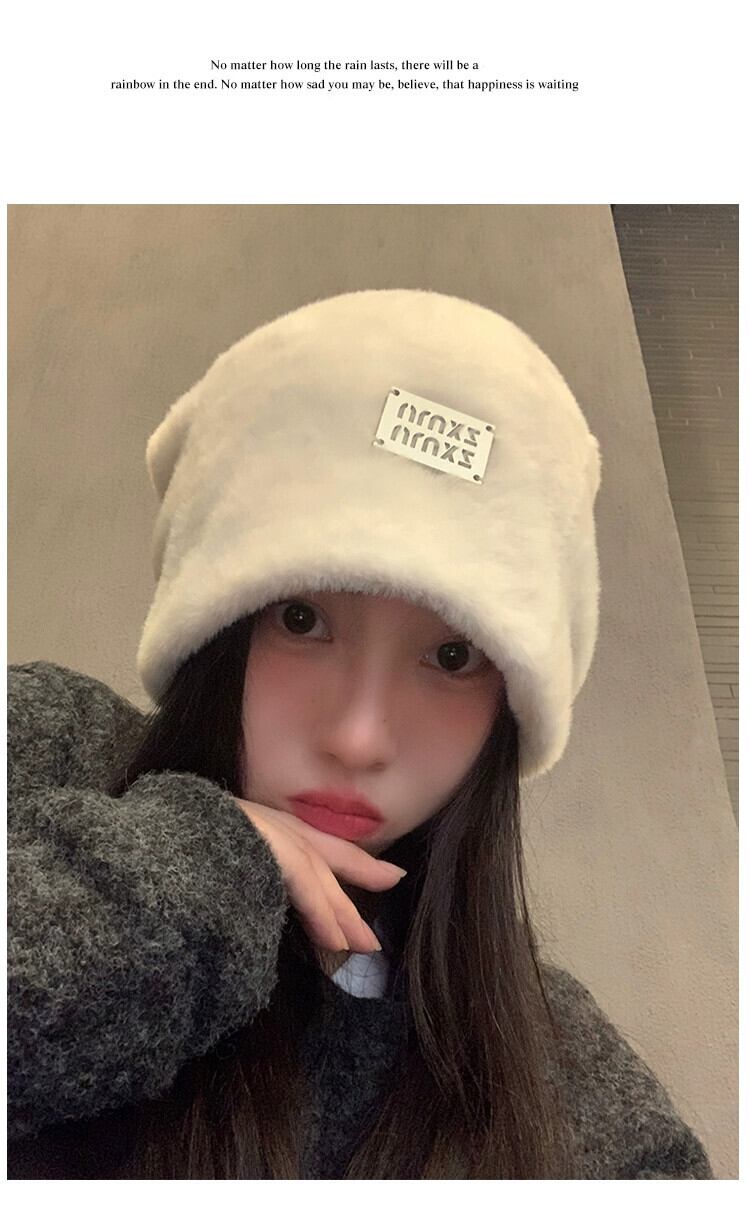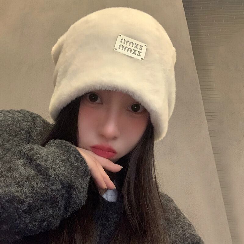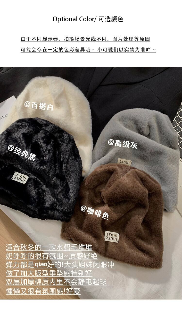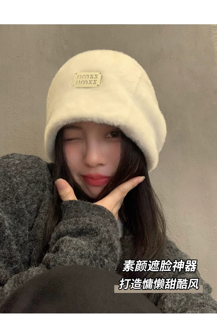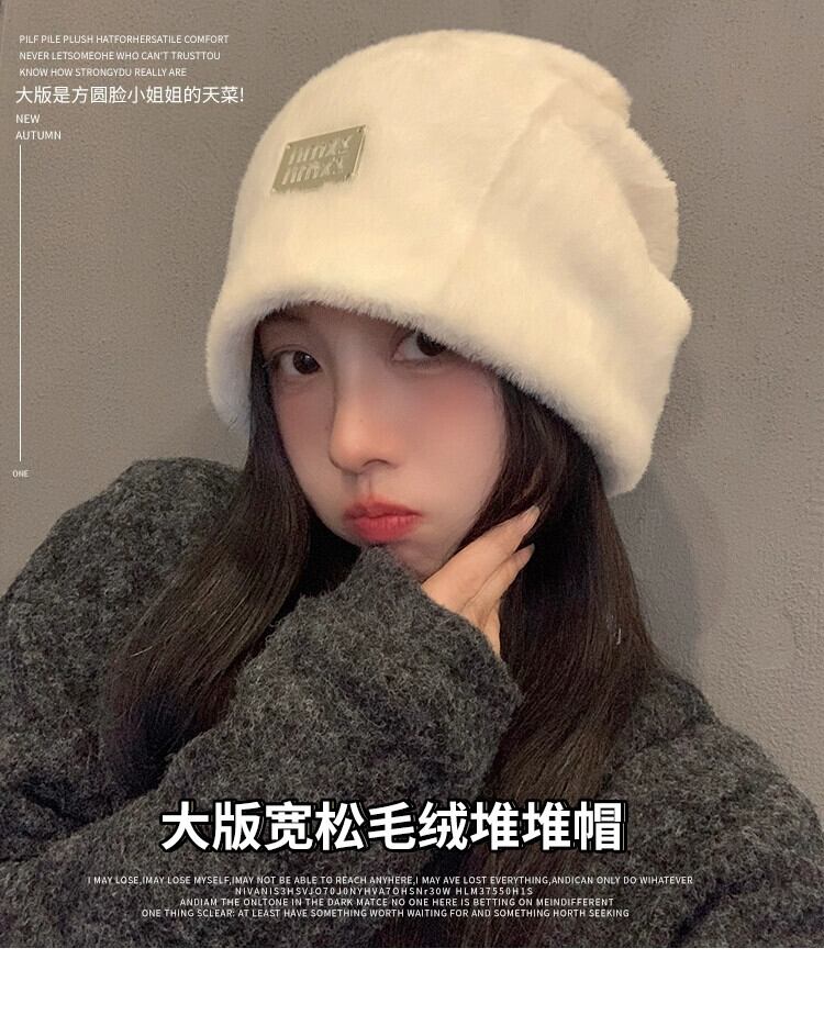 大きな頭囲ぬいぐるみ帽子女性の新しい秋と冬のオールマッチスタイル顔見せ小さな暖かい耳保護ヘッドバンドパイルコールドハット オータム 秋物 ウィンター 冬物 ヘアバンド ヘアアクセサリー 15dd70988211404